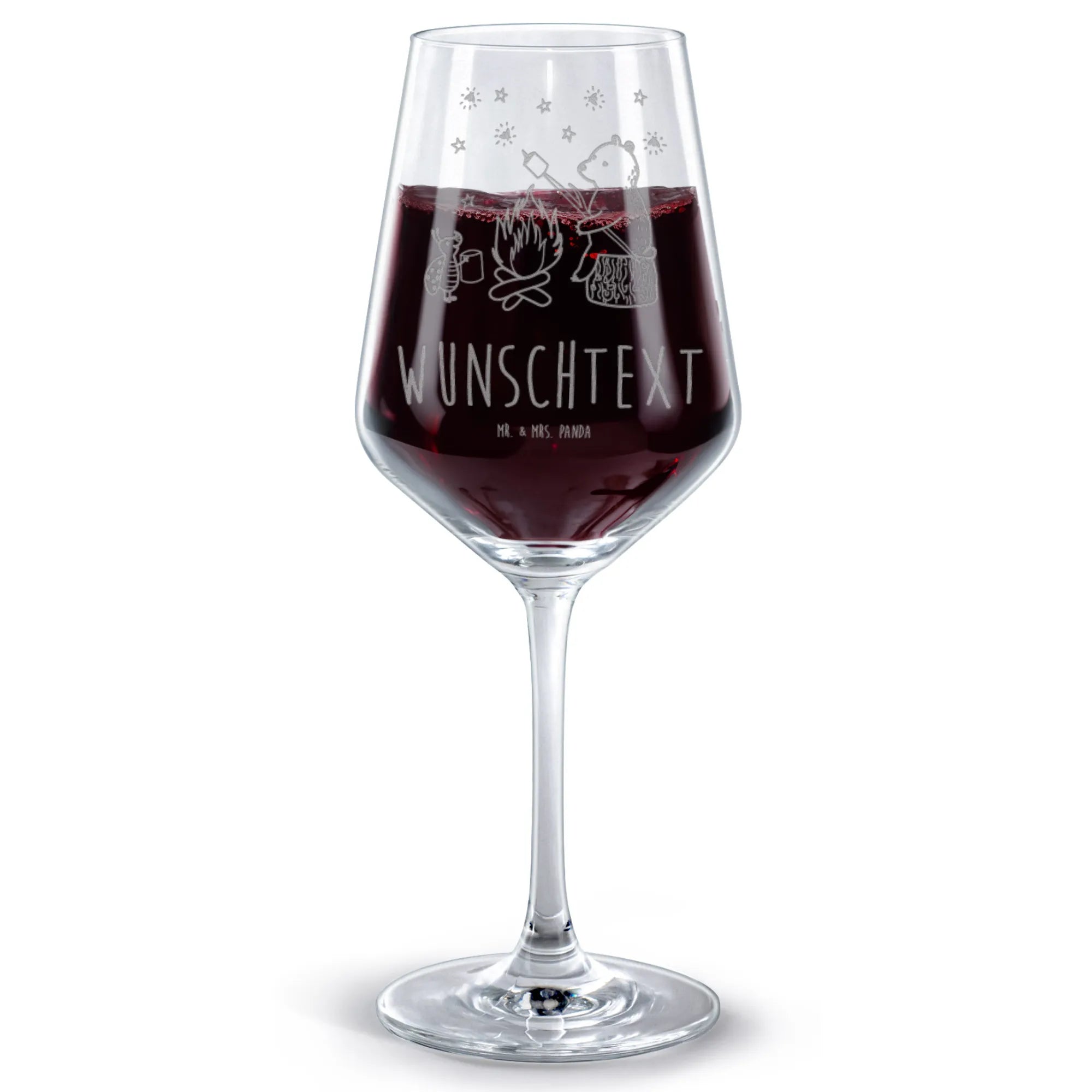 Personalizowany kieliszek do czerwonego wina Niedźwiedź i biedronka przy ognisku