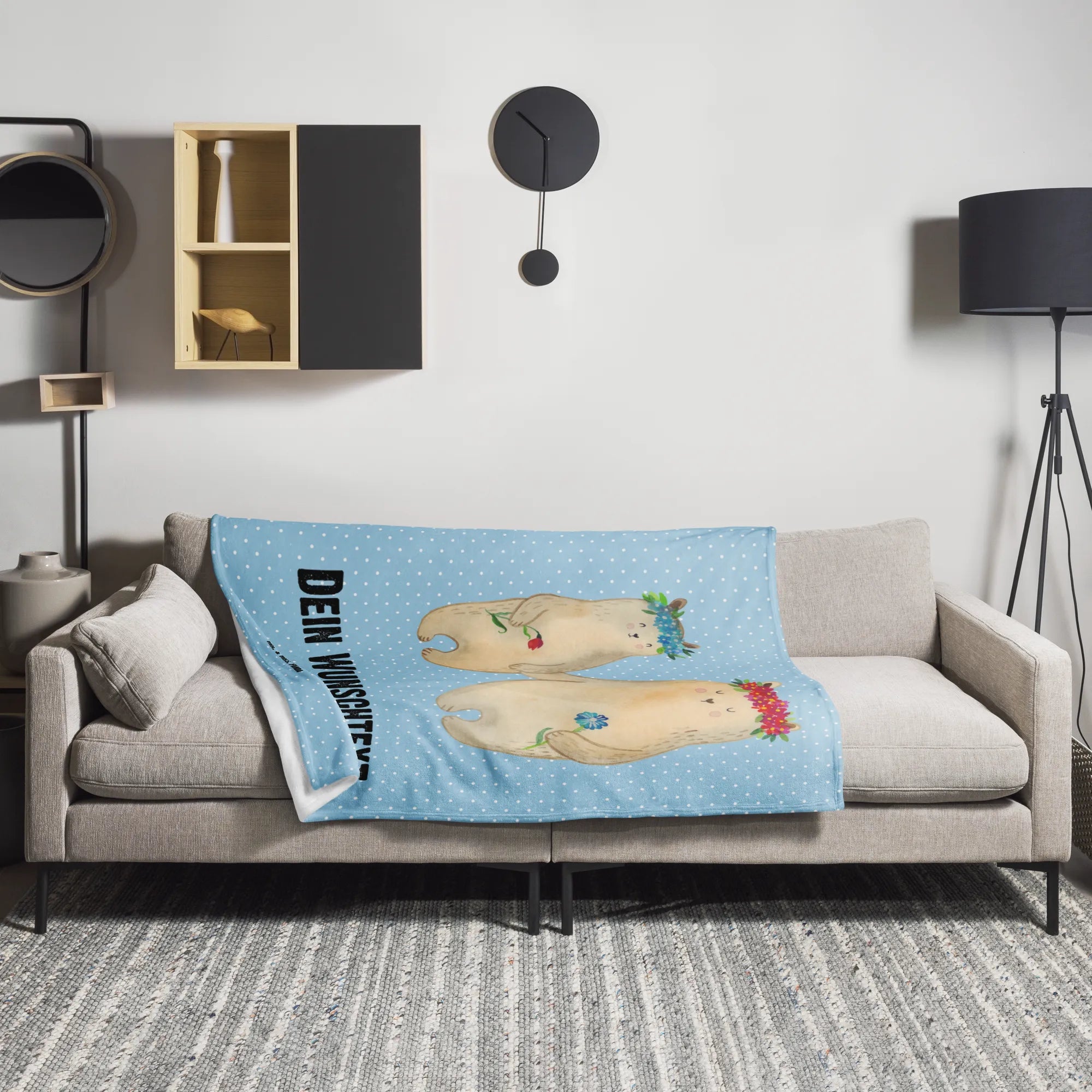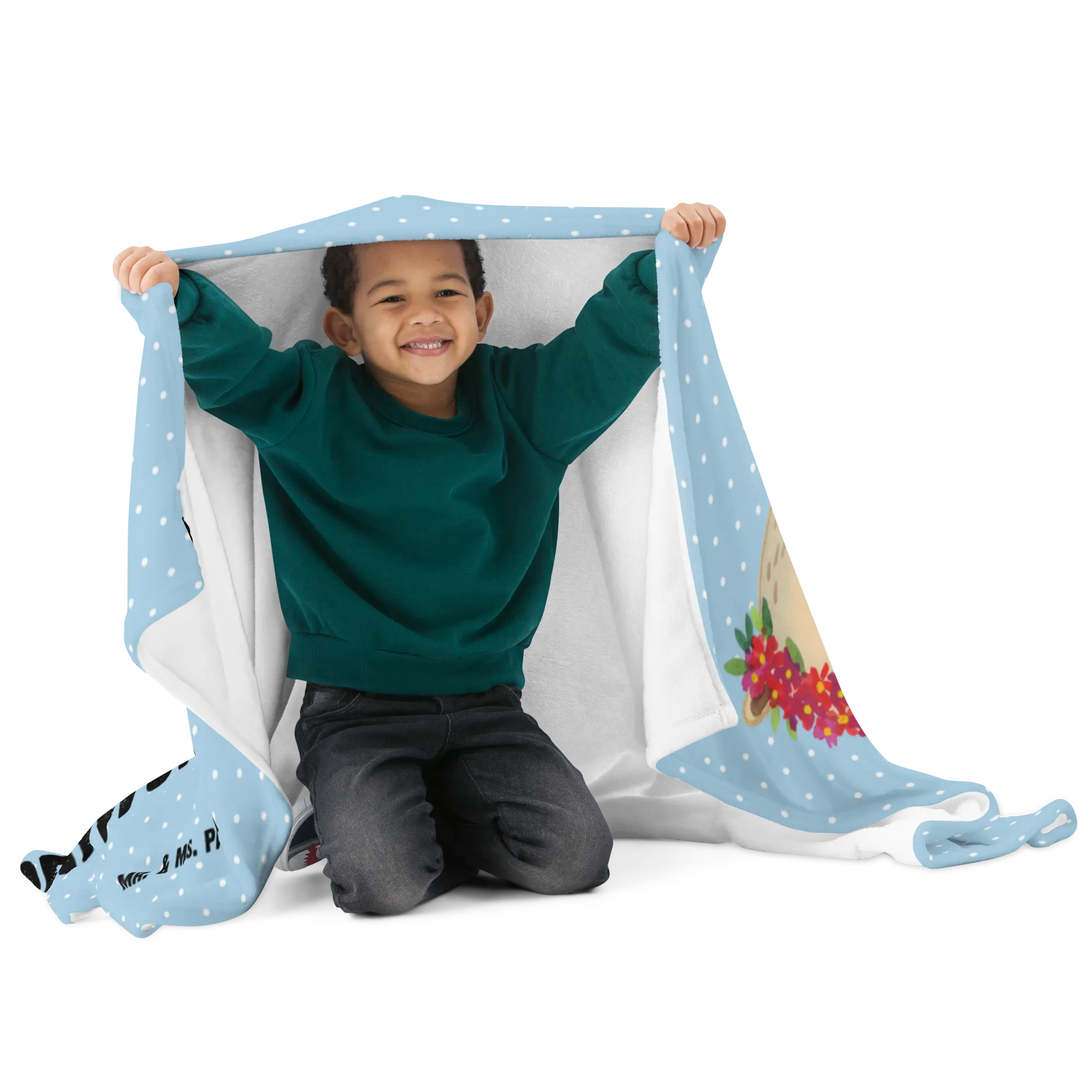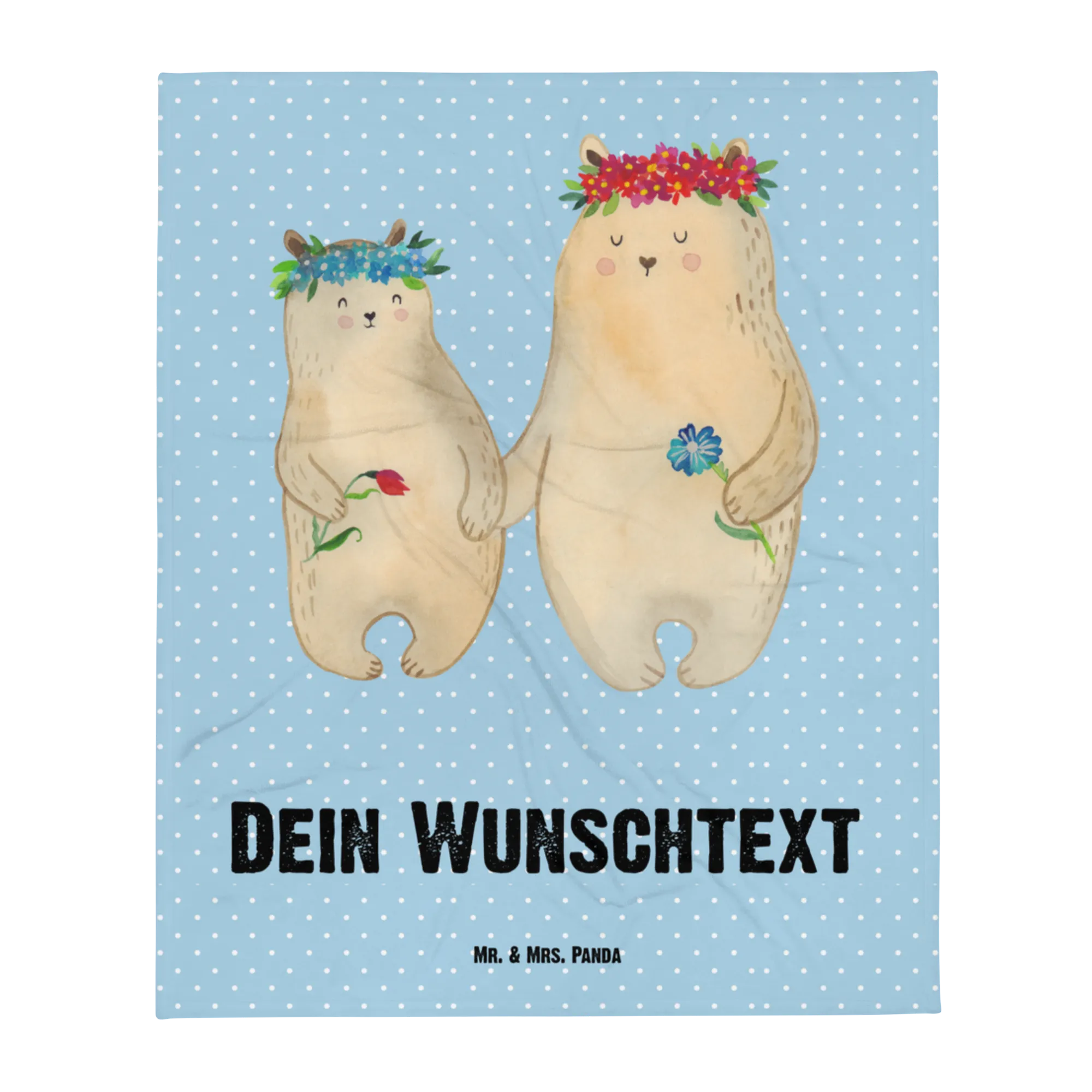 Personalizowany koc Niedźwiedzie z wianuszkiem - Pastelowy niebieski