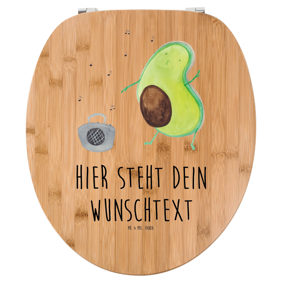Der personalisierte WC Sitz Motiv Avocado tanzt von Mr. & Mrs. Panda ist nicht nur ein praktisches Badezimmeraccessoire, sondern auch ein echter Hingucker! Mit einem fröhlichen Design, das eine tanzende Avocado vor einem Ghettoblaster zeigt, bringt dieser Toilettendeckel Lebensfreude und gute Laune in dein Zuhause.