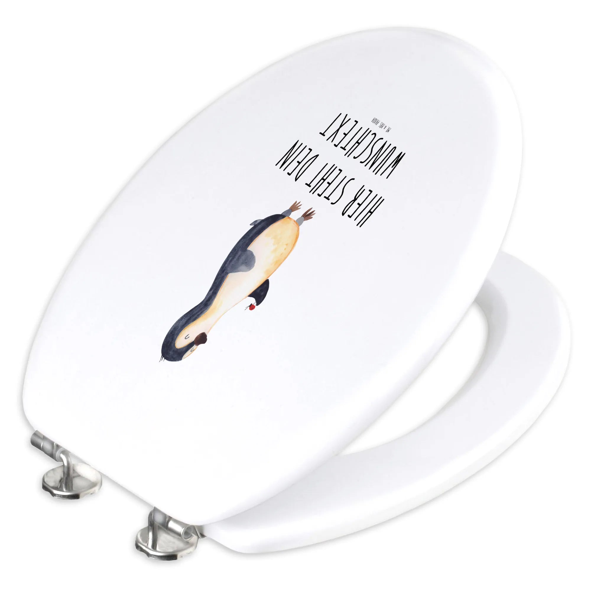 Die Pinguin-Kollektion von Mr. & Mrs. Panda bietet dir die Möglichkeit, diesen einzigartigen WC Sitz individuell mit deinem Namen zu gestalten. Eine personalisierte Klobrille ist das perfekte Geschenk für Freunde und Familie! Ob für den Umzug, eine Hochzeit oder einfach nur so - dieser personalisierte Toilettendeckel sorgt für Freude und gute Laune im Bad. Der hohe Sitzkomfort und die angenehme Temperatur beim Sitzen machen dieses Produkt besonders attraktiv, selbst bei kühleren Temperaturen.