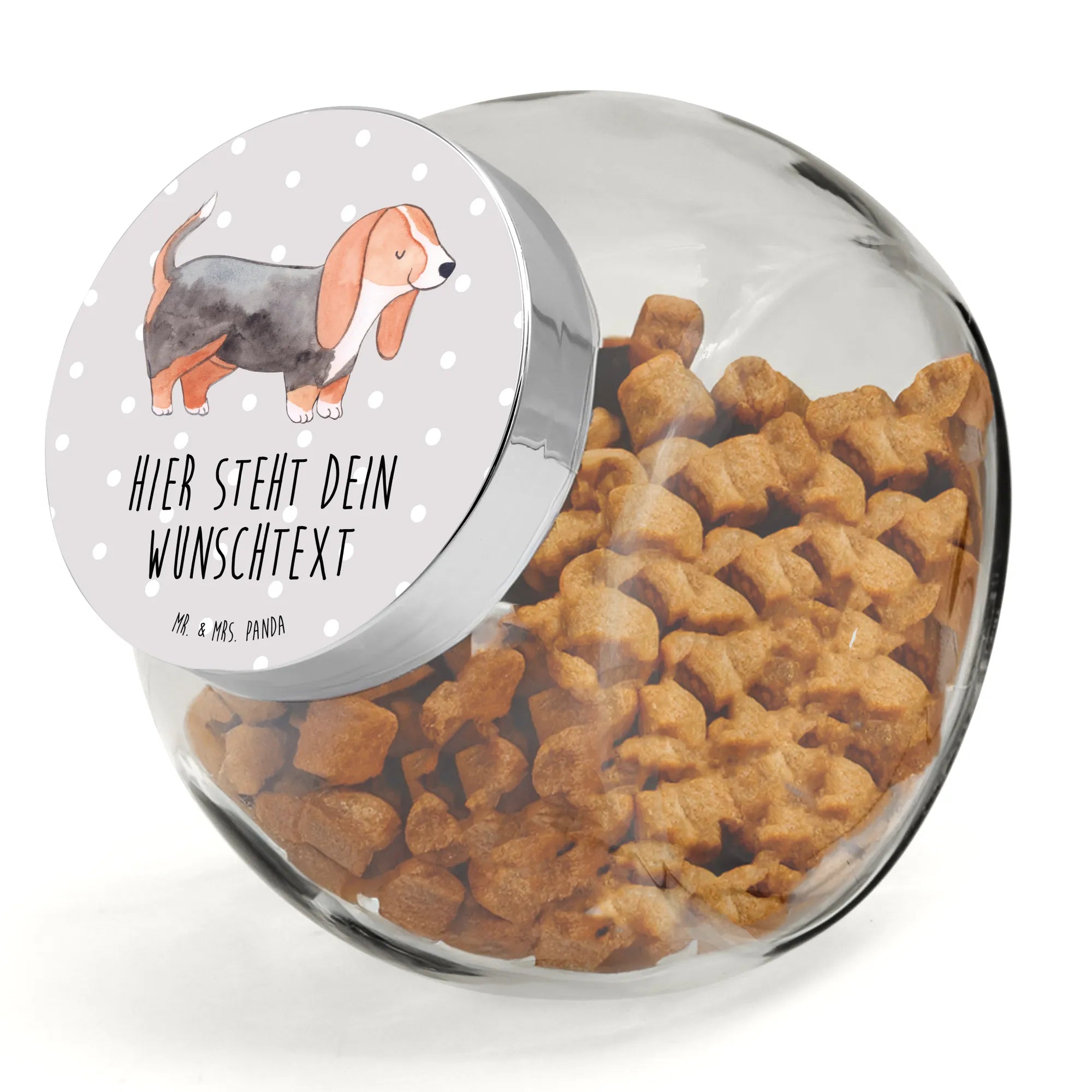 Personalizowany Słoik na Smakołyki Basset Hound ratownik - XL 2000ml - Pastelowy szary