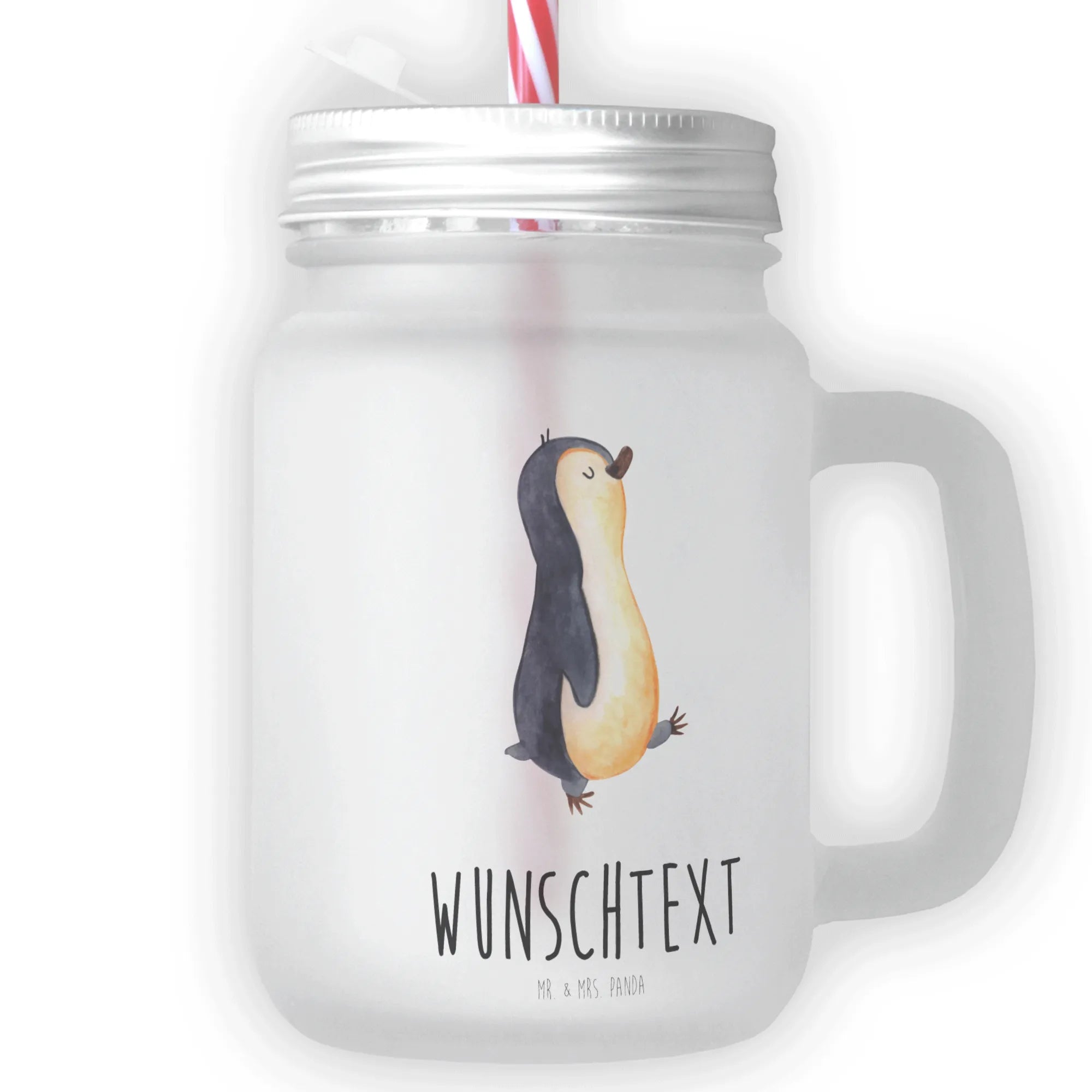 Personalizowany szklany słoik Mason Jar Pingwin maszerować