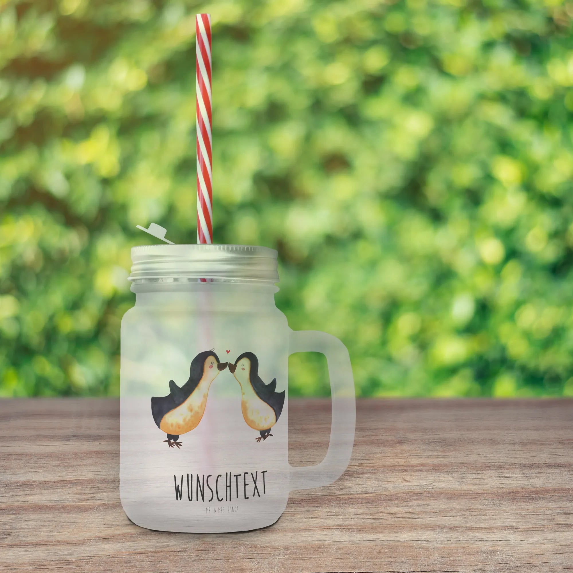 Personalizowany szklany słoik Mason Jar Pingwiny Pocałunek
