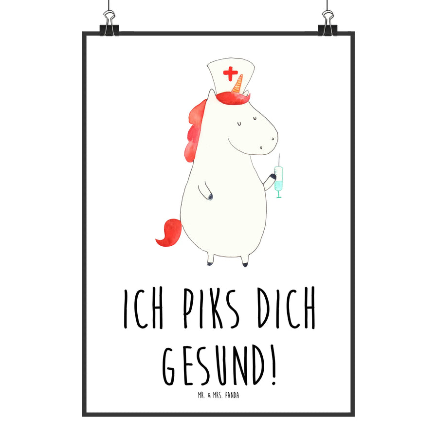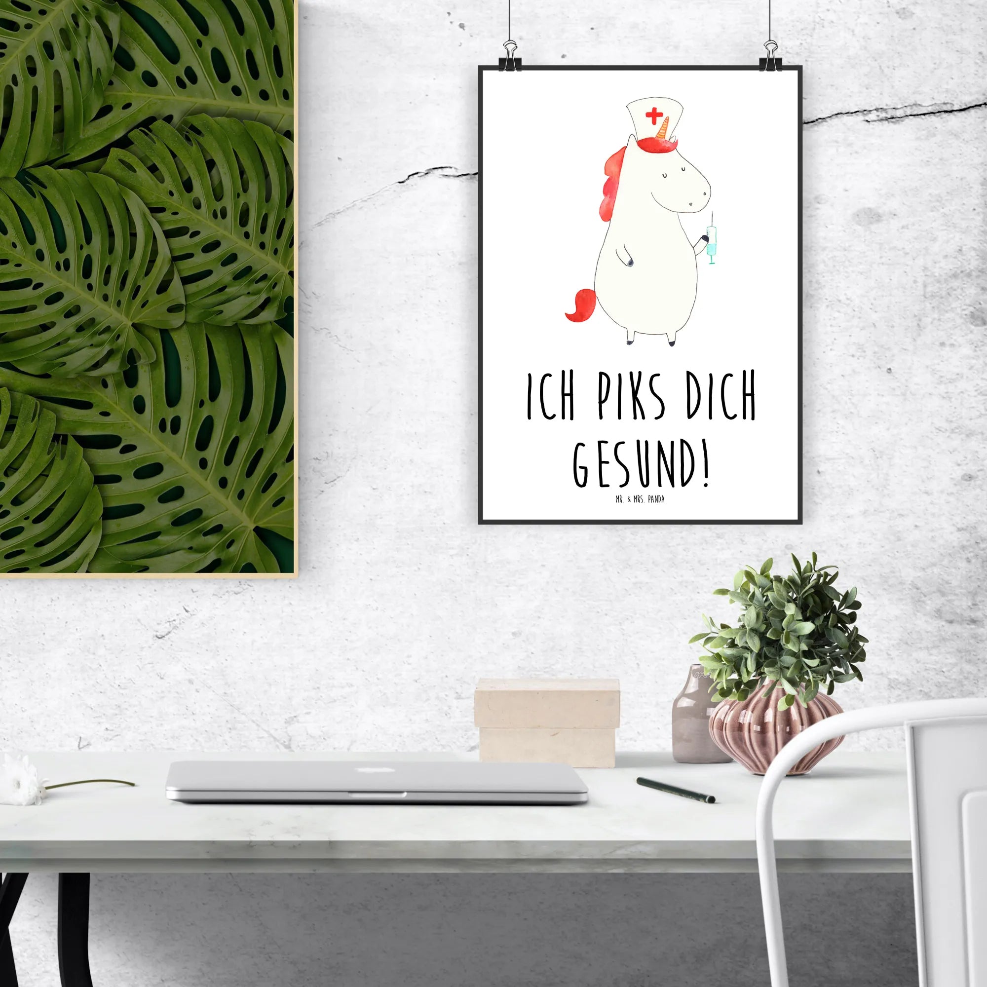 Plakat Jednorożec Pielęgniarka - DIN A0 - z napisem - biały