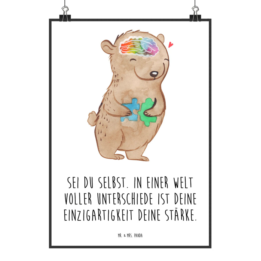 Plakat niedźwiedź Autyzm - DIN A5 - biały