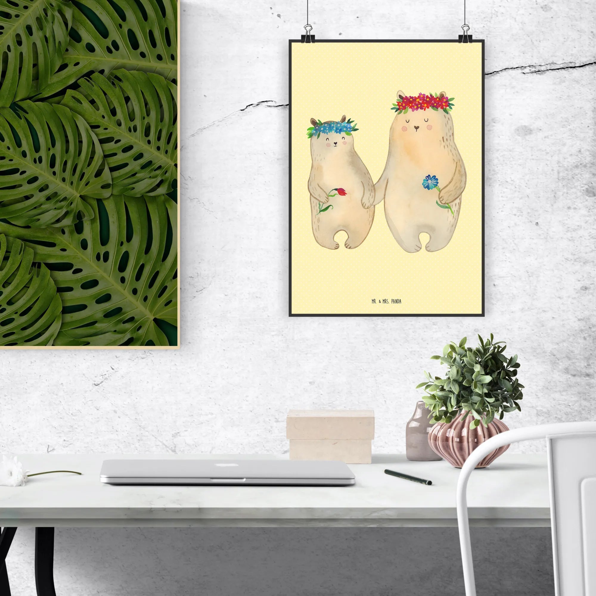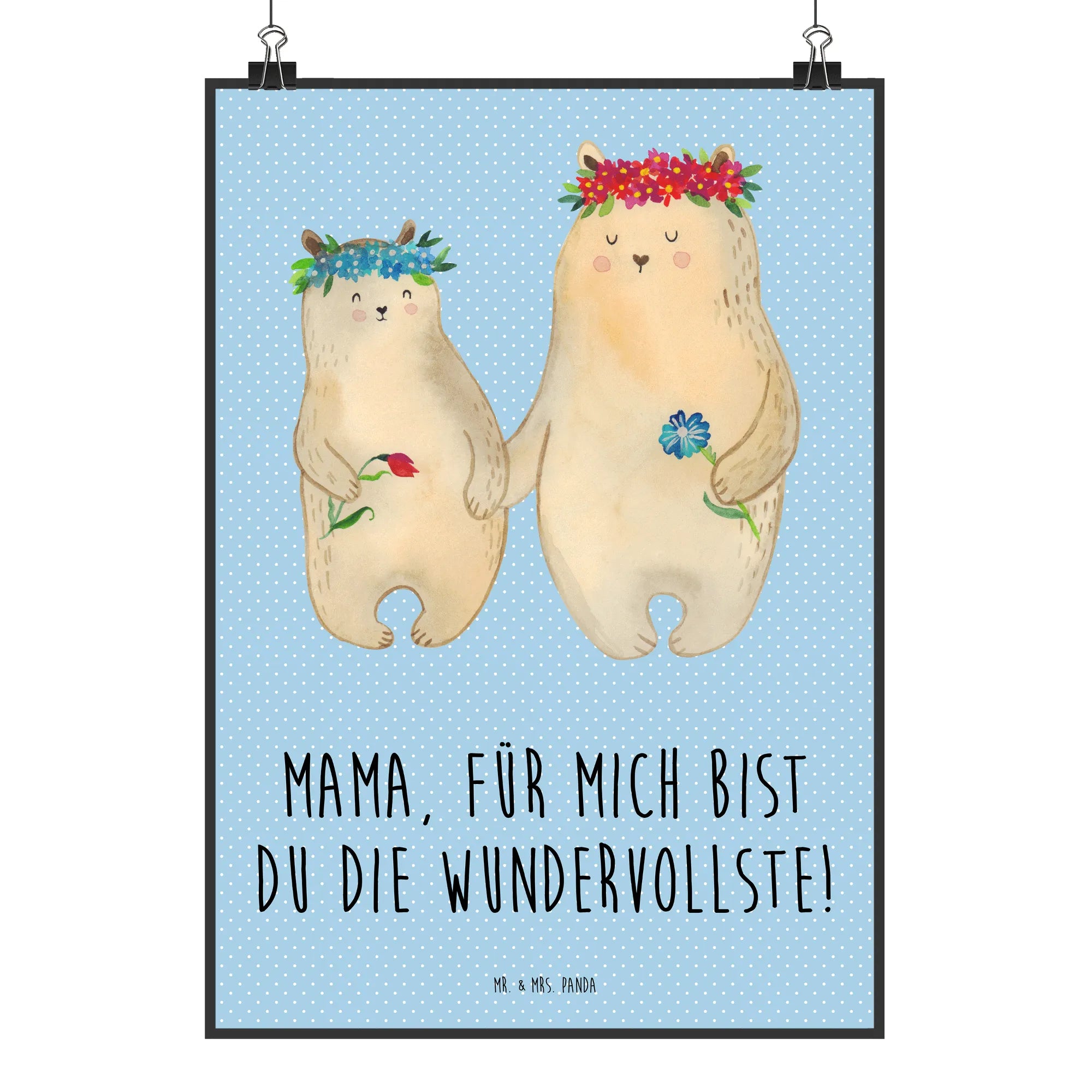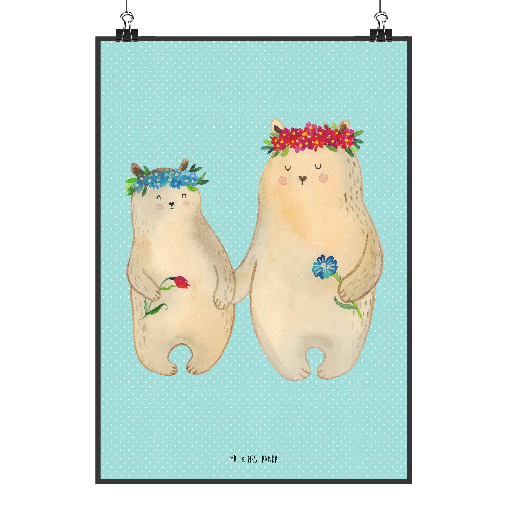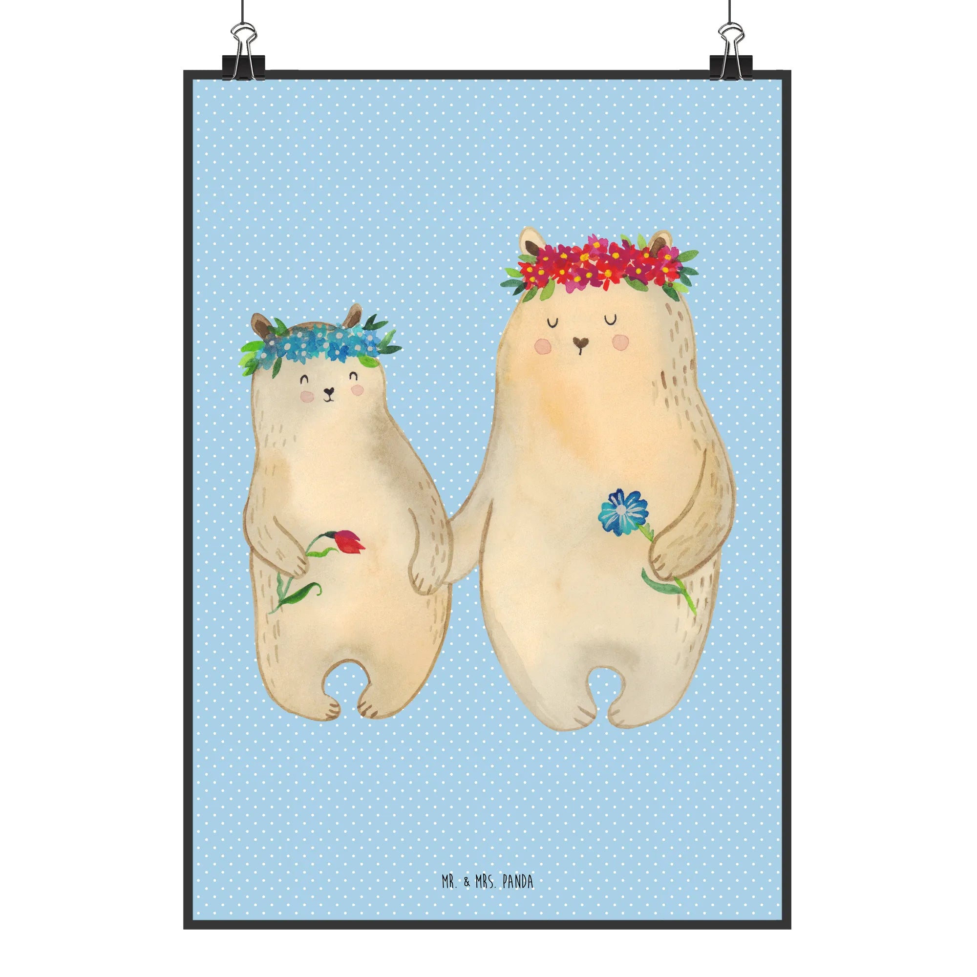 Plakat Niedźwiedzie z wianuszkiem - DIN A0 - z napisem - Niebieski Pastel