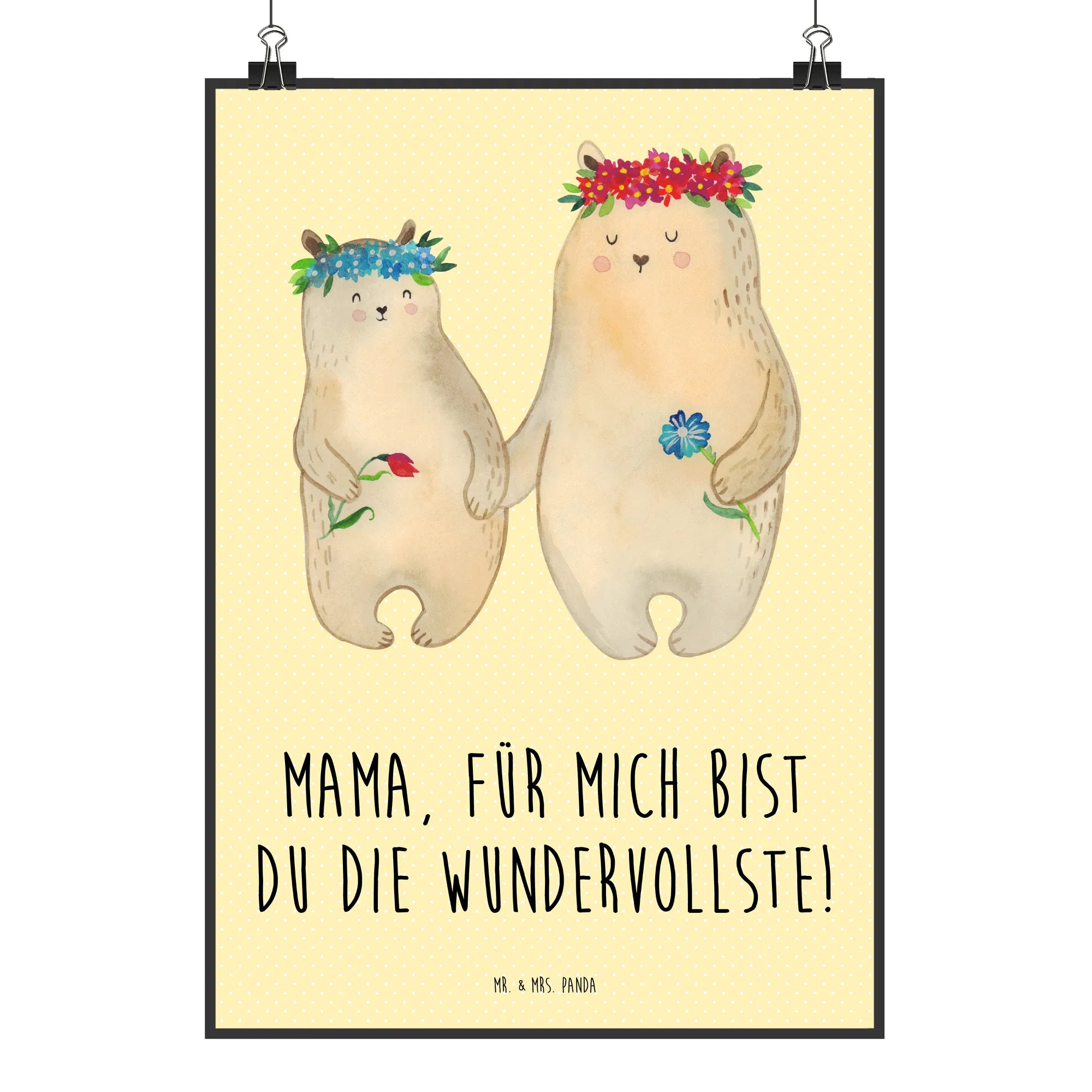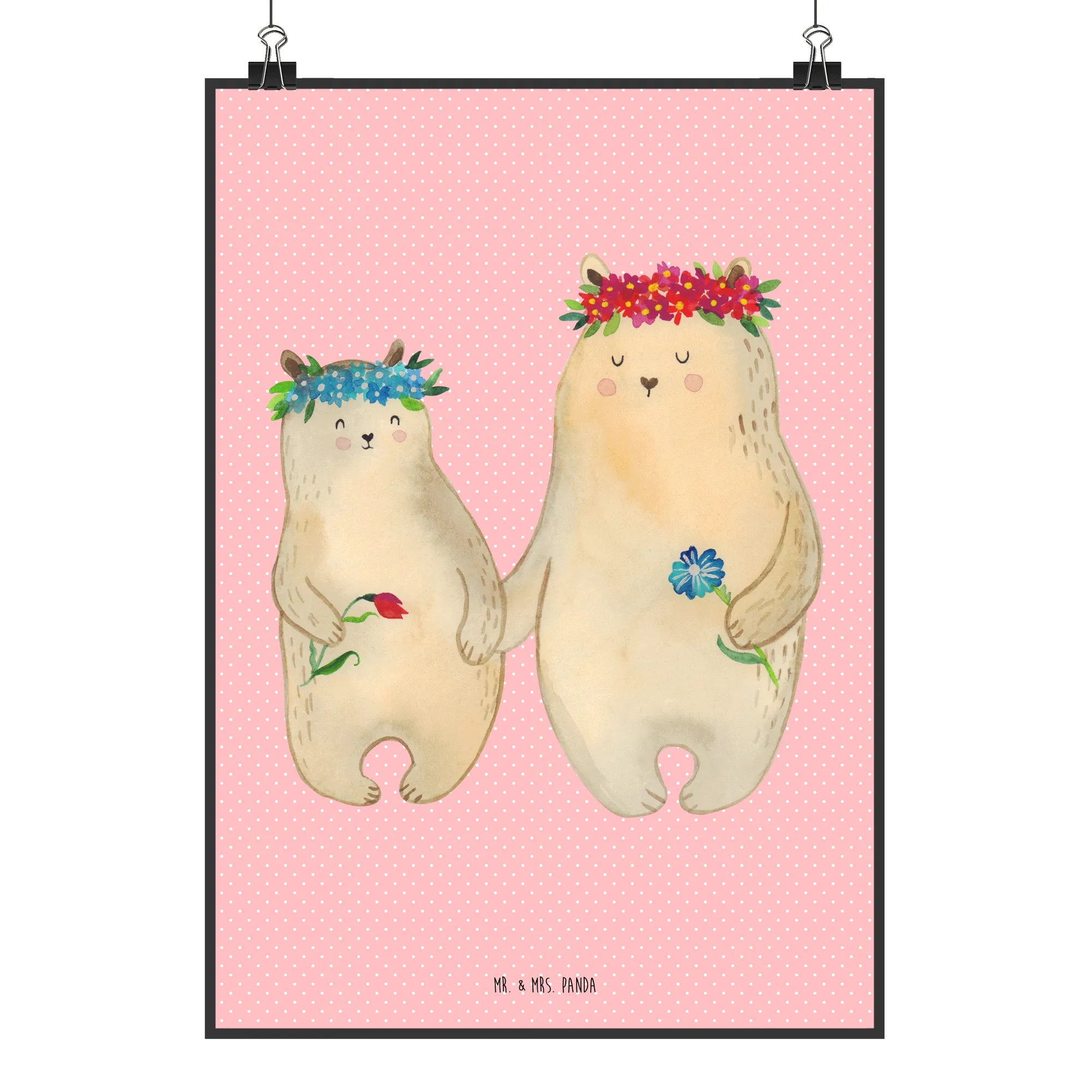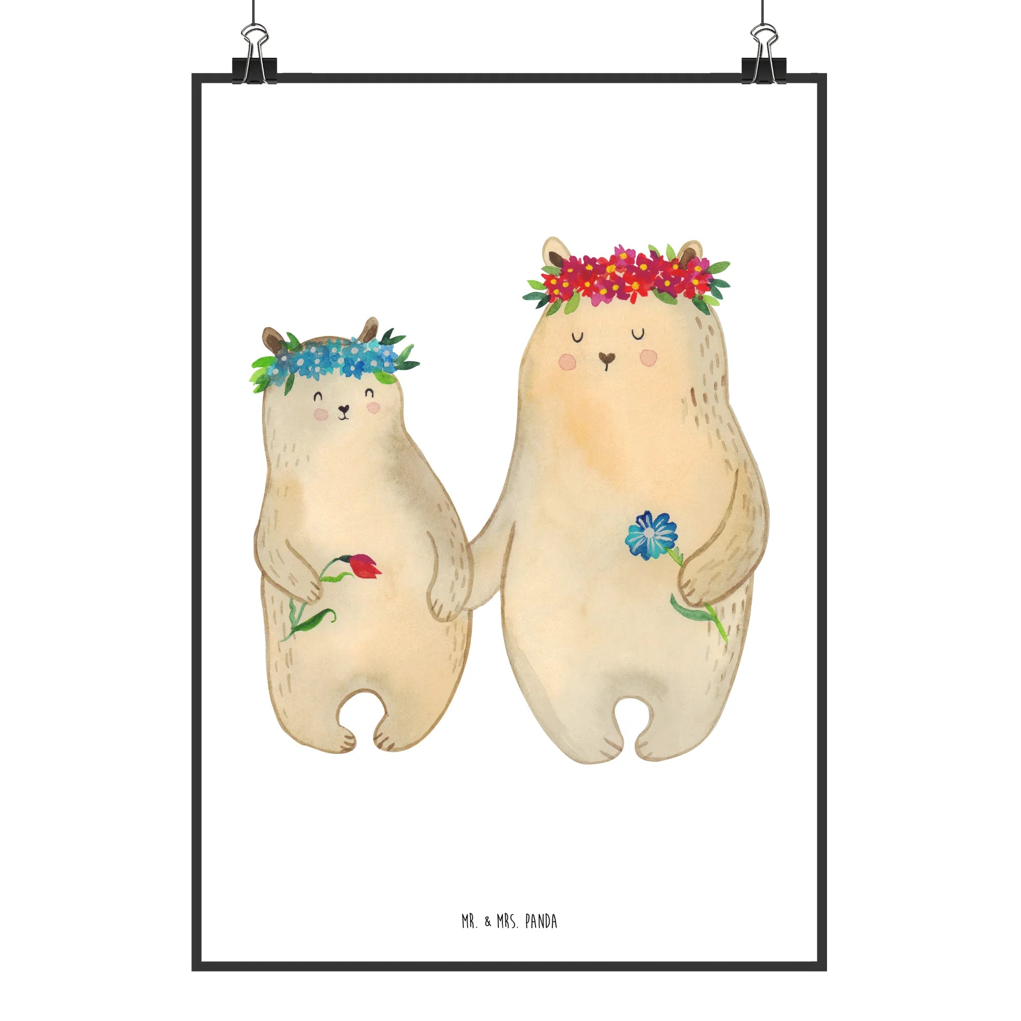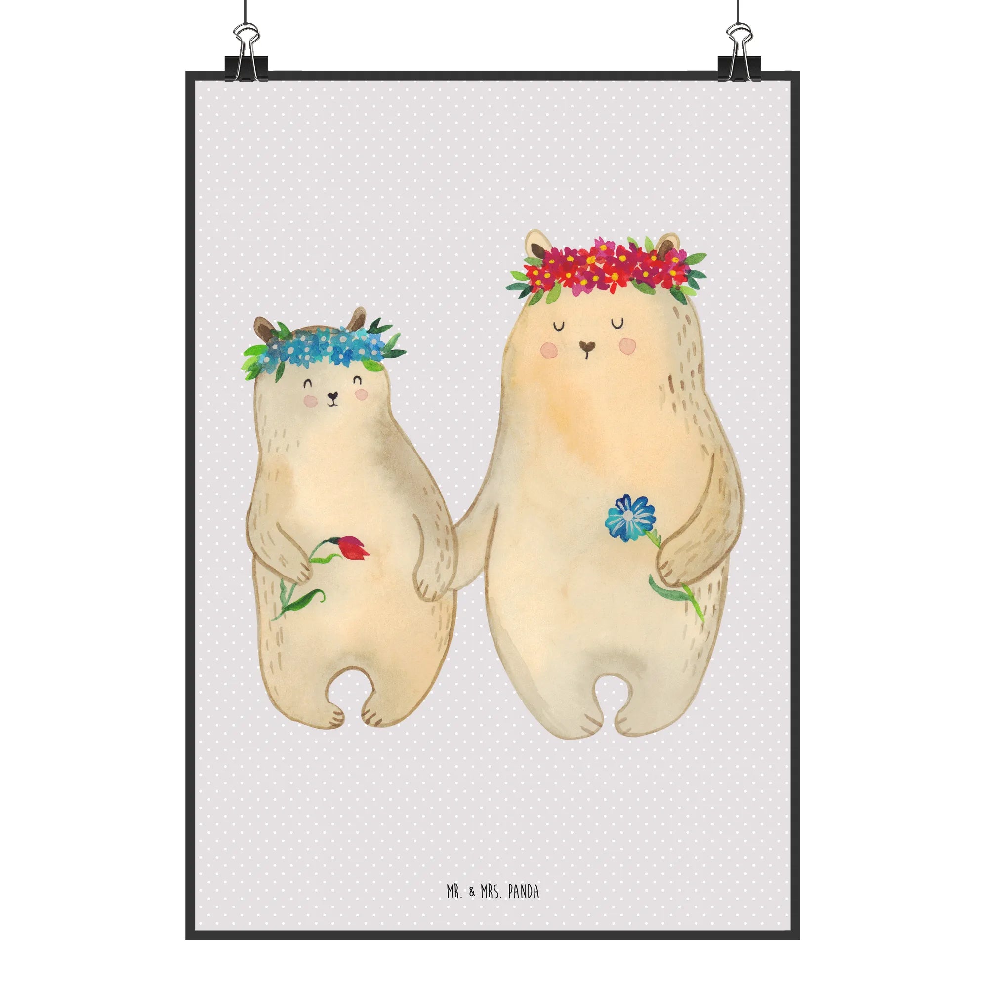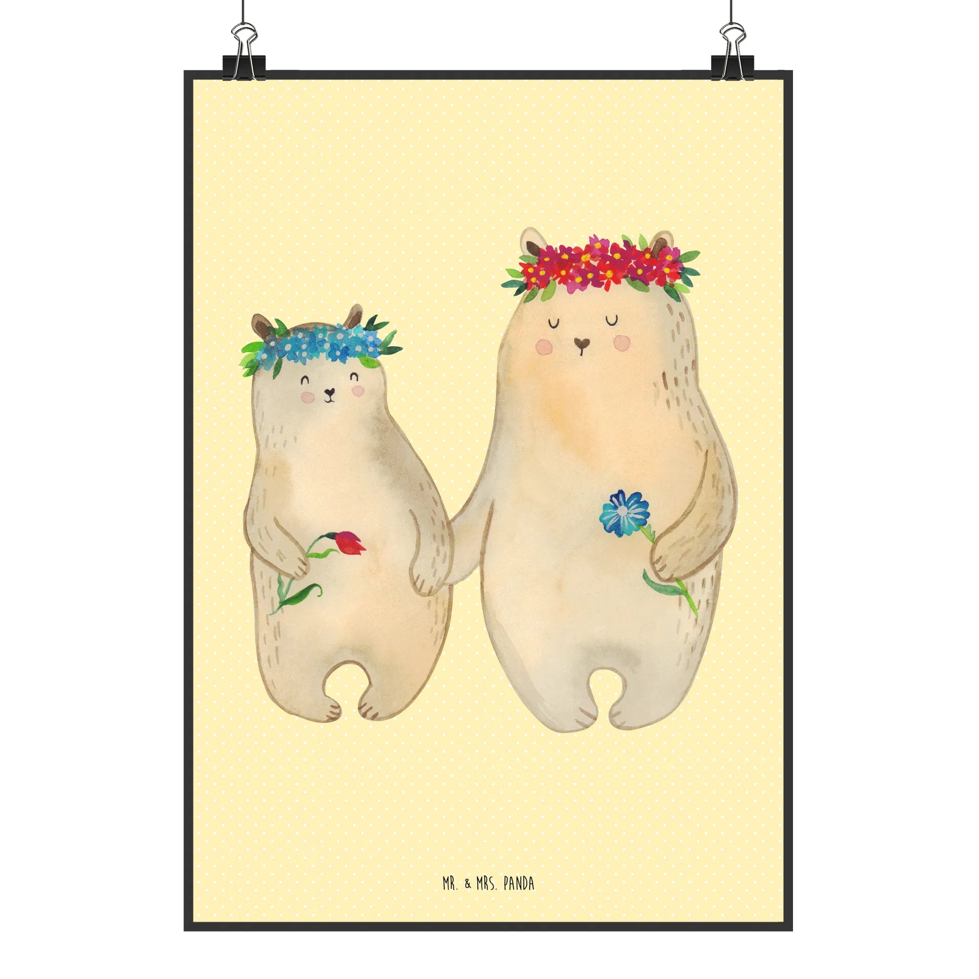 Plakat Niedźwiedzie z wianuszkiem - DIN A0 - z napisem - Niebieski Pastel