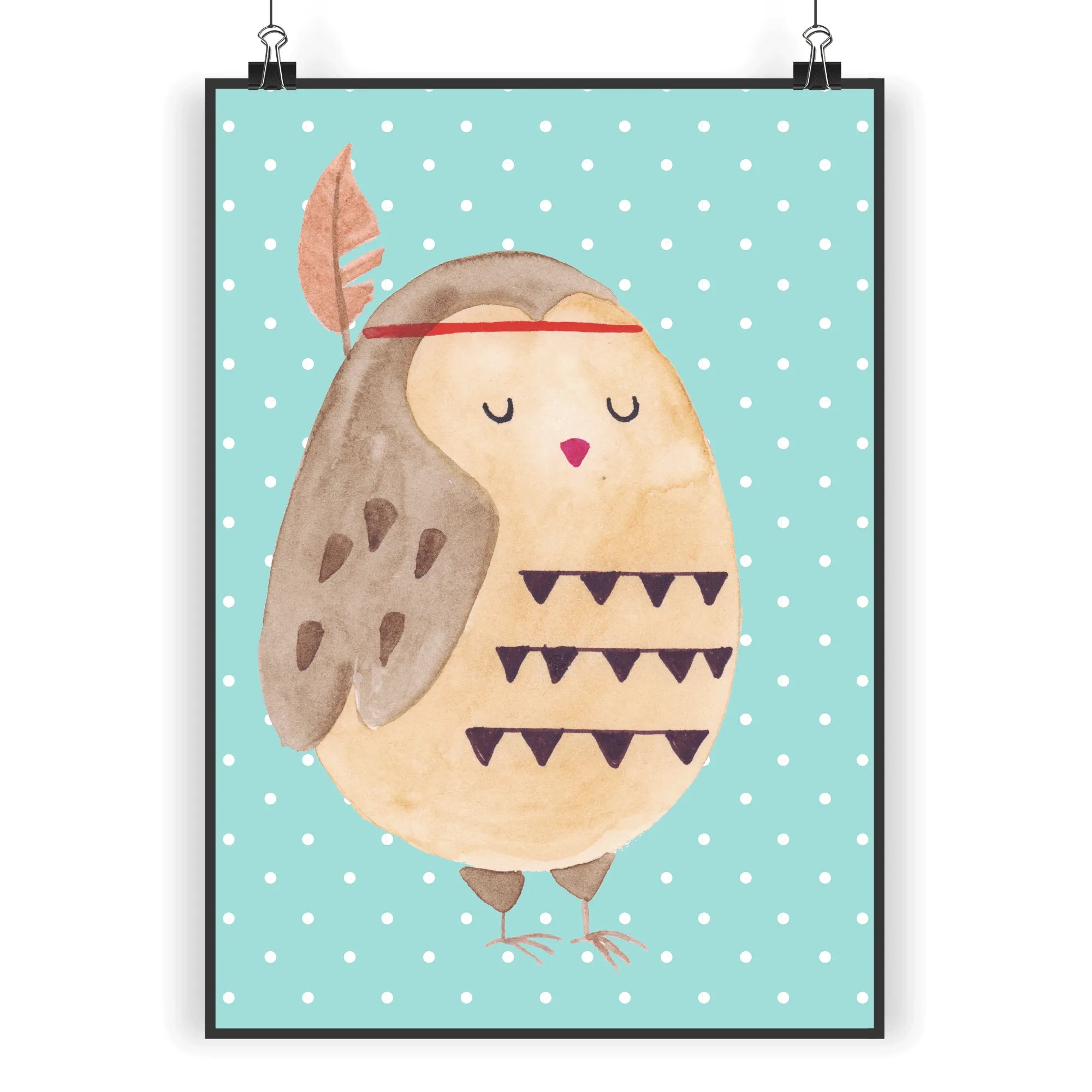 Plakat sowa Ozdoba z piór - DIN A5 - z napisem - biały