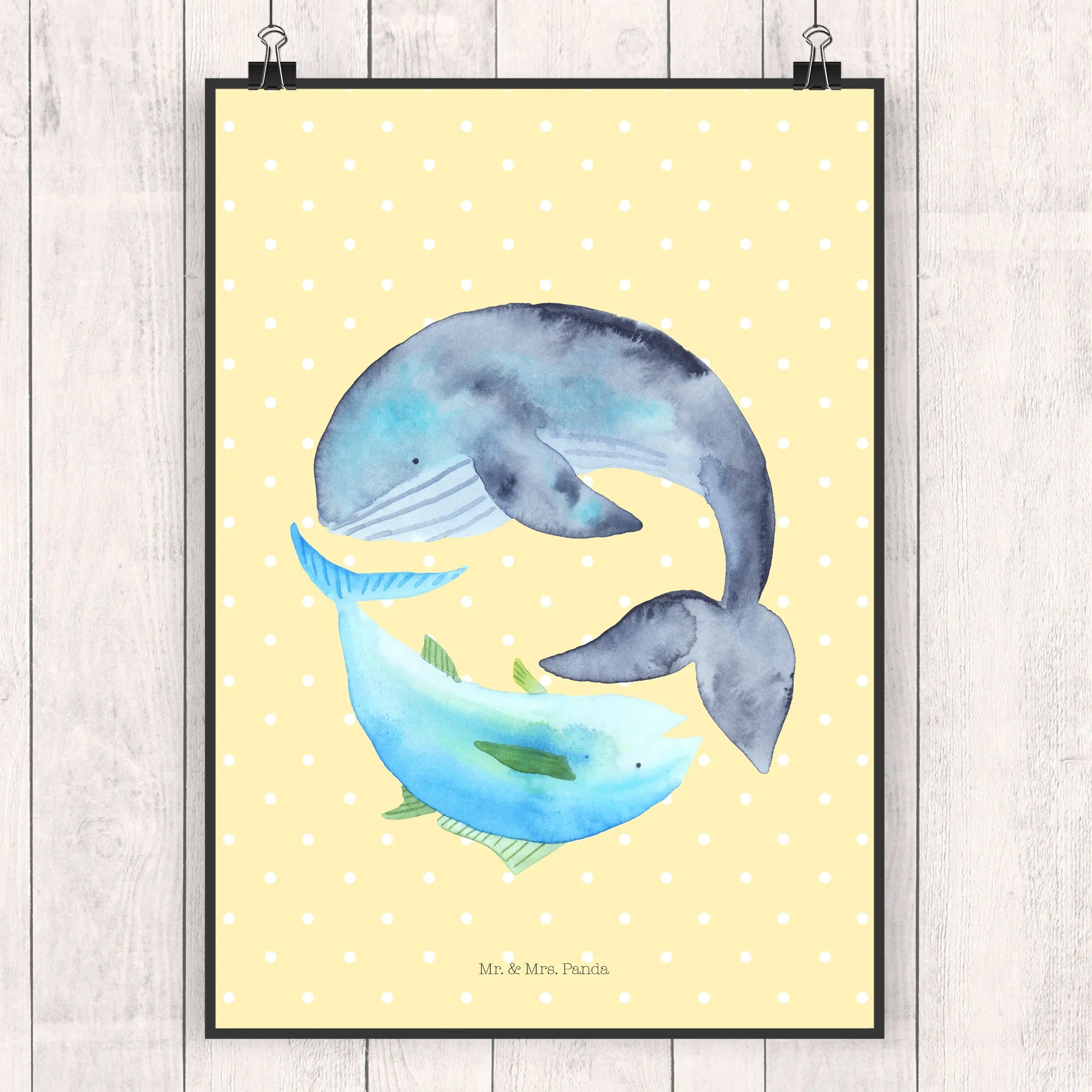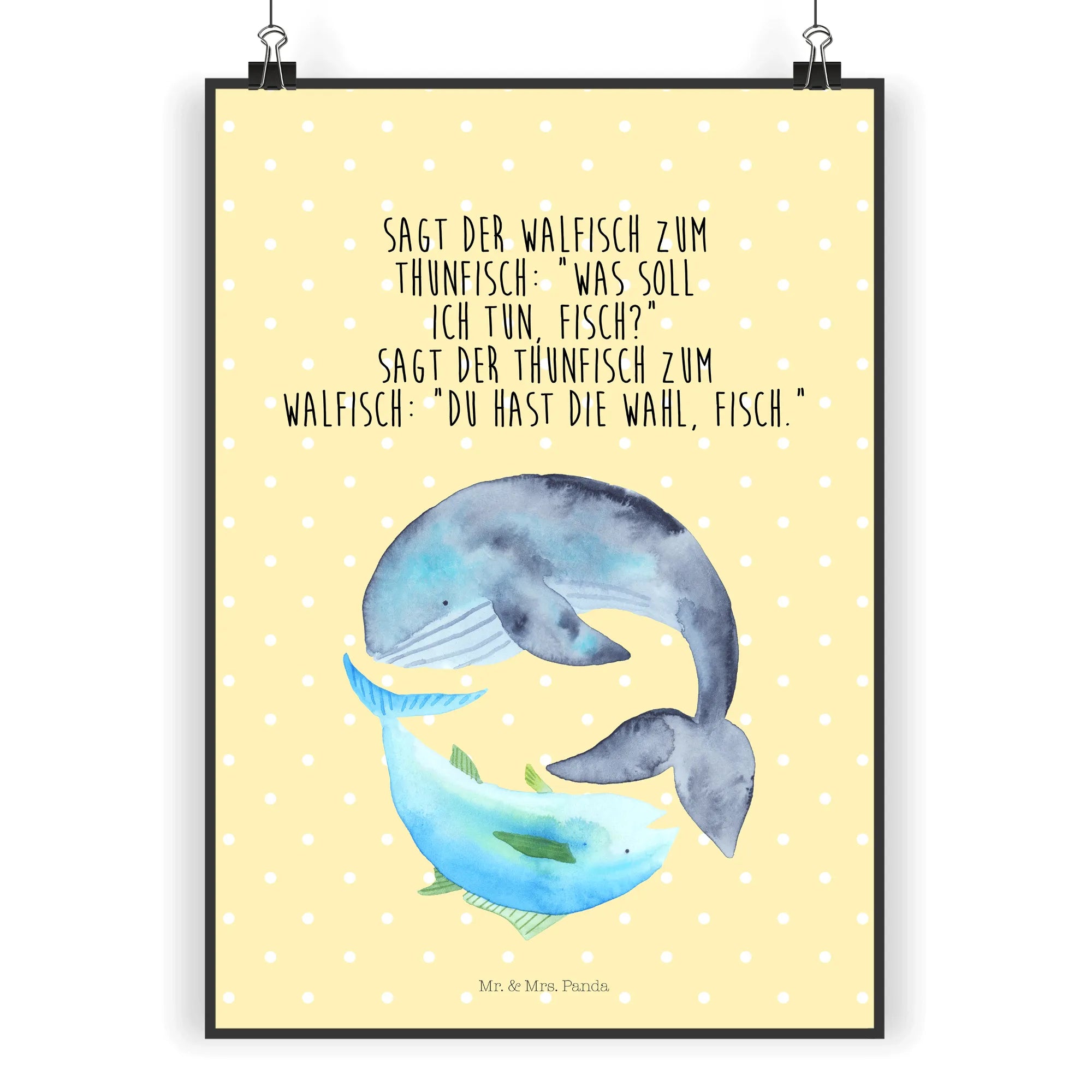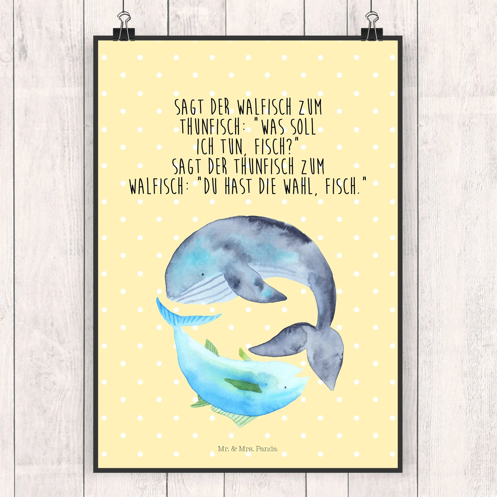 Plakat wieloryb tuńczyk - DIN A0 - z napisem - Pastelowy żółty