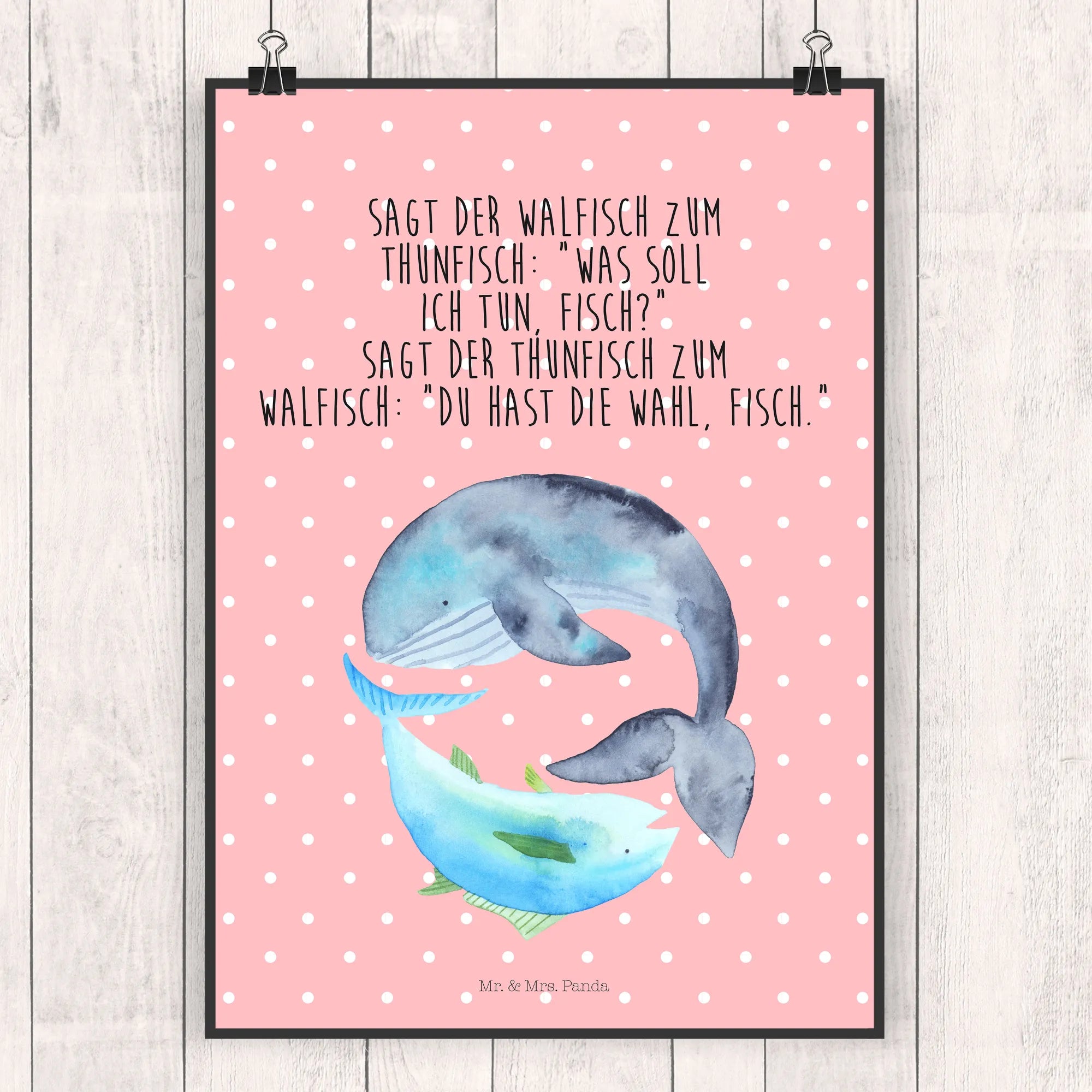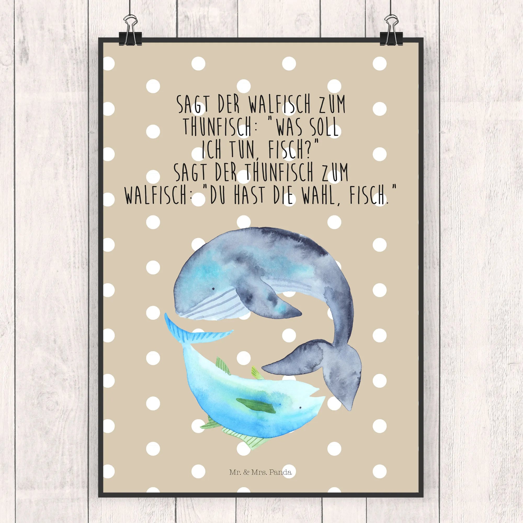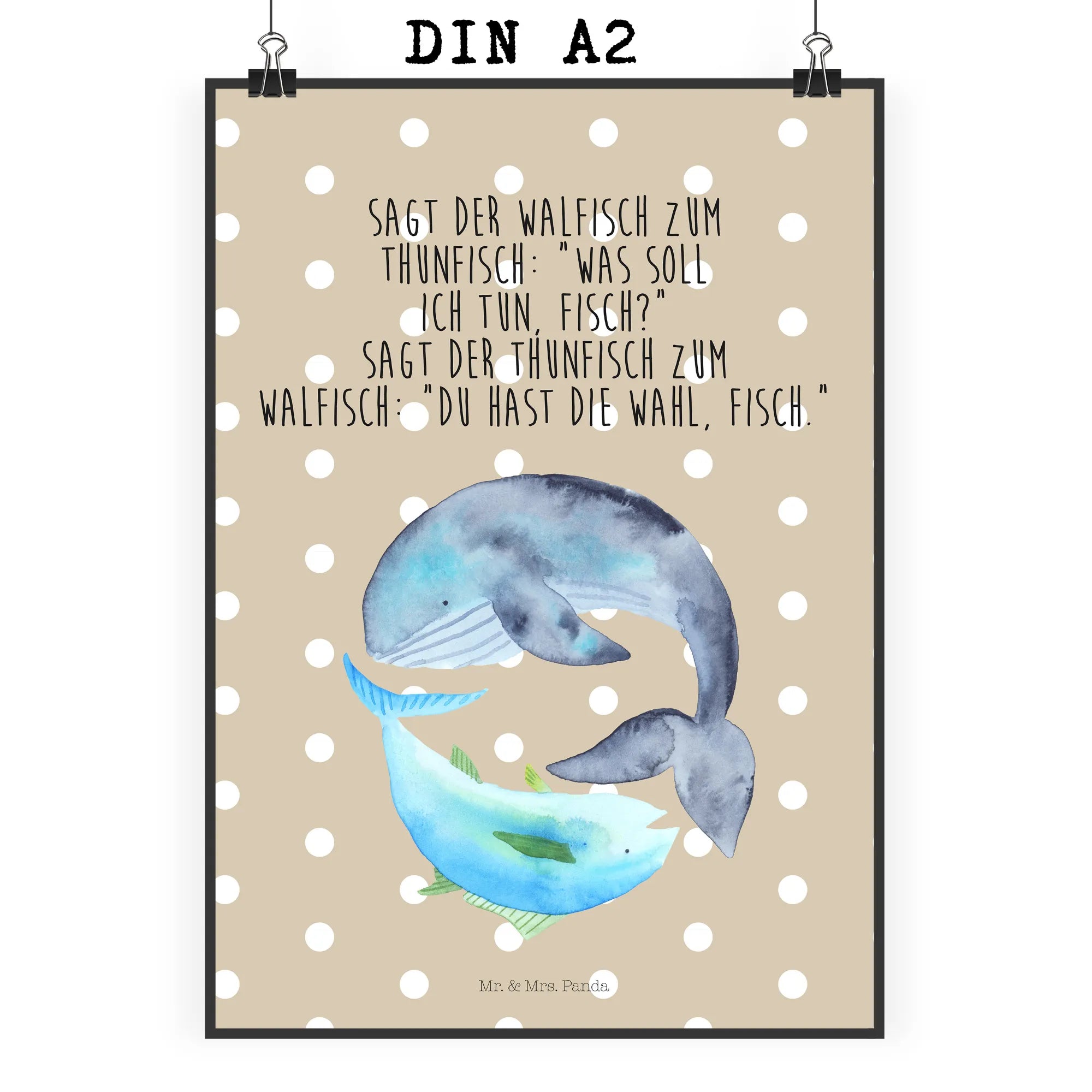 Plakat wieloryb tuńczyk - DIN A0 - z napisem - Pastelowy żółty