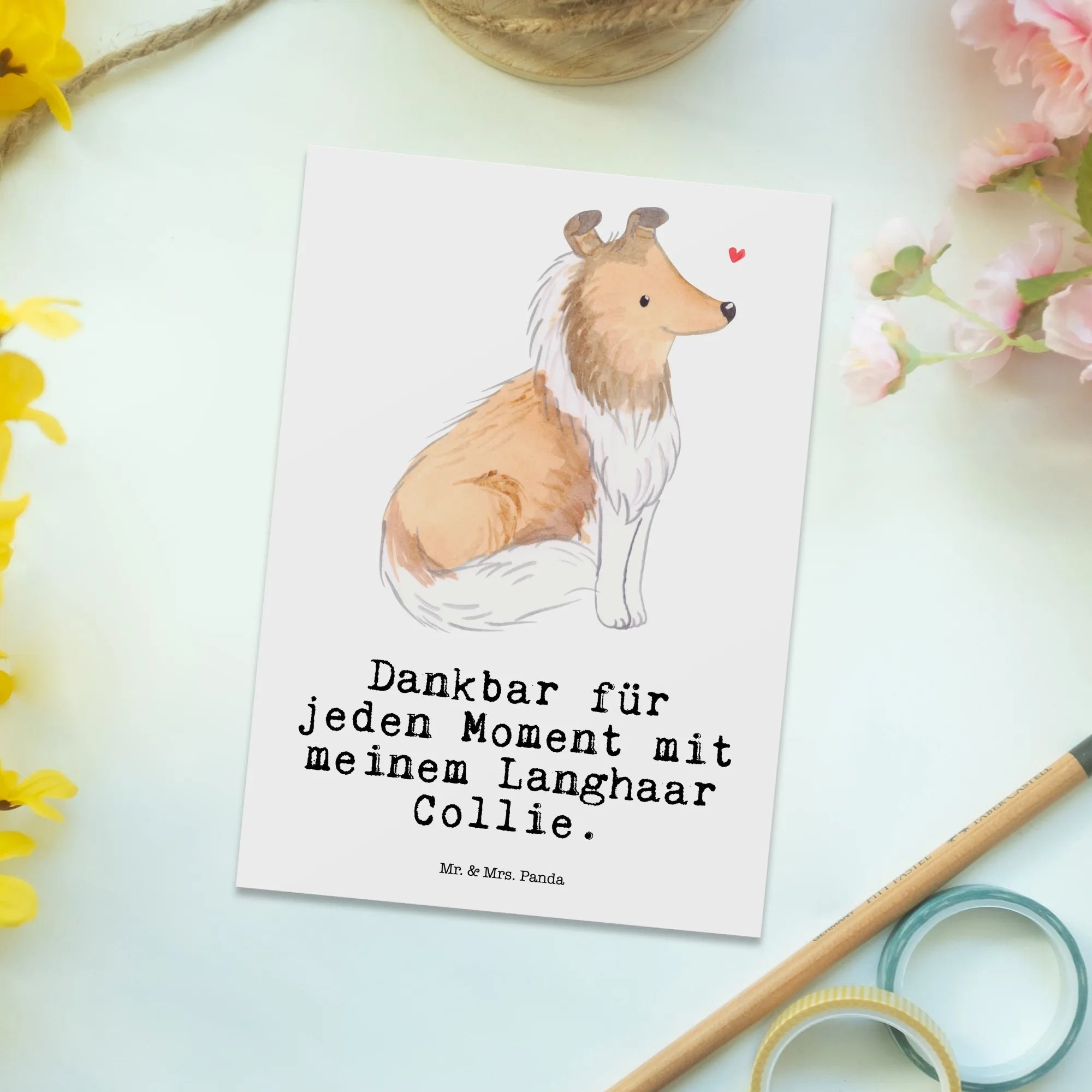 Pocztówka długowłosy collie Chwila - Pastelowy szary
