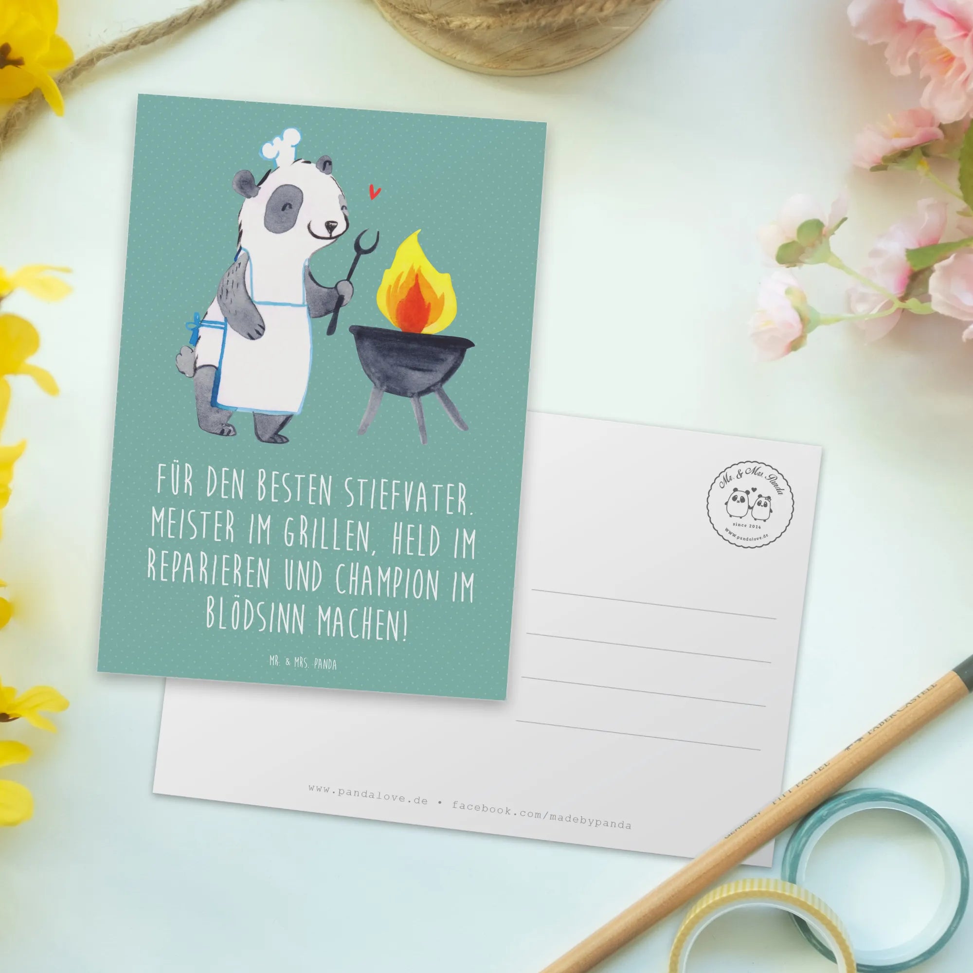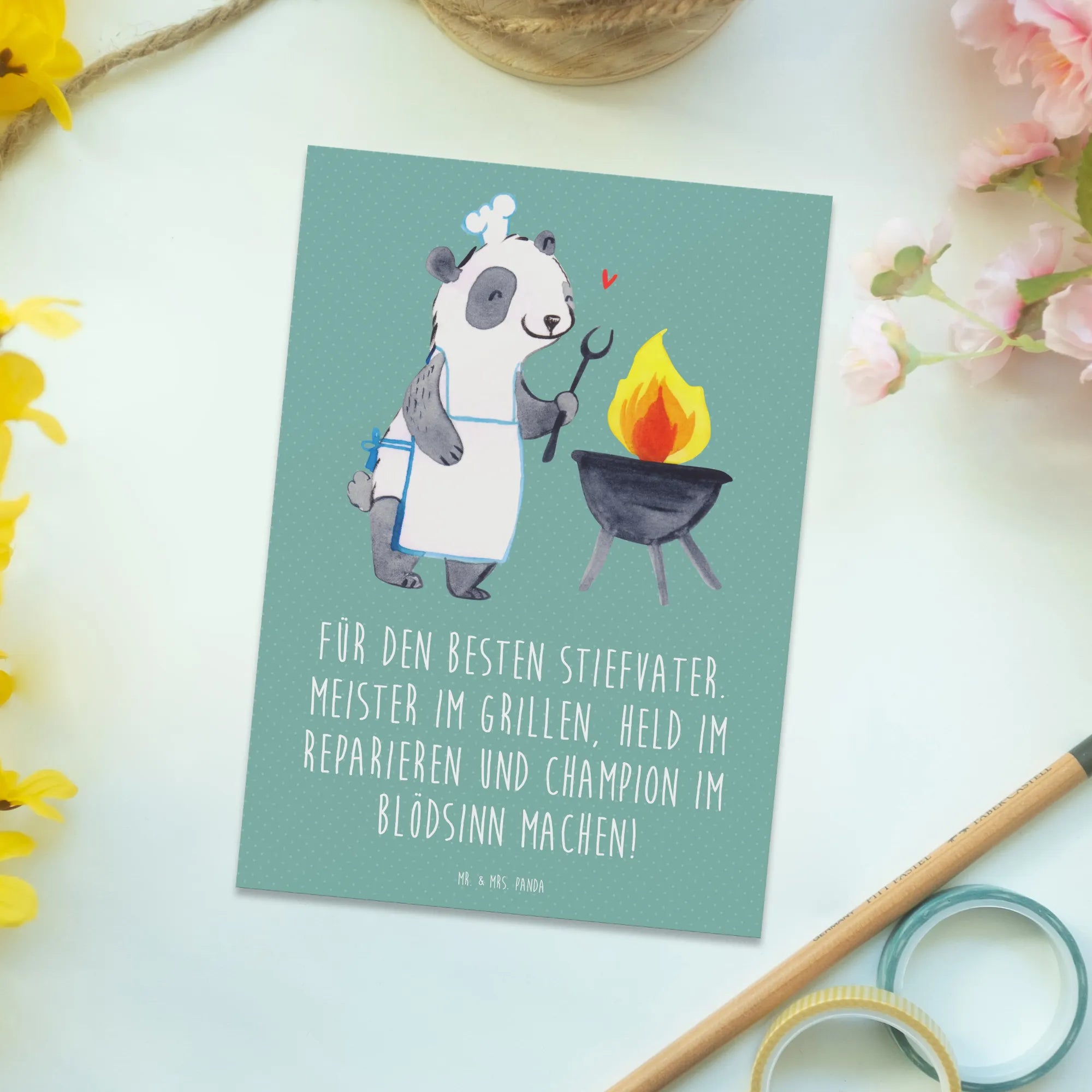 Pocztówka Für den besten Stiefvater. Meister im Grillen, Held im Reparieren und Champion im Blödsinn machen! - Meeresbrise