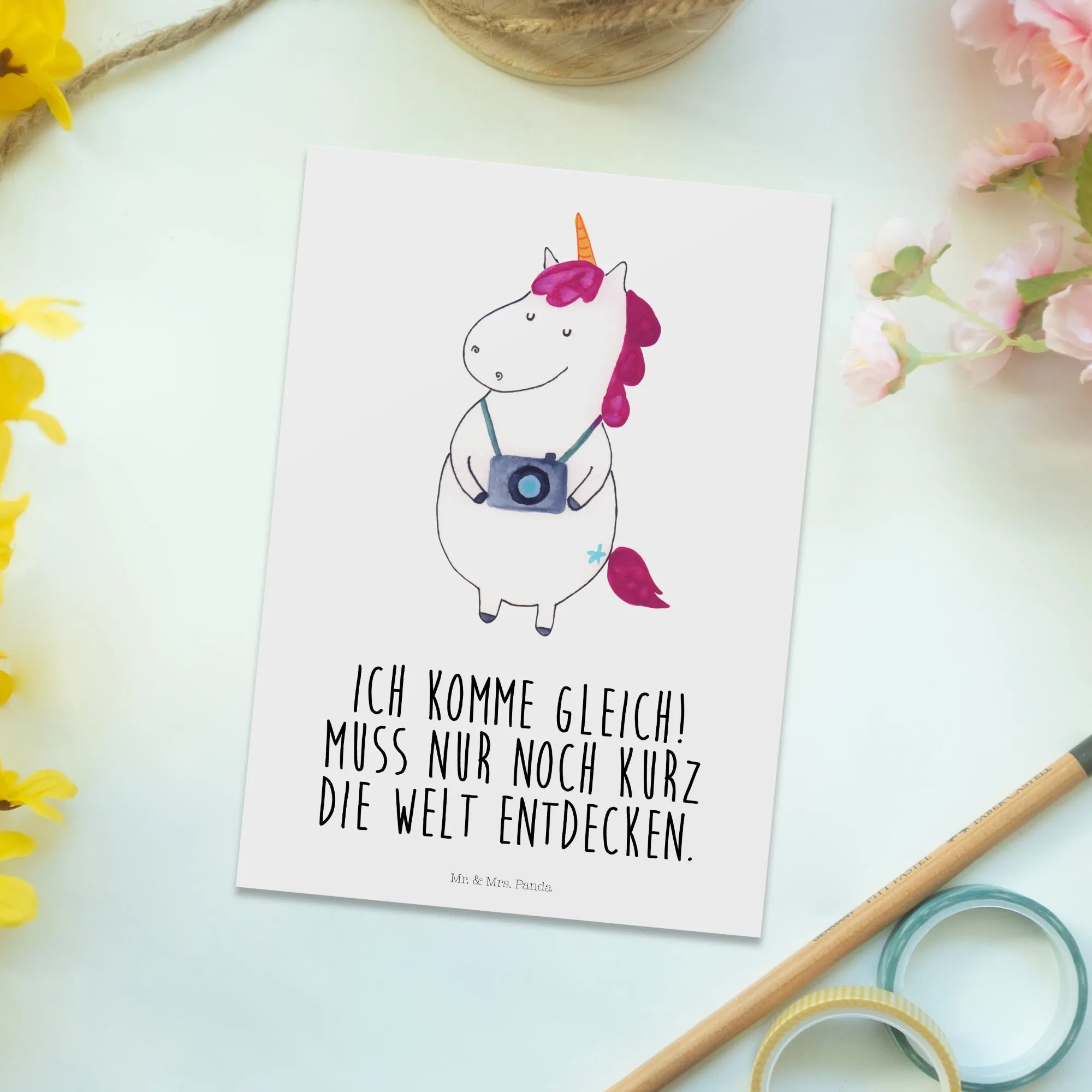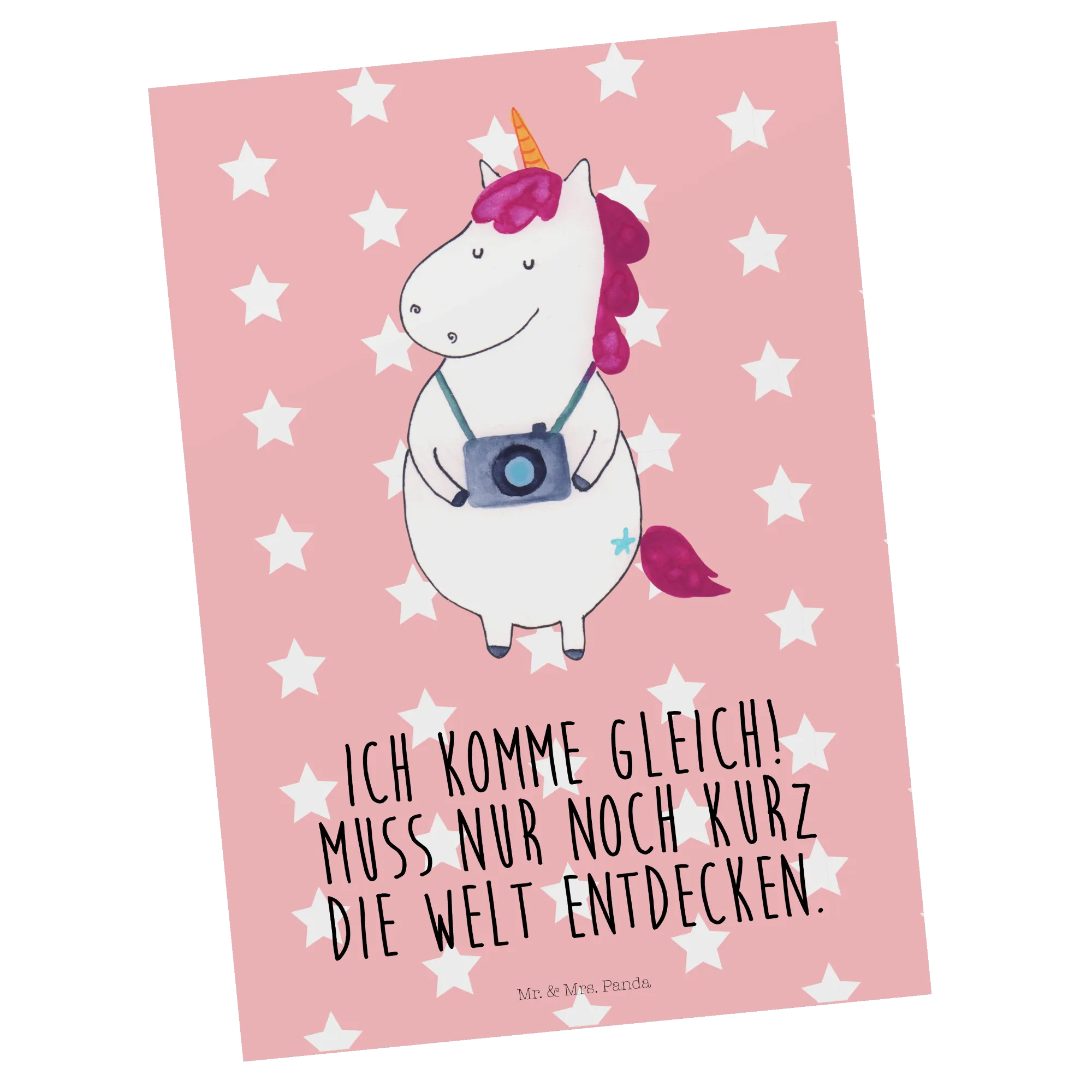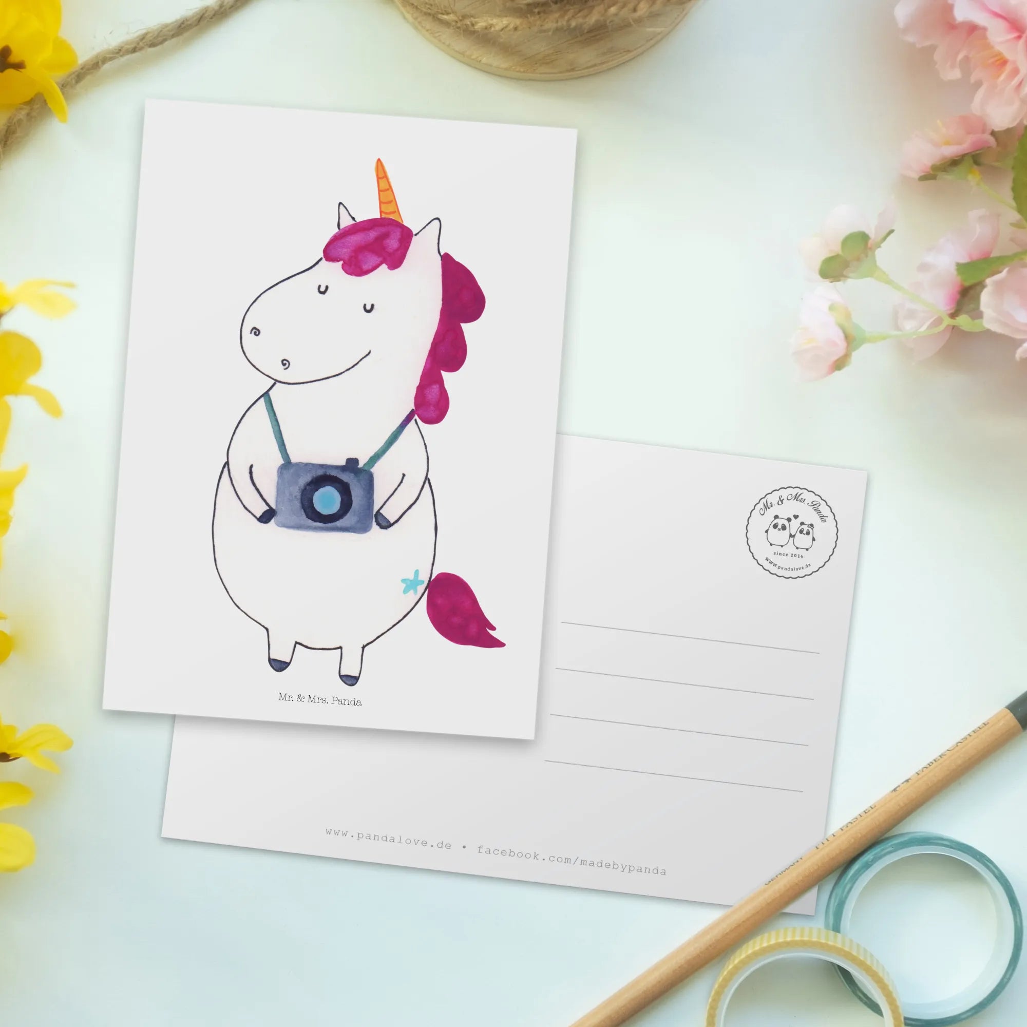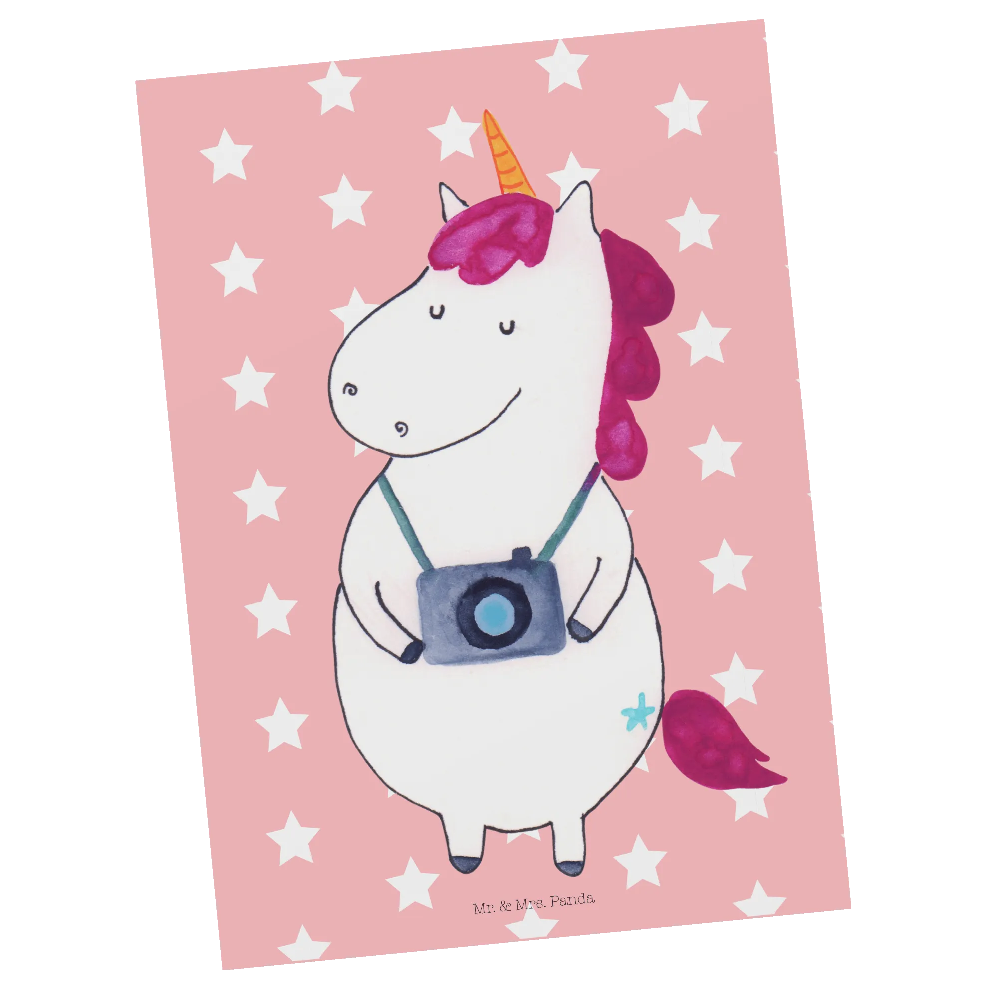 Pocztówka Jednorożec fotograf - z napisem - Różowy Czerwony
