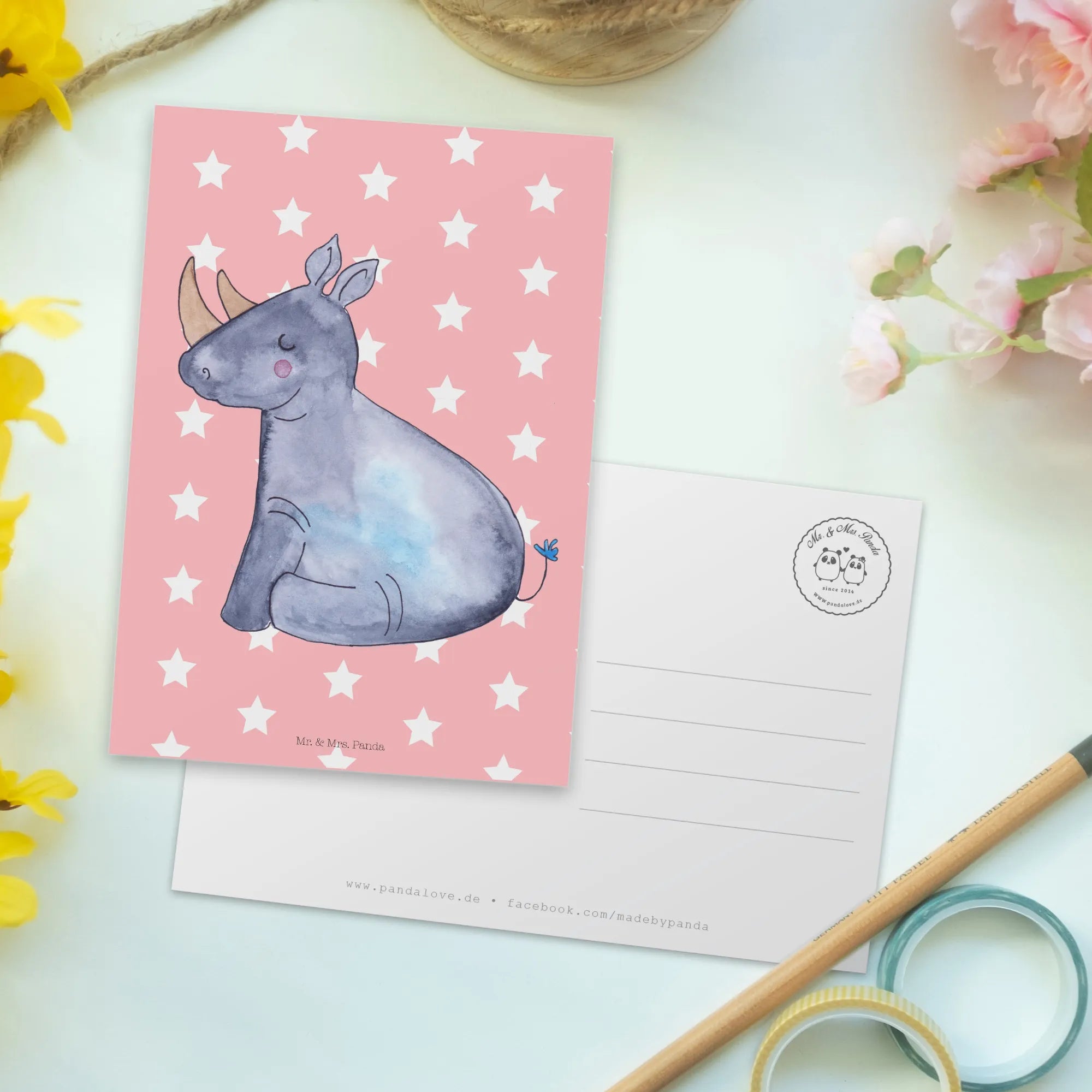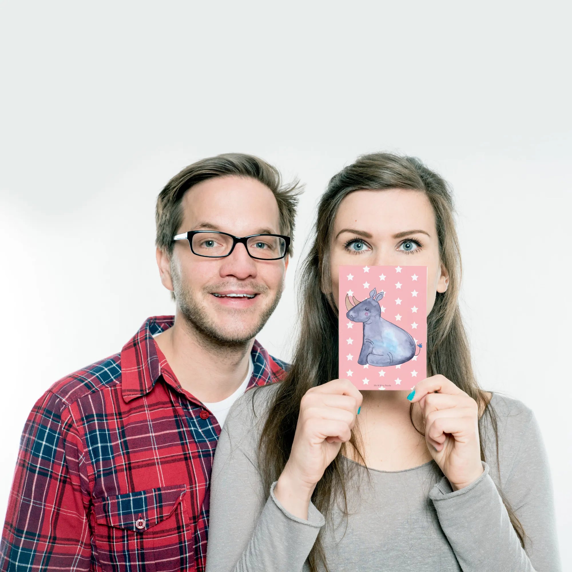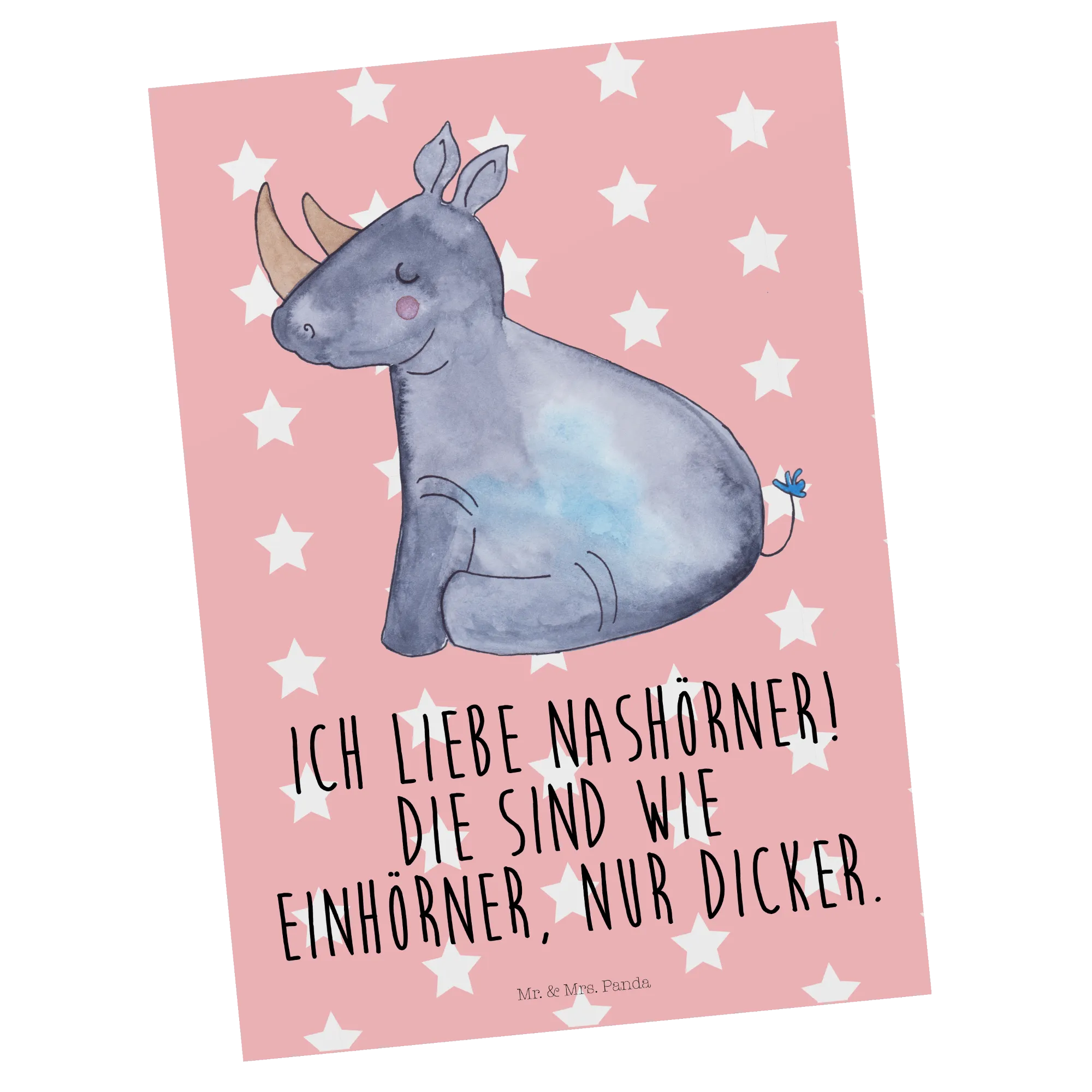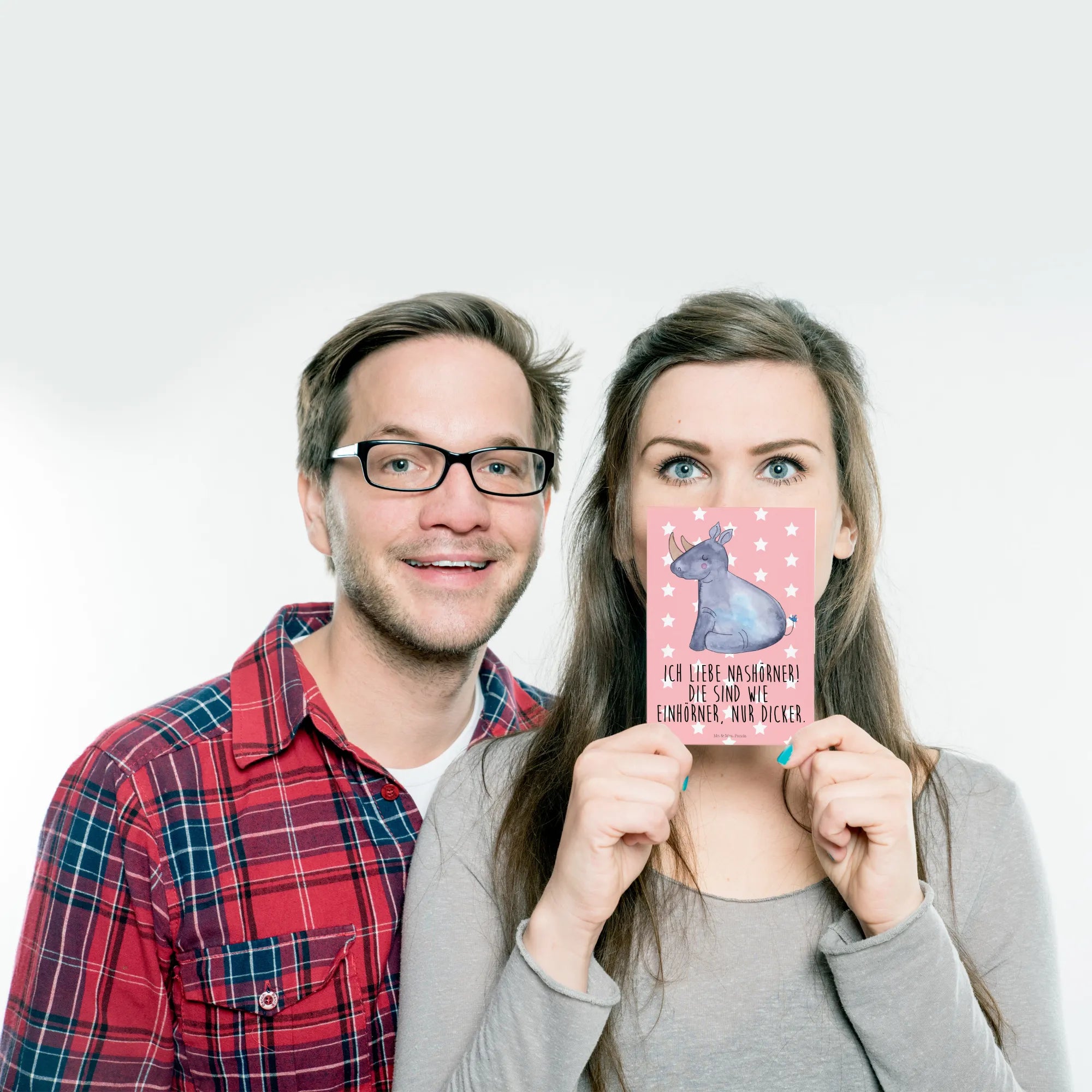 Suchst du eine charmante, witzige und zugleich zauberhafte Karte? Unsere Postkarte „Einhorn Nashorn“ aus der Einhorn - Kollektion von Mr. & Mrs. Panda bringt genau das mit: Ein niedliches, dickes und zufriedenes Nashorn auf pastellrotem Hintergrund, das an Einhörner erinnert – nur herrlich anders. Das Motiv ist ohne Text gestaltet, sodass du deine persönliche Botschaft frei platzieren kannst. ✨