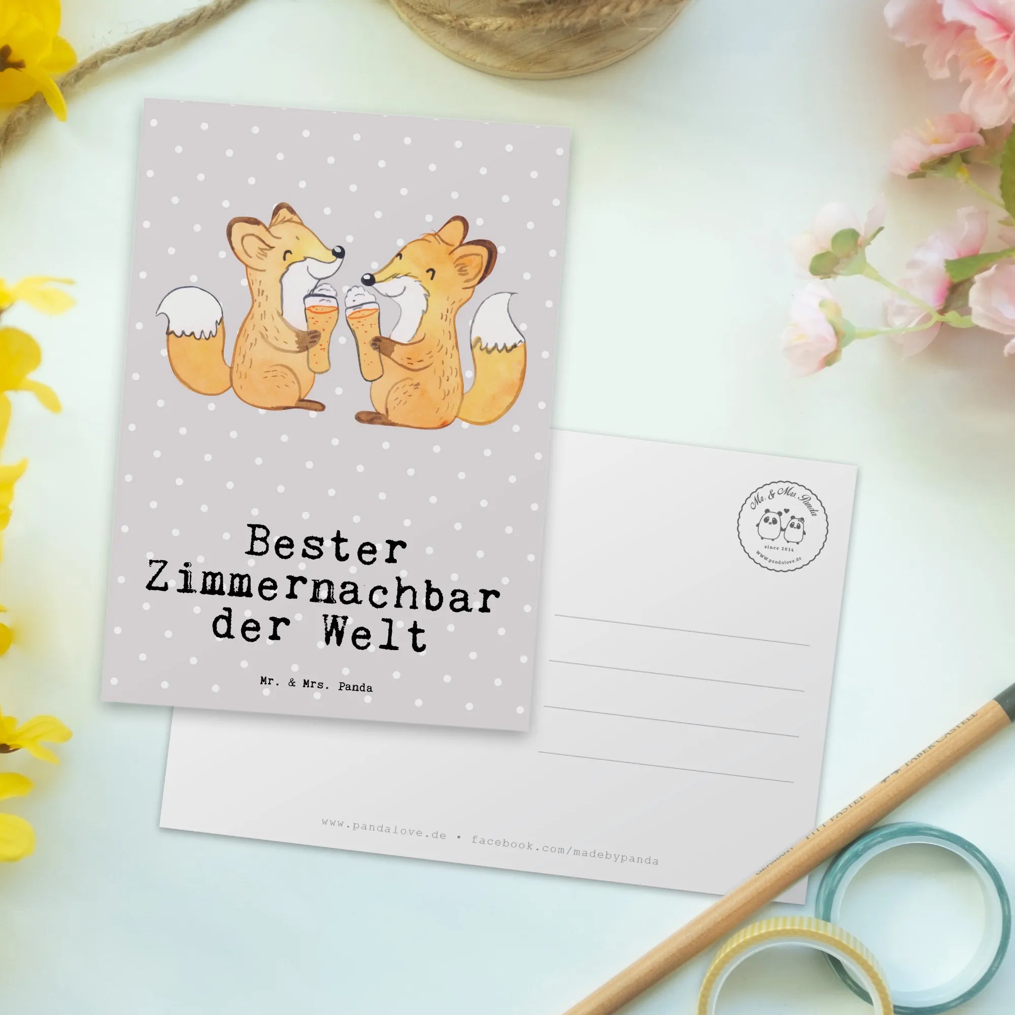 Pocztówka lis Najlepszy współlokator na świecie - Pastelowy szary