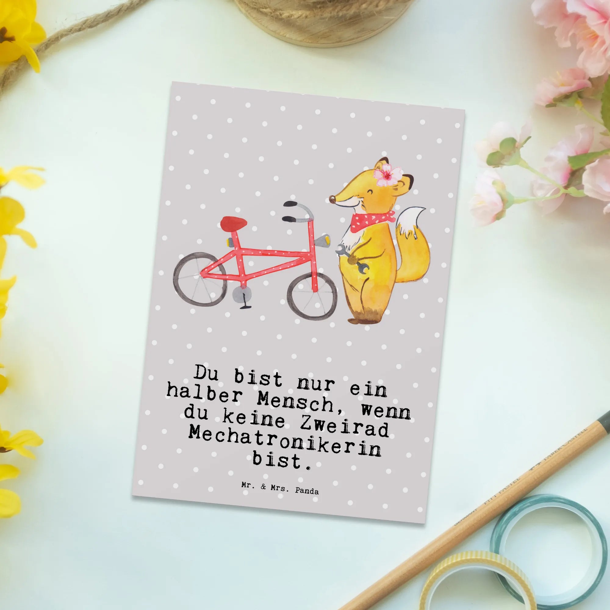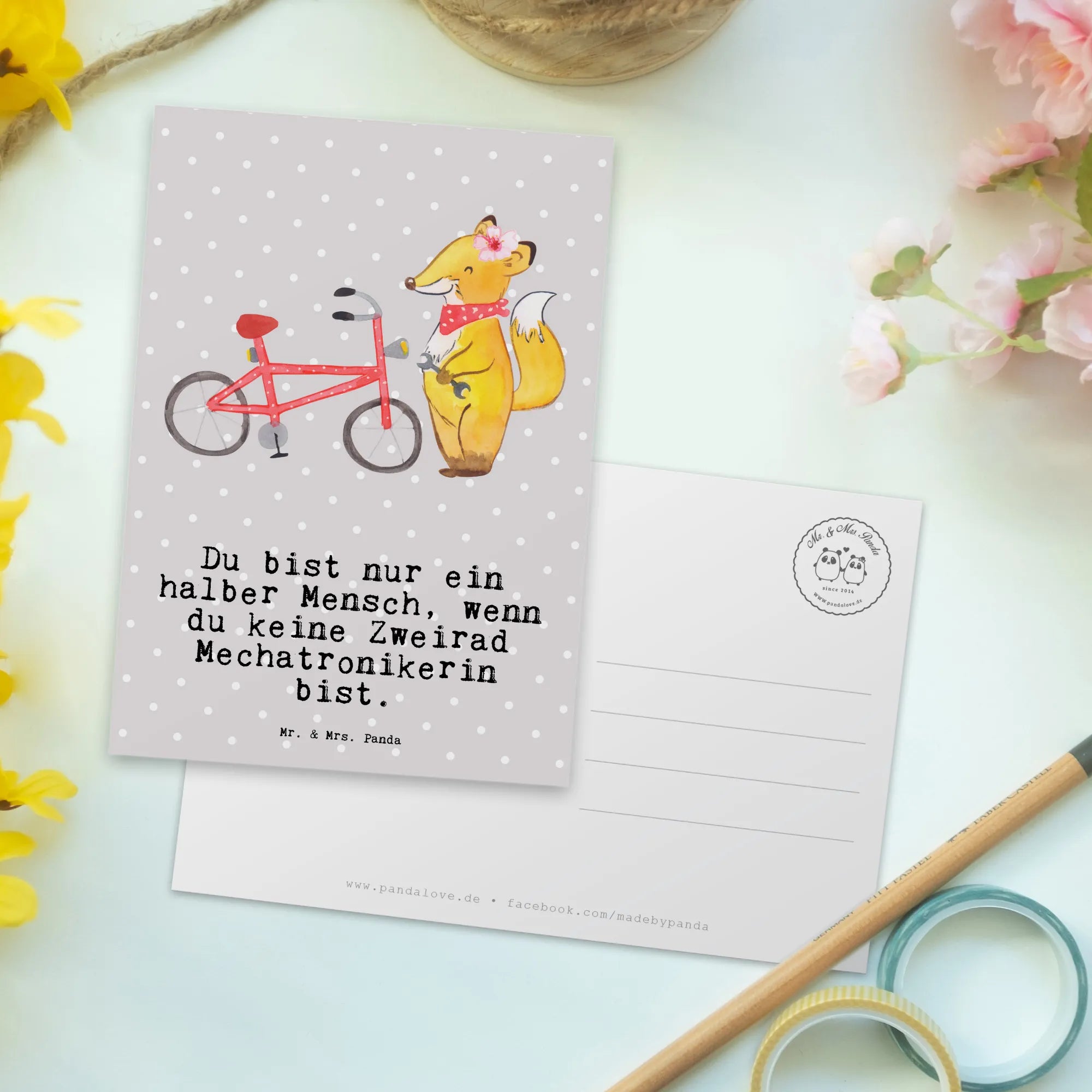 Pocztówka Mechatroniczka pojazdów dwukołowych serce - z napisem - biały