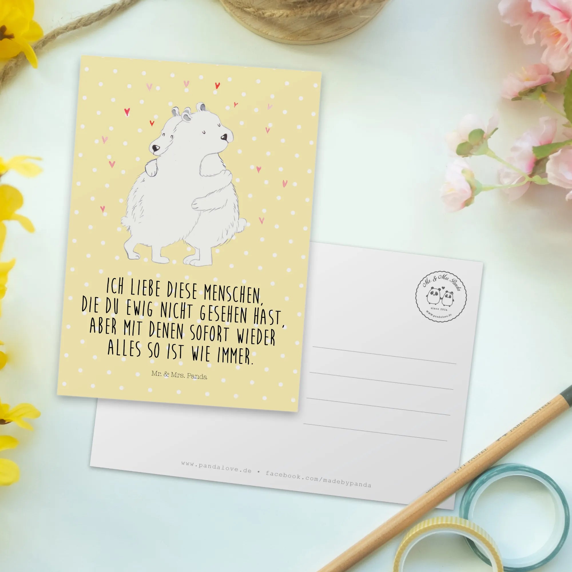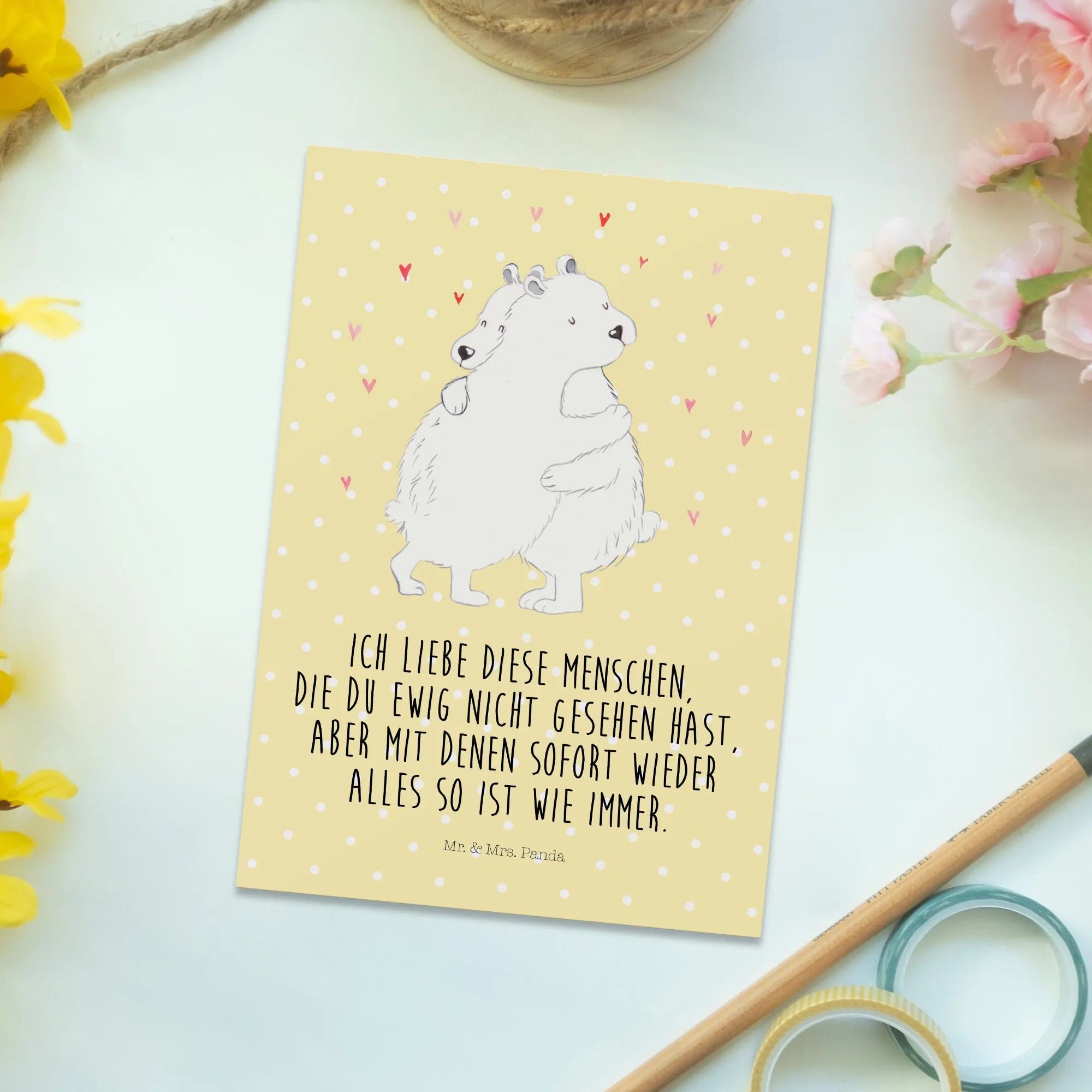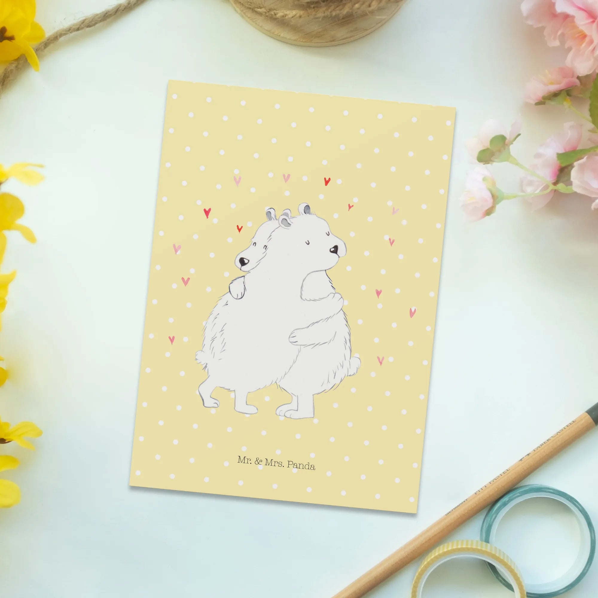 Pocztówka Niedźwiedź polarny obejmować - z napisem - Pastelowy żółty