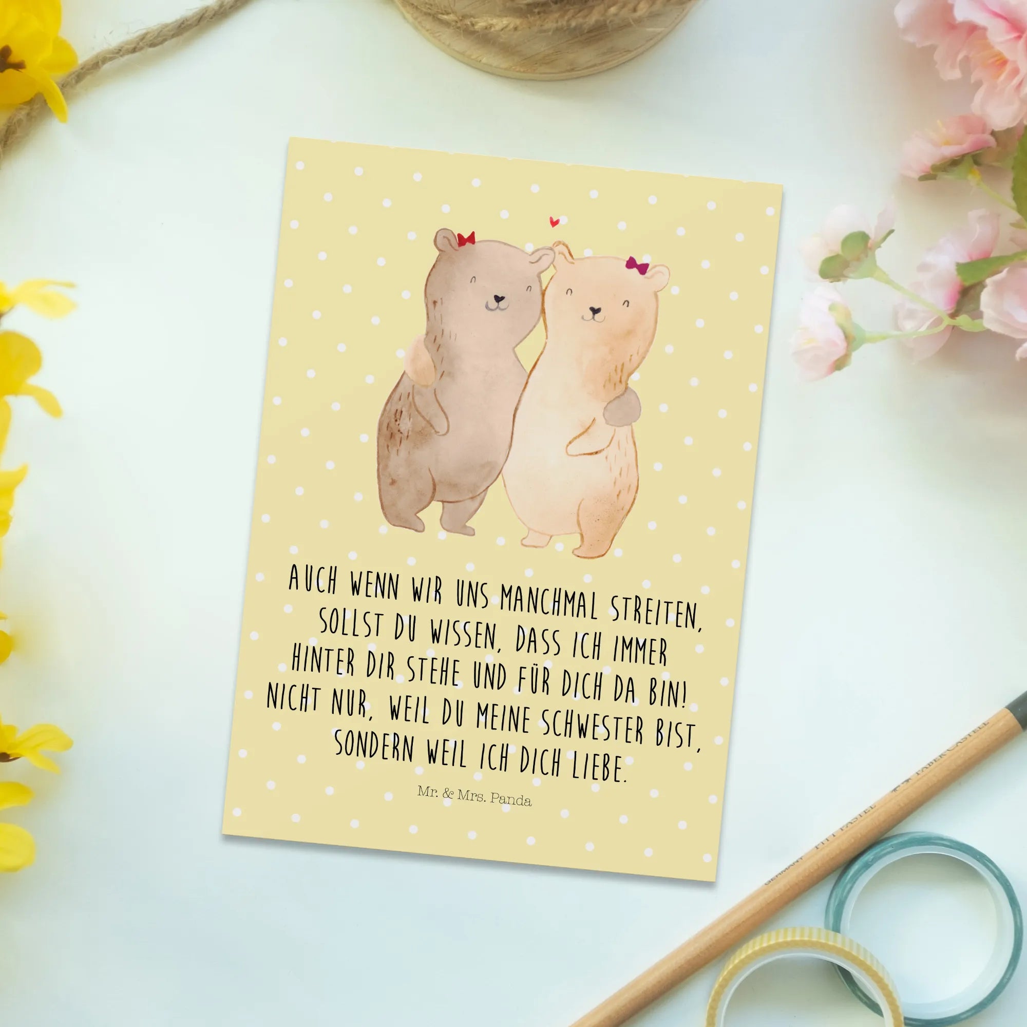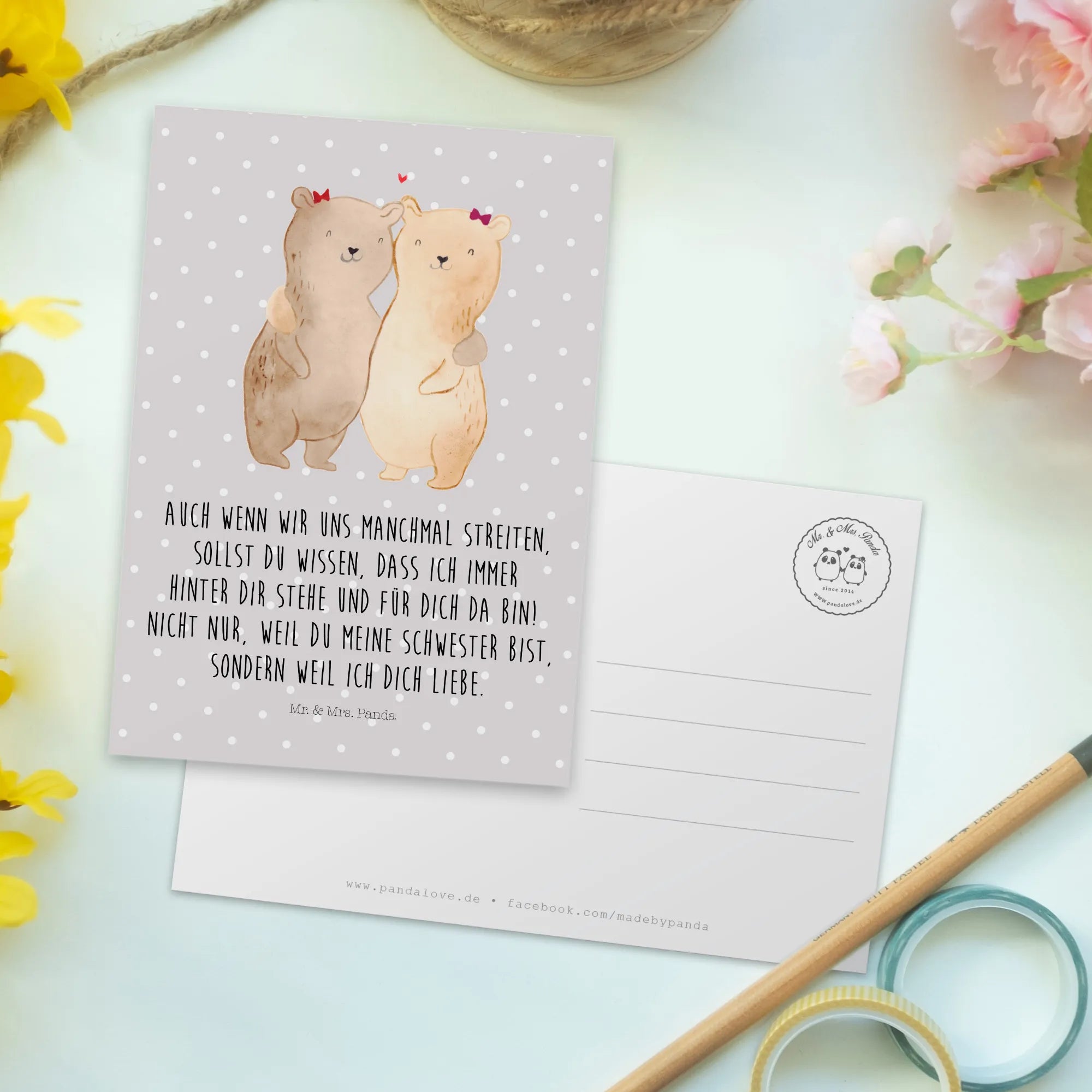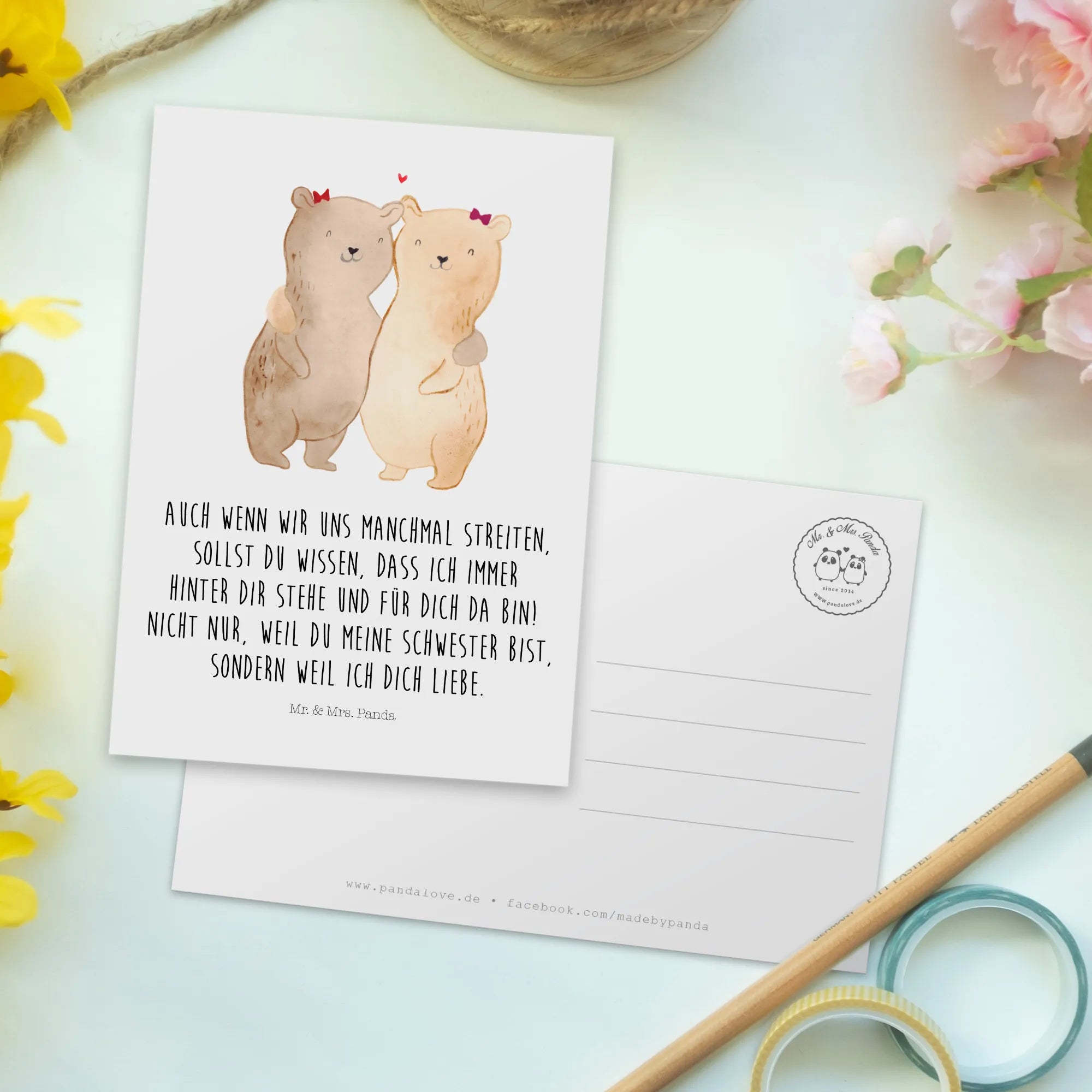 Pocztówka Niedźwiedzie Siostry - z napisem - Biały