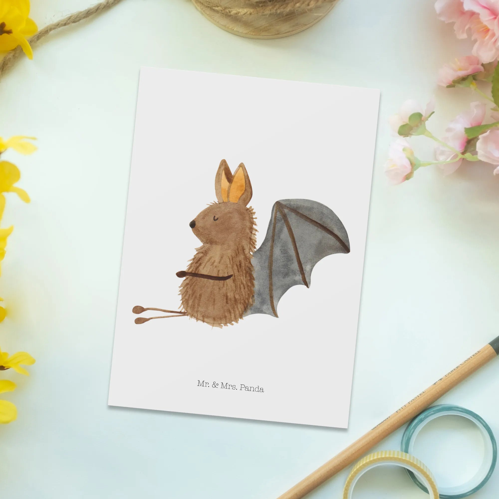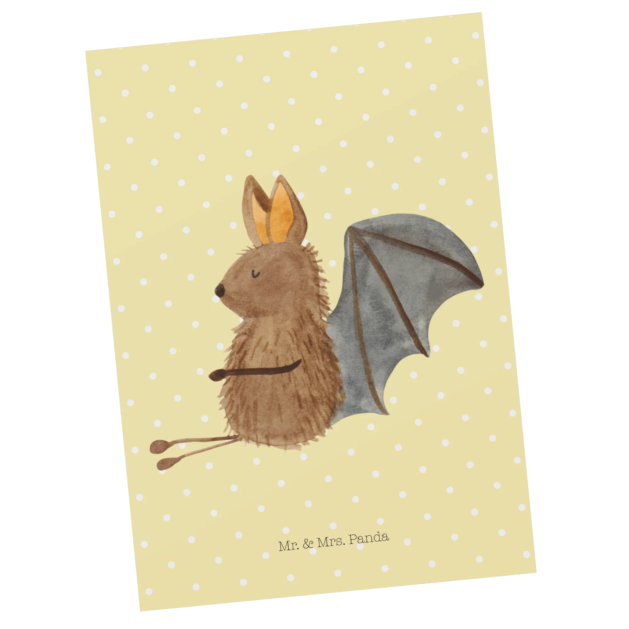 Pocztówka Nietoperz siedzenie - z napisem - biały