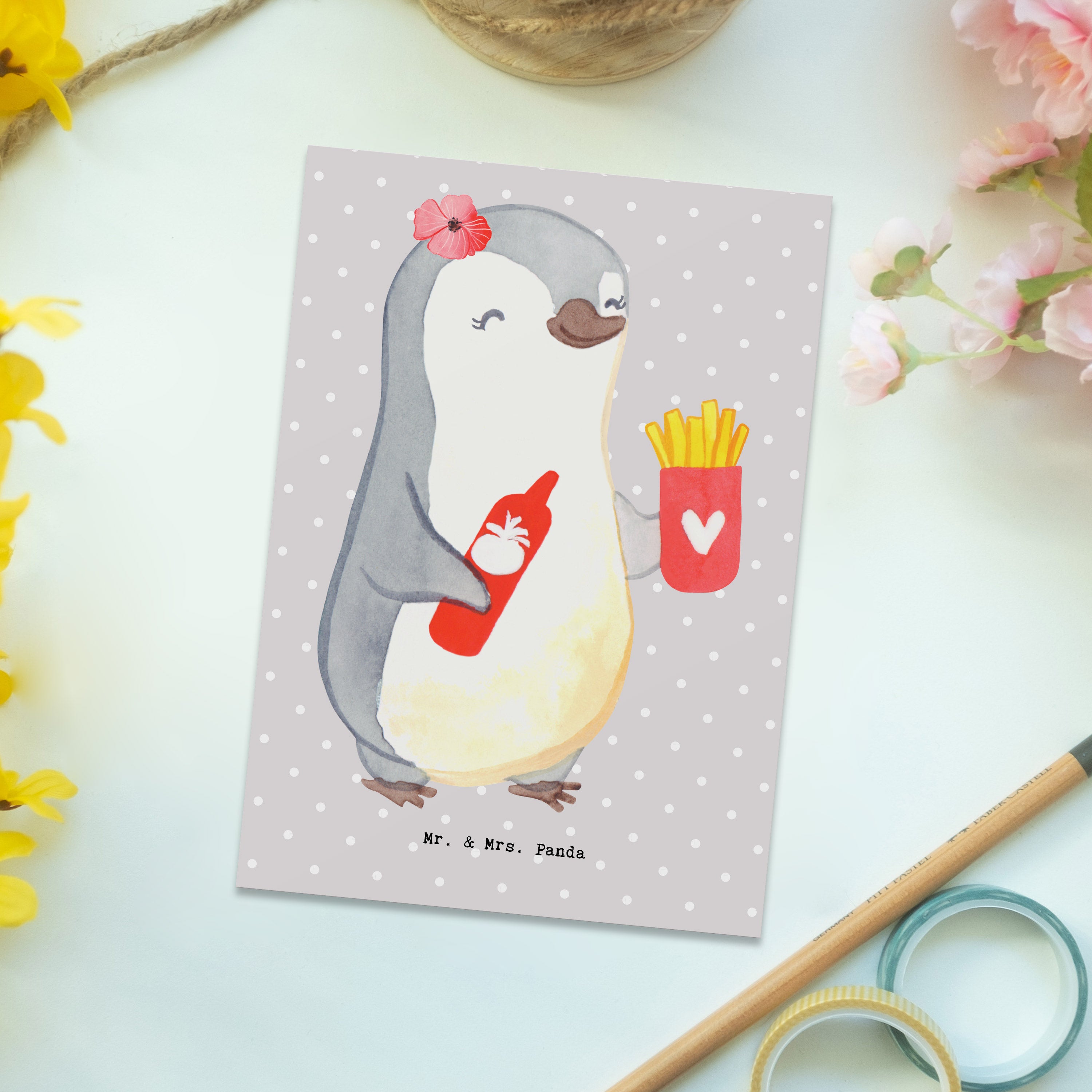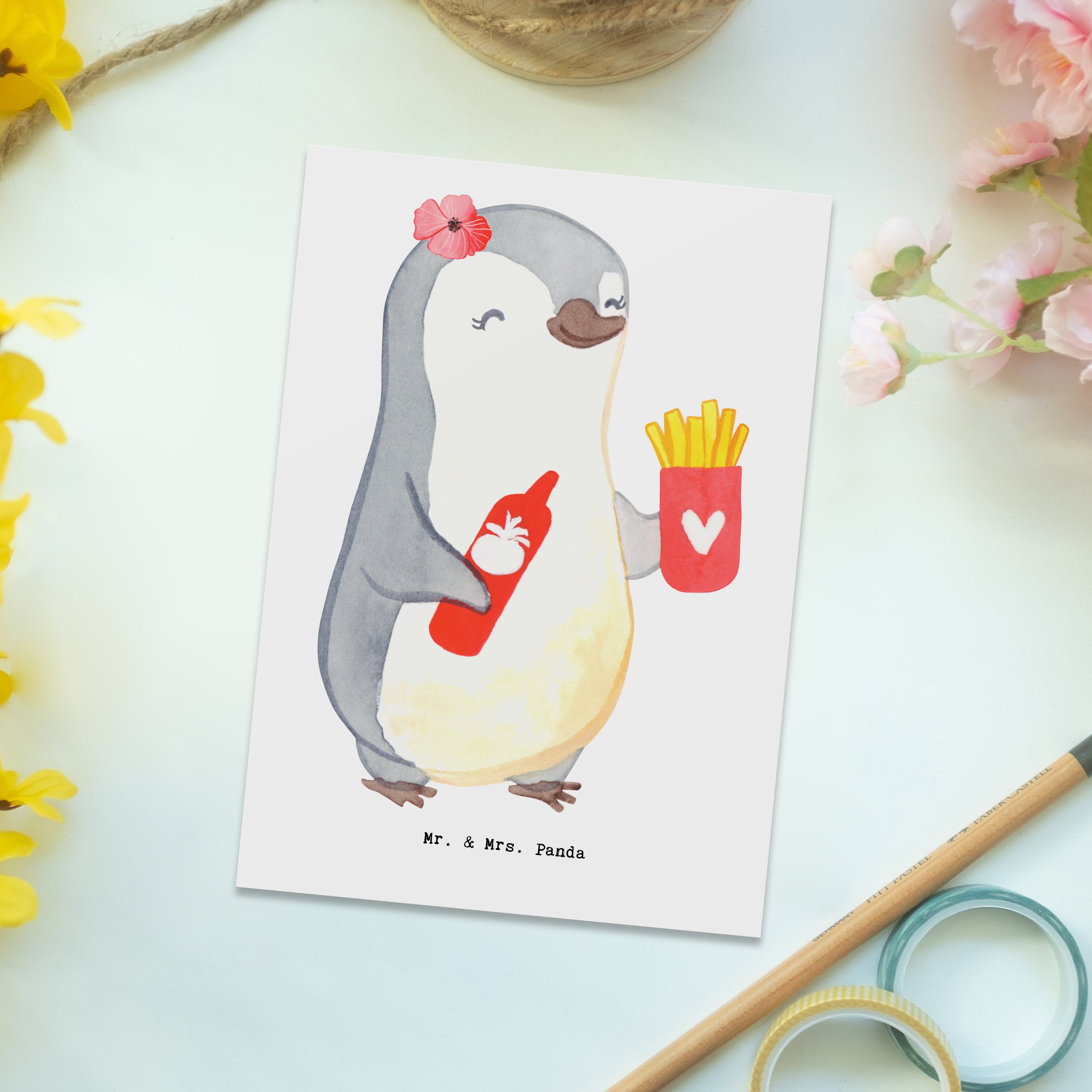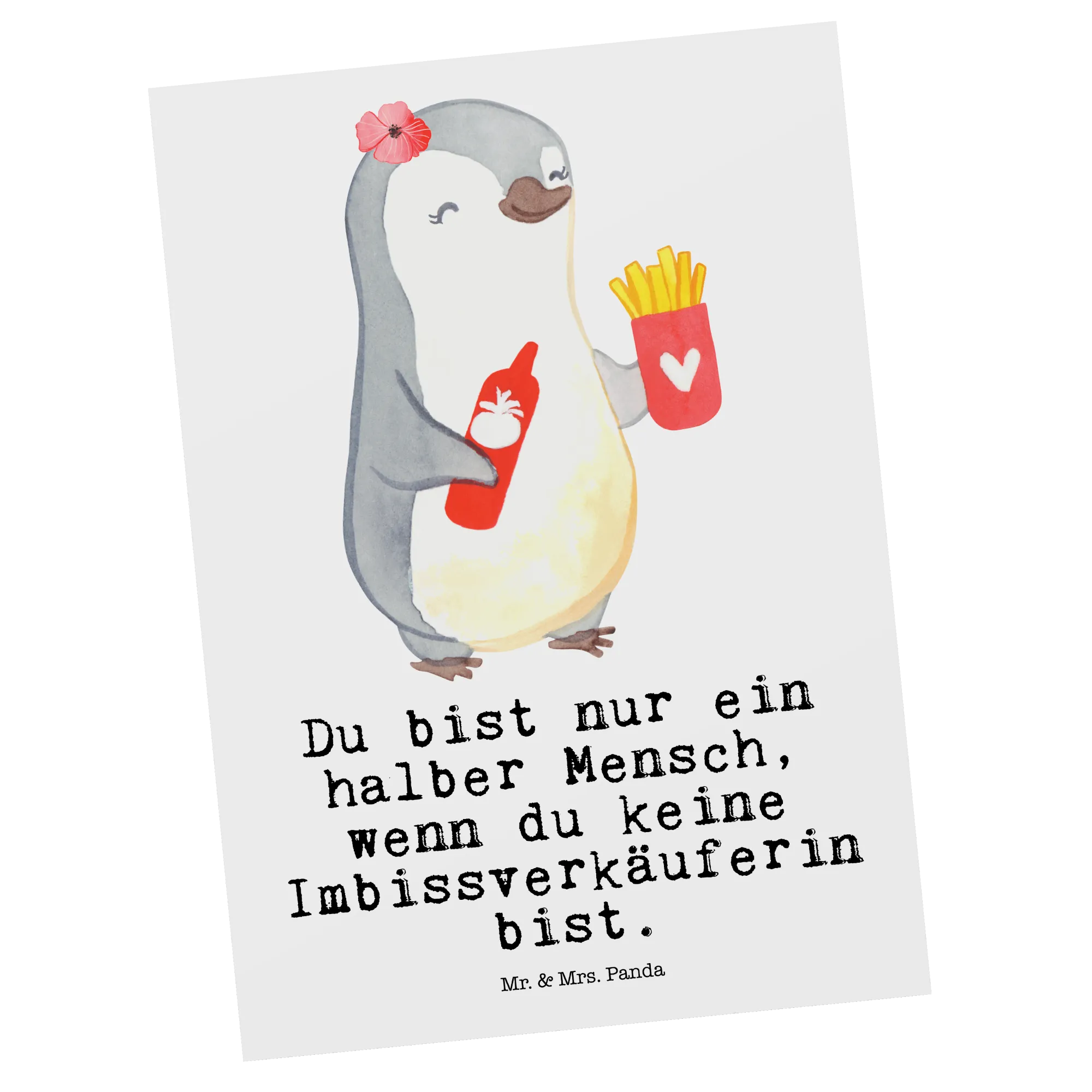 Pocztówka sprzedawczyni budki z przekąskami Serce - z napisem - biały
