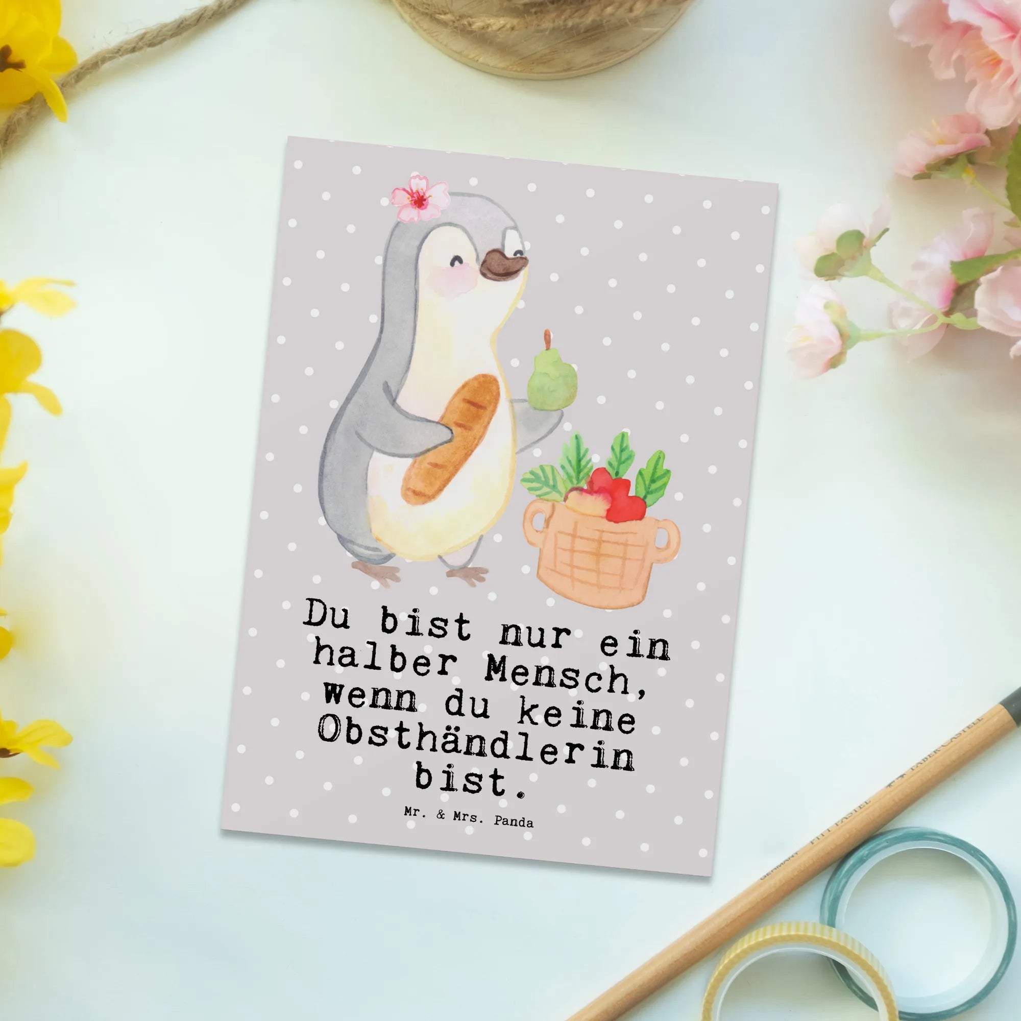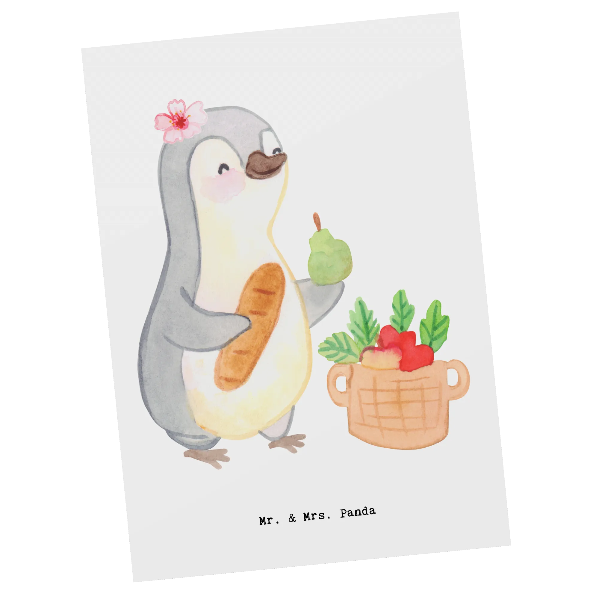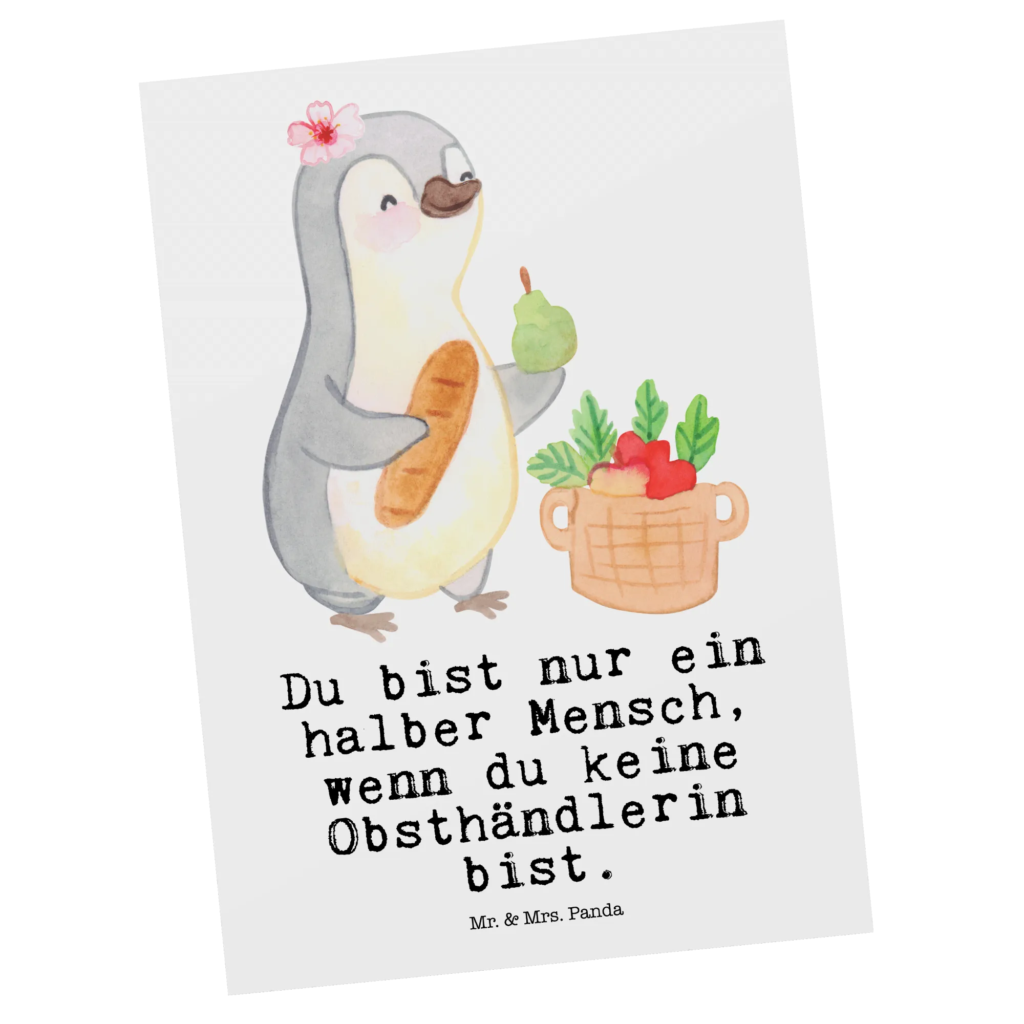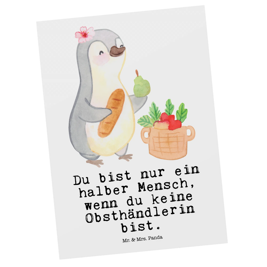 Pocztówka sprzedawczyni owoców serce - z napisem - biały