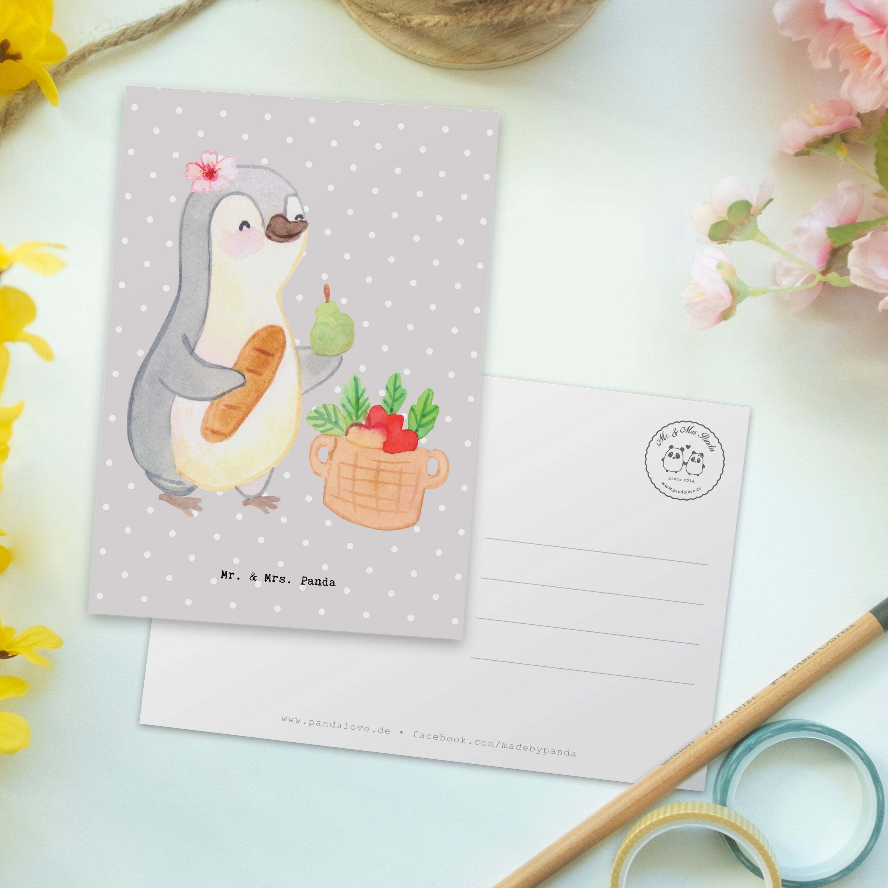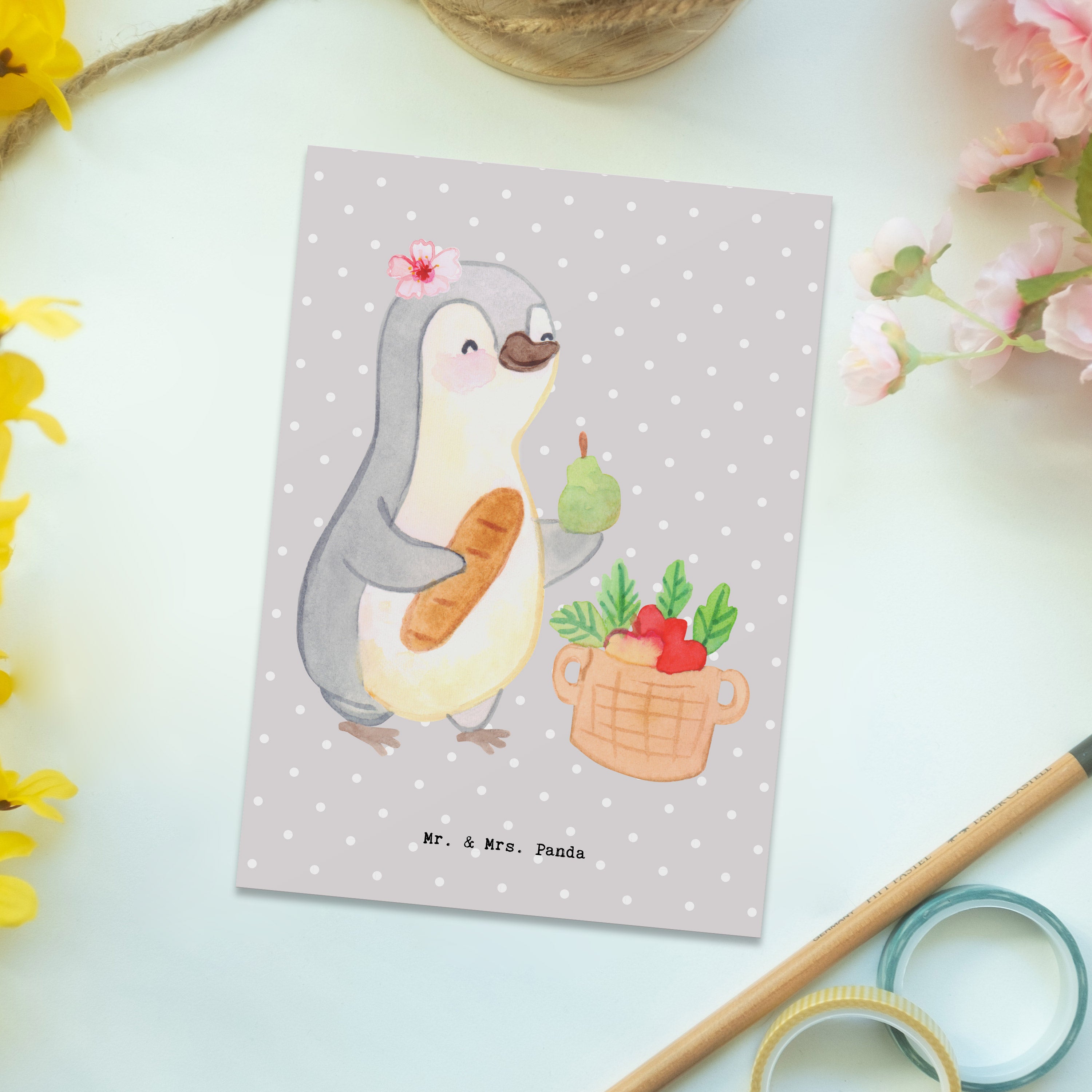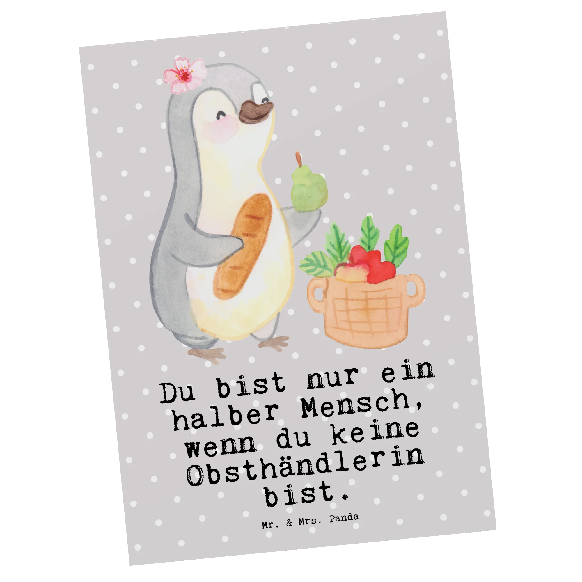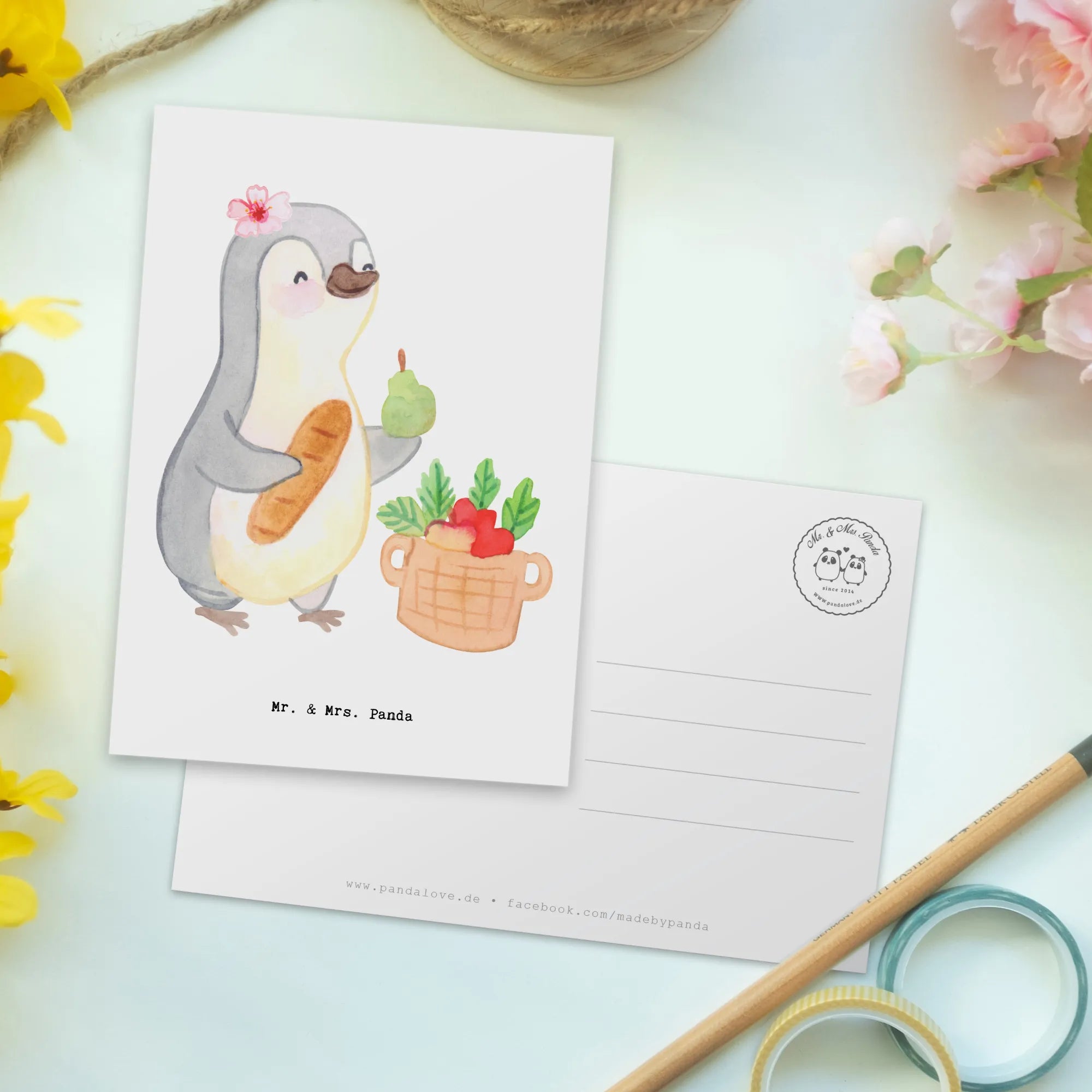 Pocztówka sprzedawczyni owoców serce - z napisem - biały