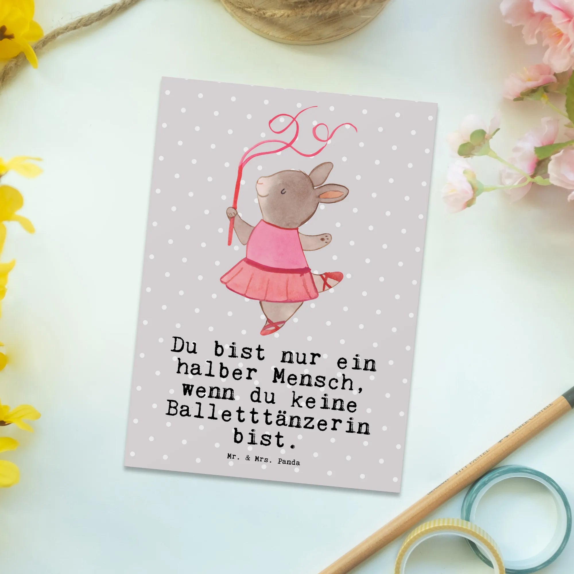 Pocztówka tancerka baletowa Serce - z napisem - Pastelowy szary