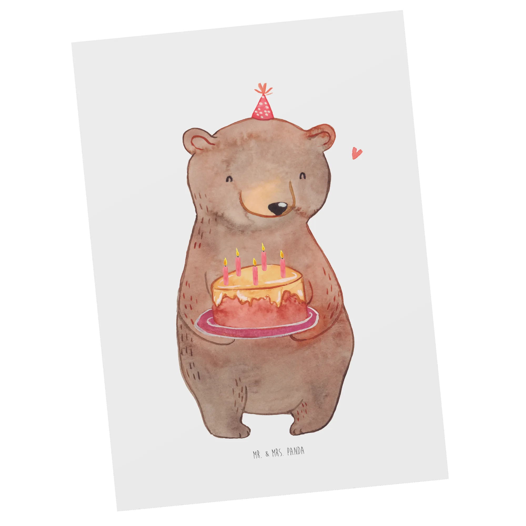 Wenn du auf der Suche nach der perfekten Grußkarte für einen ganz besonderen Geburtstag bist, dann ist die Postkarte "Geburtstags Bär Torte" von Mr. & Mrs. Panda genau das Richtige für dich! Diese einzigartig gestaltete Karte ist die ideale Wahl, um Freude zu verschenken und den Tag des Geburtstagskindes unvergesslich zu machen. Mit ihrem niedlichen Motiv eines kleinen Bären, der fröhlich eine Geburtstagstorte in den Händen hält und dabei ein lustiges Partyhütchen trägt, bringt diese Karte ein Lächeln ins Gesicht!