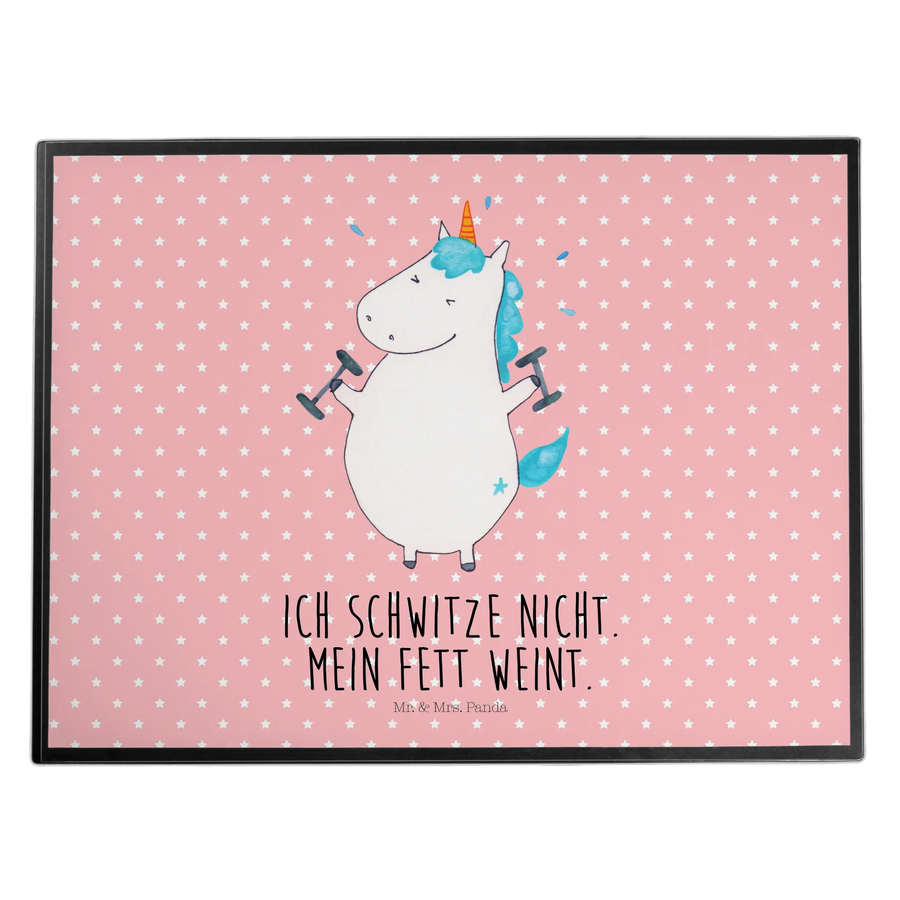 Bring gute Laune an deinen Arbeitsplatz mit unserer Schreibtischunterlage „Einhorn Fitness“ aus der Einhorn - Kollektion von Mr. & Mrs. Panda. Ein süßes Einhorn stemmt Hanteln, spritzt frech und begleitet dich mit dem Spruch „Ich schwitze nicht. Mein Fett weint.“. Das Motiv passt perfekt in Homeoffice, Büro, Studium oder Kinderzimmer und ist ein echter Eyecatcher unter den Büroartikeln.