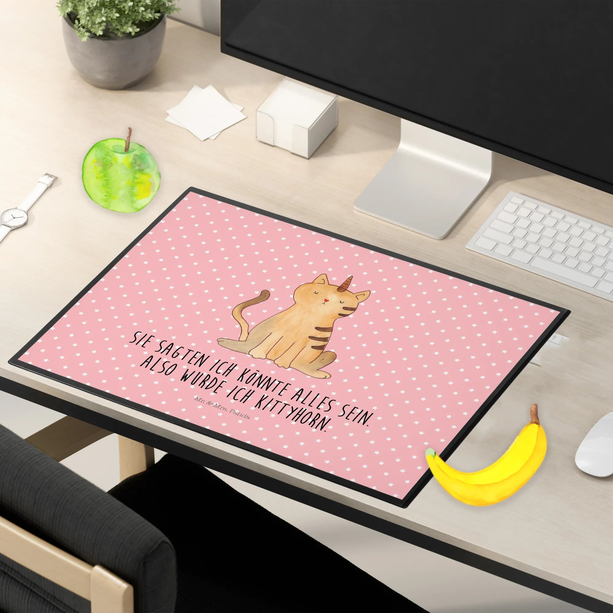 Podkładka na biurko jednorożec kot - z napisem - Różowy Czerwony