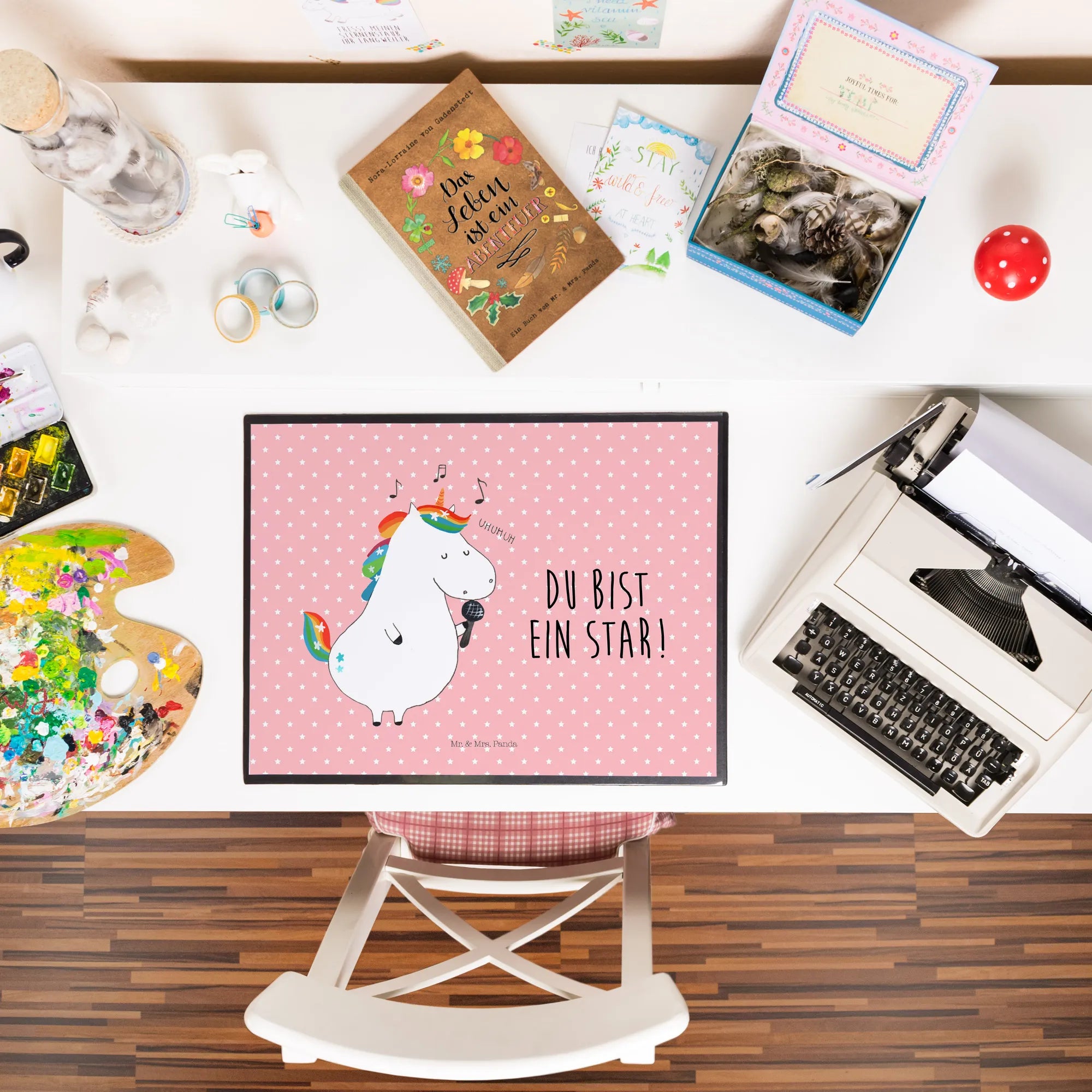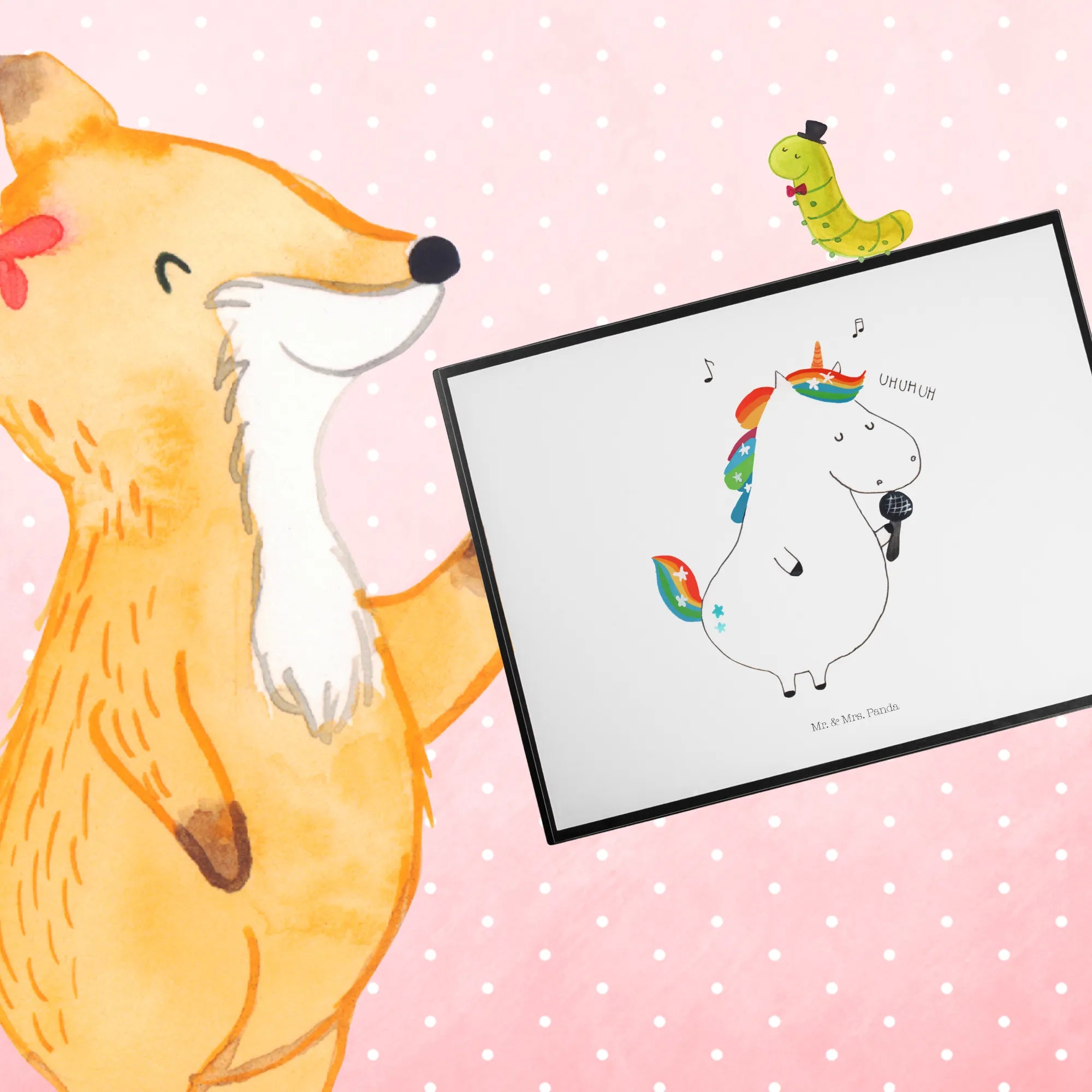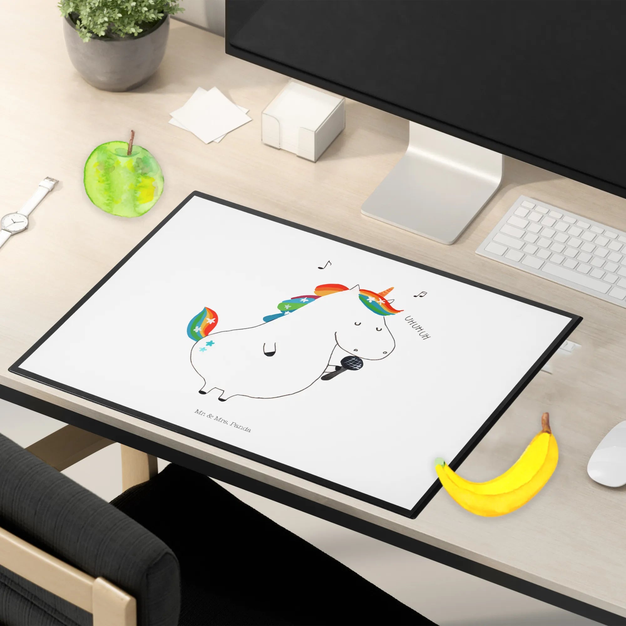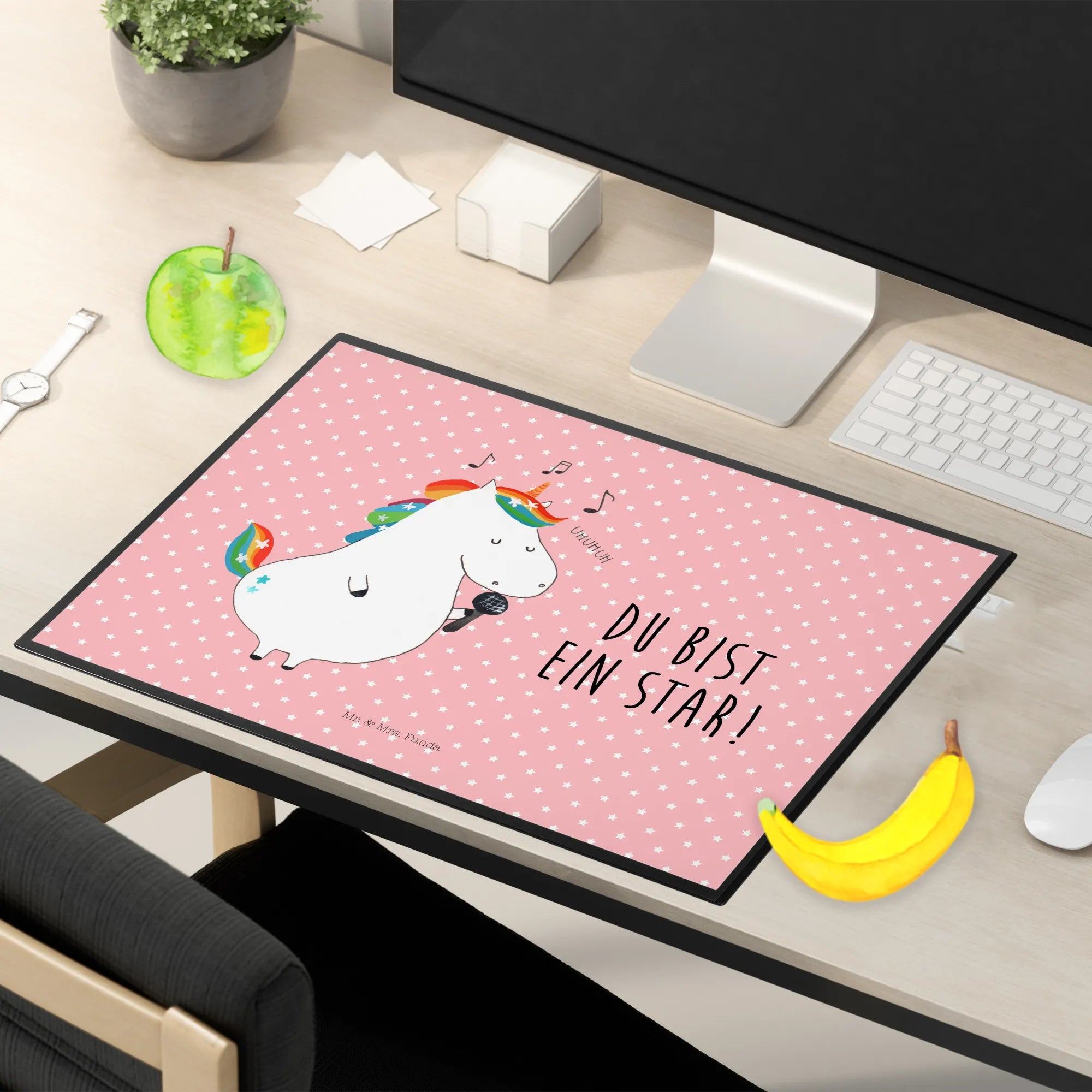Podkładka na biurko jednorożec Śpiewak - z napisem - Pastelowy czerwony