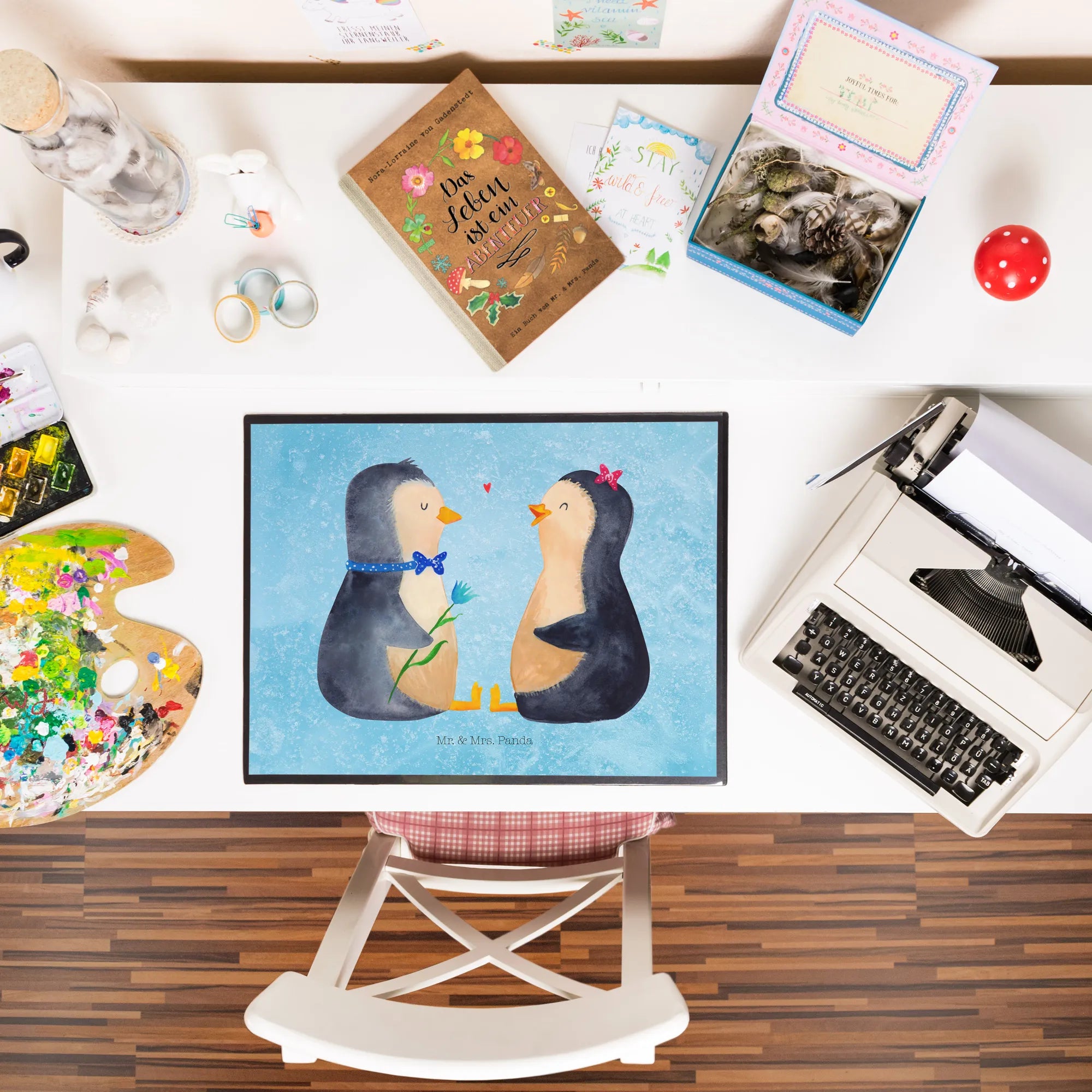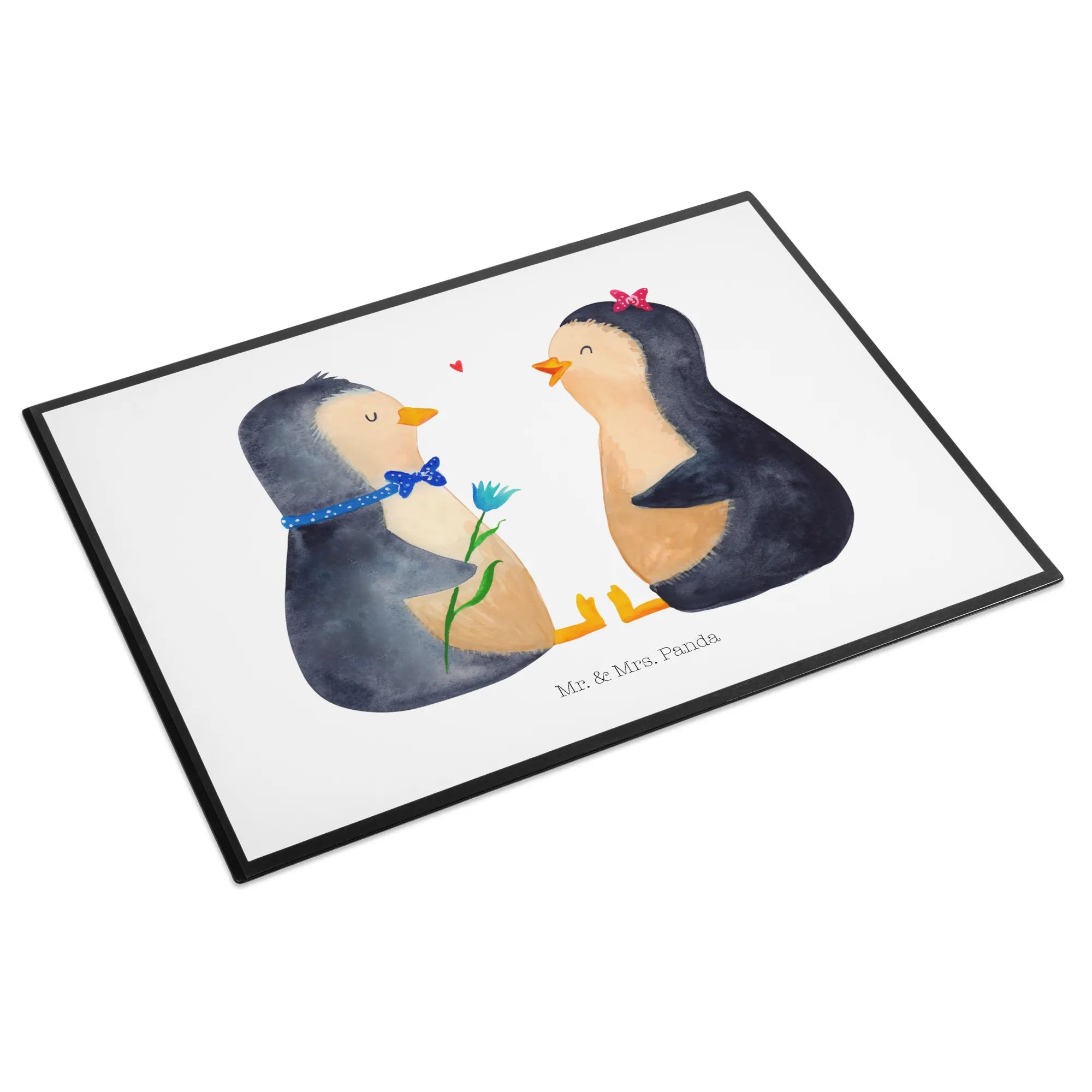Podkładka na biurko Pingwin para - z napisem - Biały