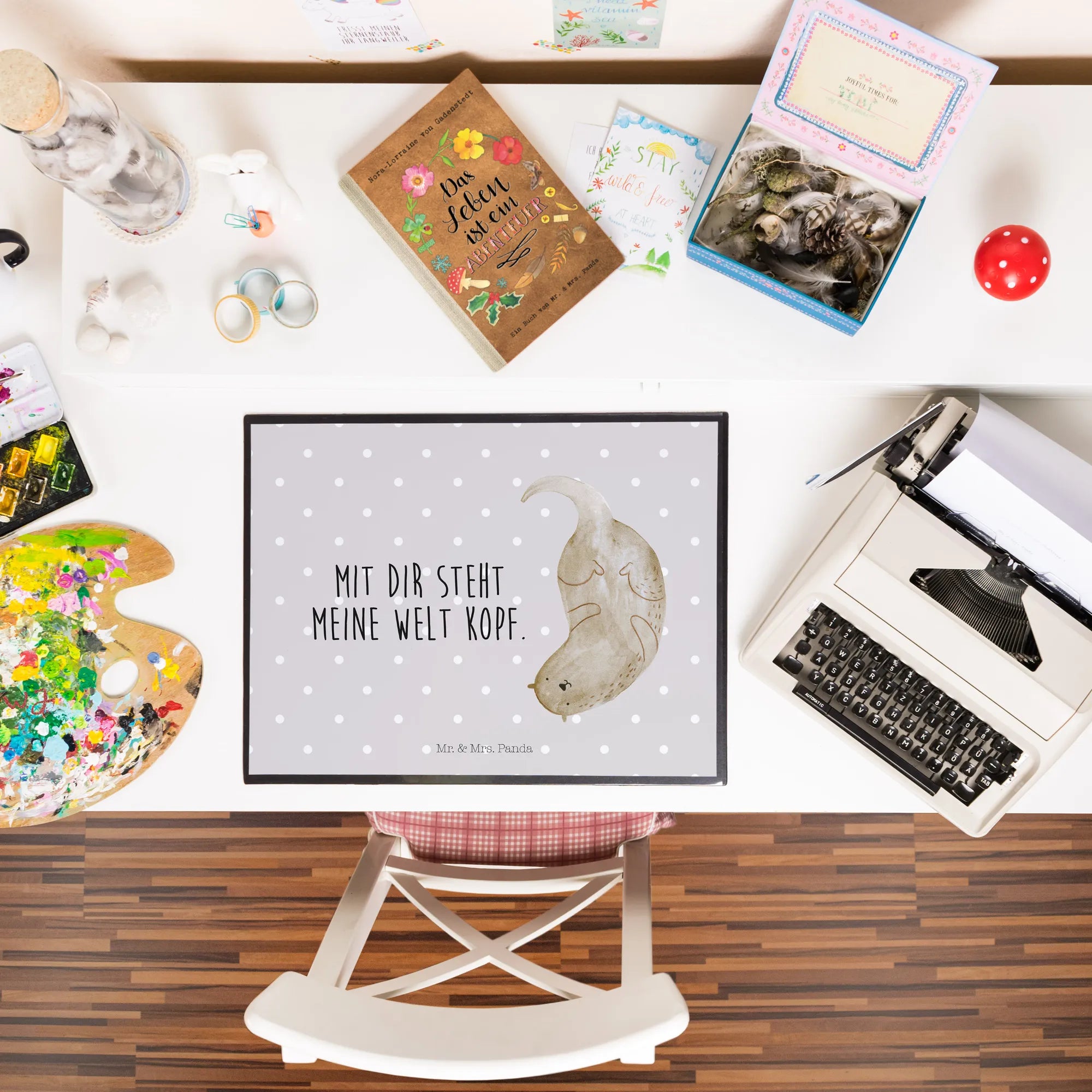 Podkładka na biurko wydra Do góry nogami - z napisem - biały