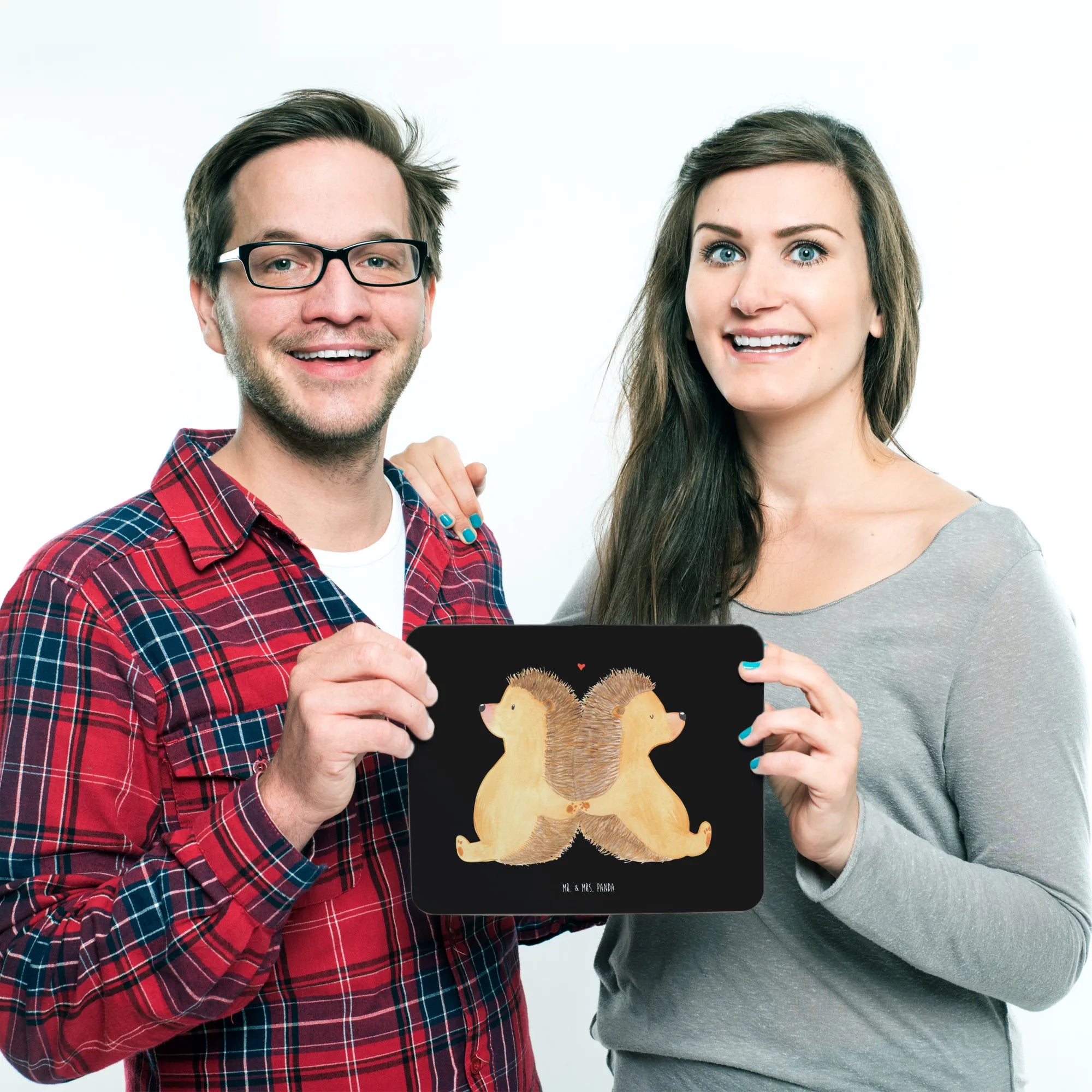 Podkładka pod mysz Jeże trzymające się za łapki - z napisem - Czarny