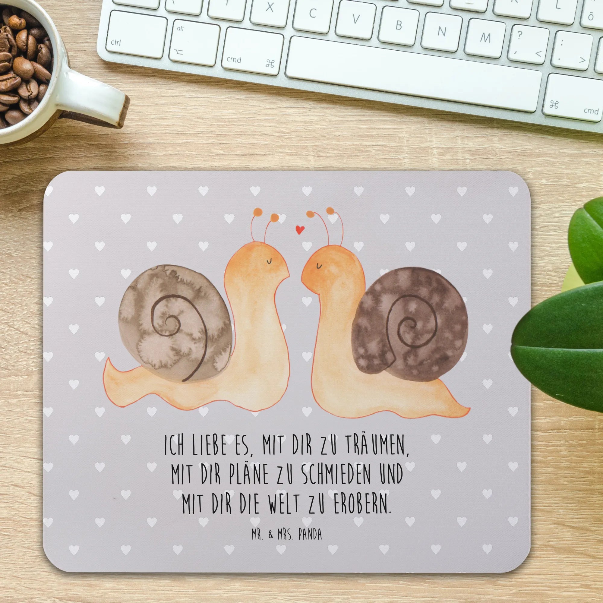 Podkładka pod mysz Miłość ślimaków - z napisem - Pastelowy szary