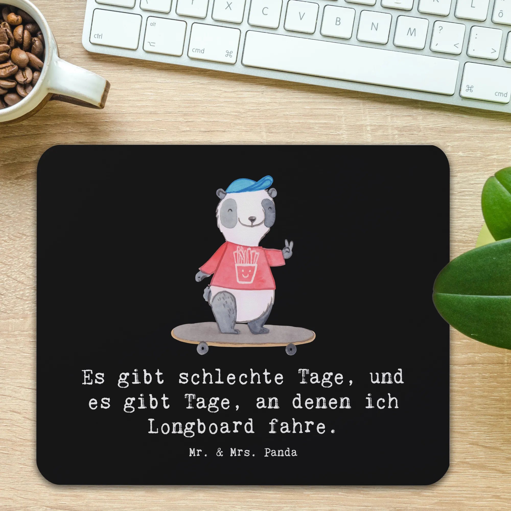 Podkładka pod mysz Panda Jazda na longboardzie - Pastelowy szary