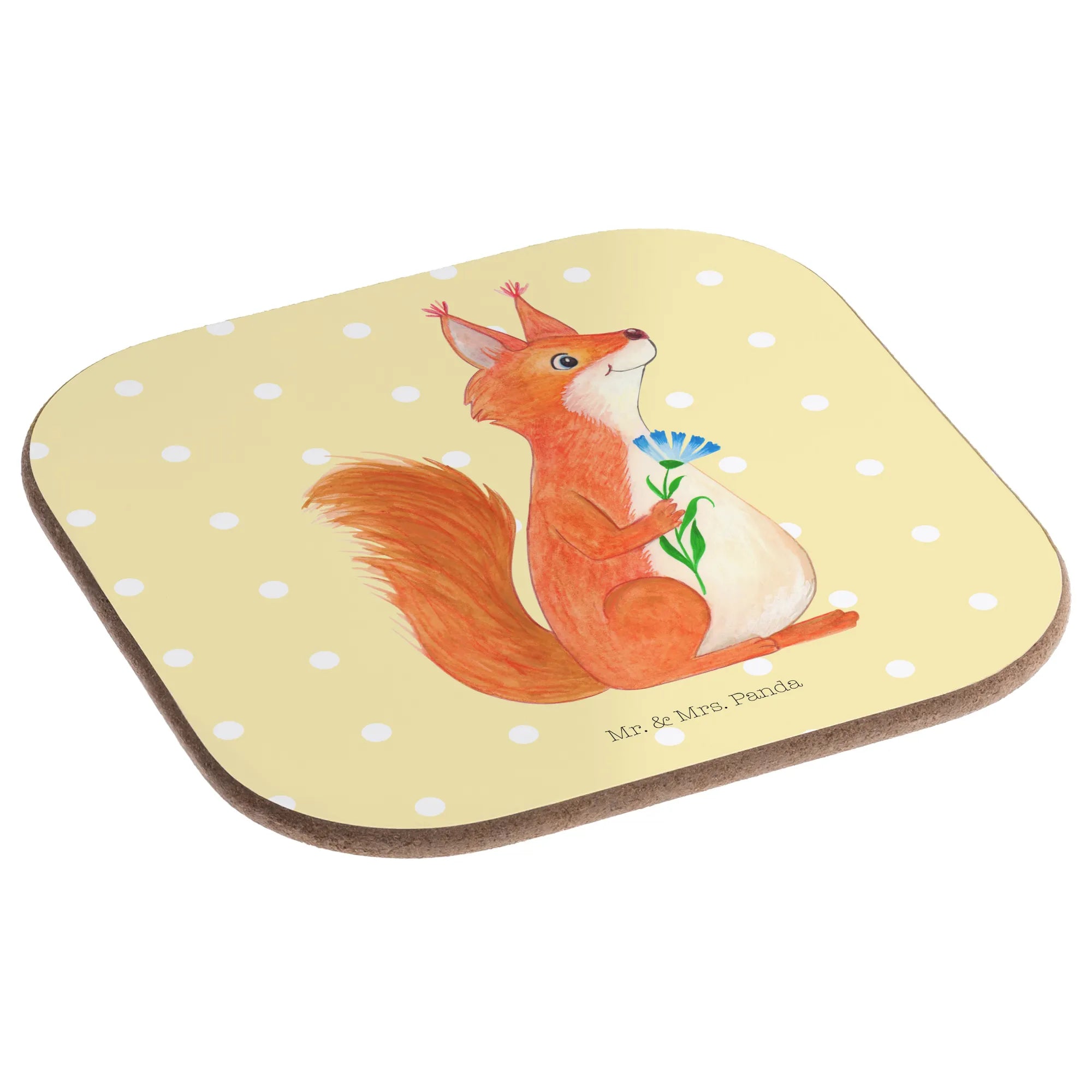 Podkładka wiewiórka kwiat - z napisem - Żółty Pastel