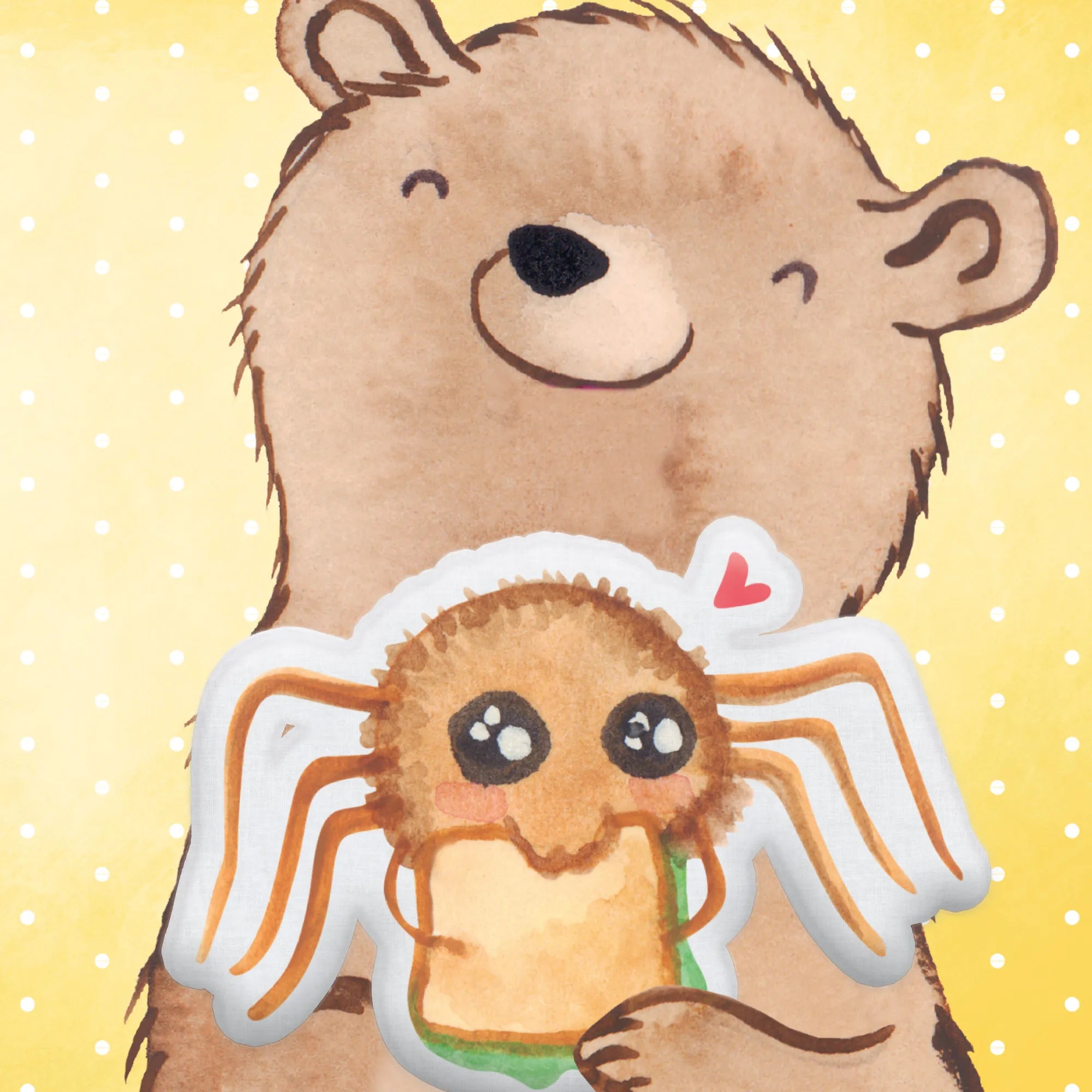 Stell dir vor, wie du die kleine Spinne Agathe ansiehst, die genüsslich ein Sandwich nascht. Sie strahlt Glück und Lebensfreude aus und erinnert uns daran, das Leben in vollen Zügen zu genießen, auch an Tagen, an denen der Mut vielleicht fehlt. Diese herzige Spinne mit ihrem freundlich gezeichneten Motiv bringt nicht nur die Kleinsten zum Lächeln, sondern ist auch eine liebevolle Umarmung für die Großen. Agathe zeigt dir, dass ein einfacher Snack wahre Wunder wirken kann und dass alles gut wird, wenn man nur den richtigen Mut hat - ganz nach dem Motto: „Ich brauche Snacks und Mut, und dann wird alles gut.“