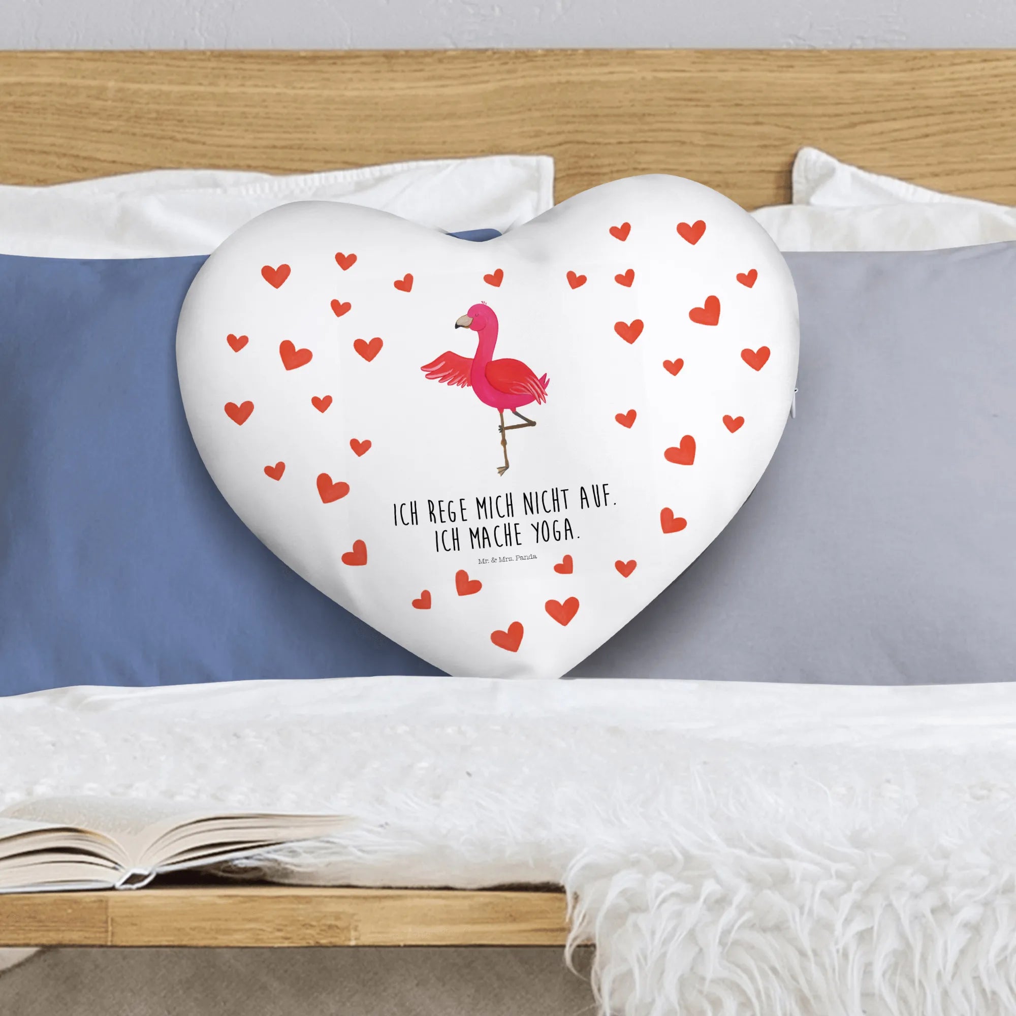 Poduszka w kształcie serca Flamingo joga - z napisem