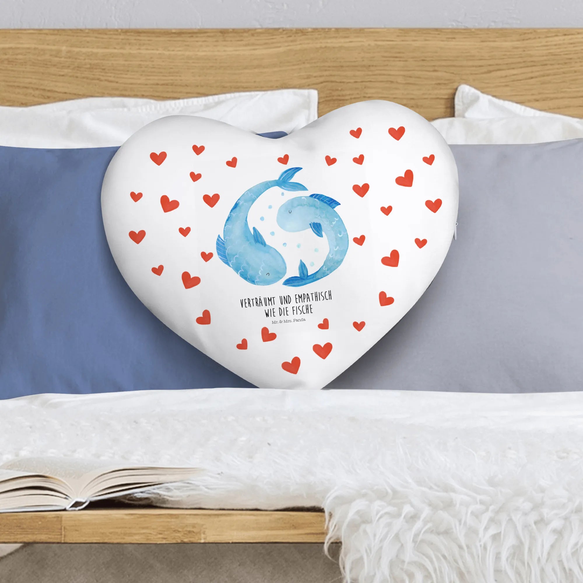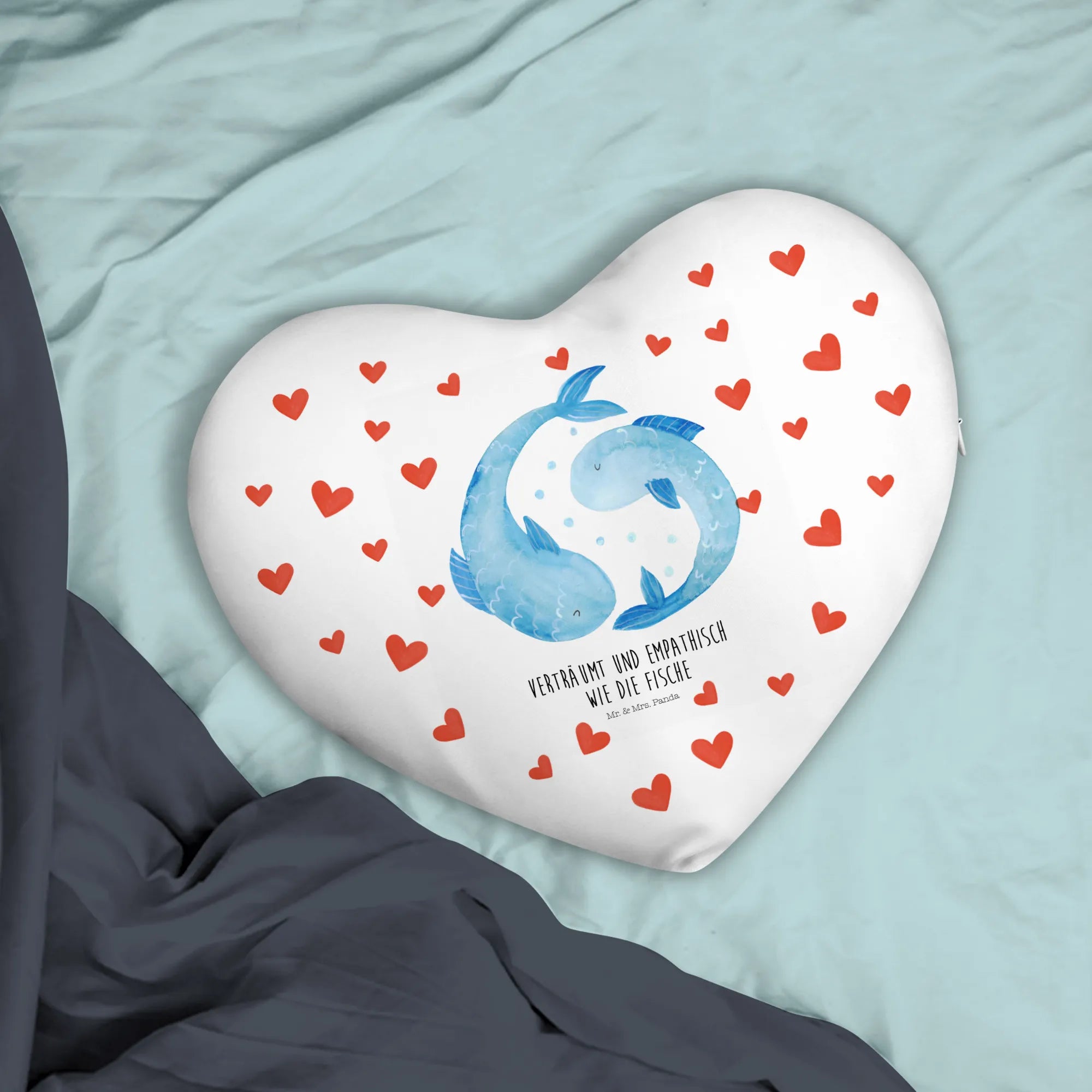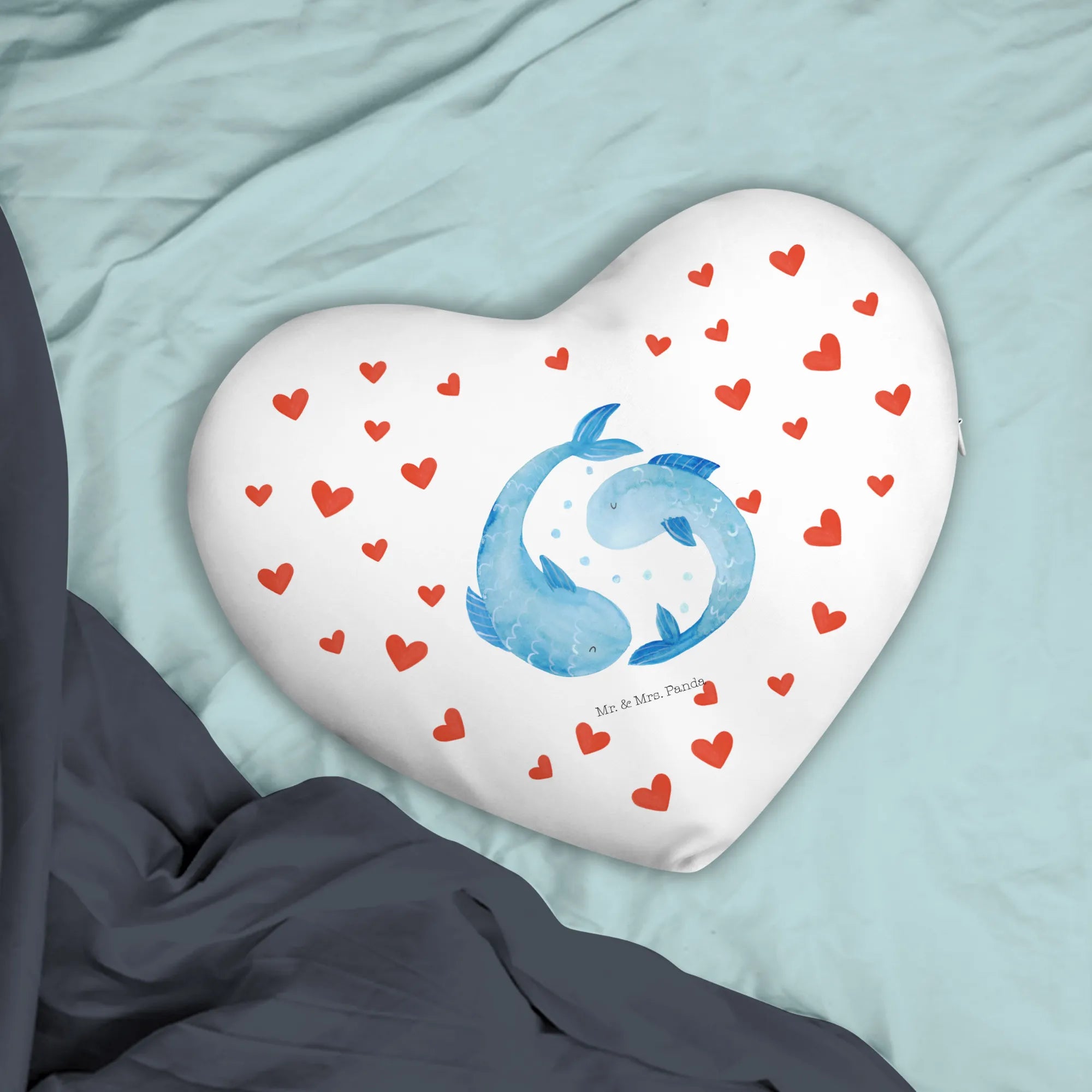 Poduszka w kształcie serca znak zodiaku Ryby - z napisem