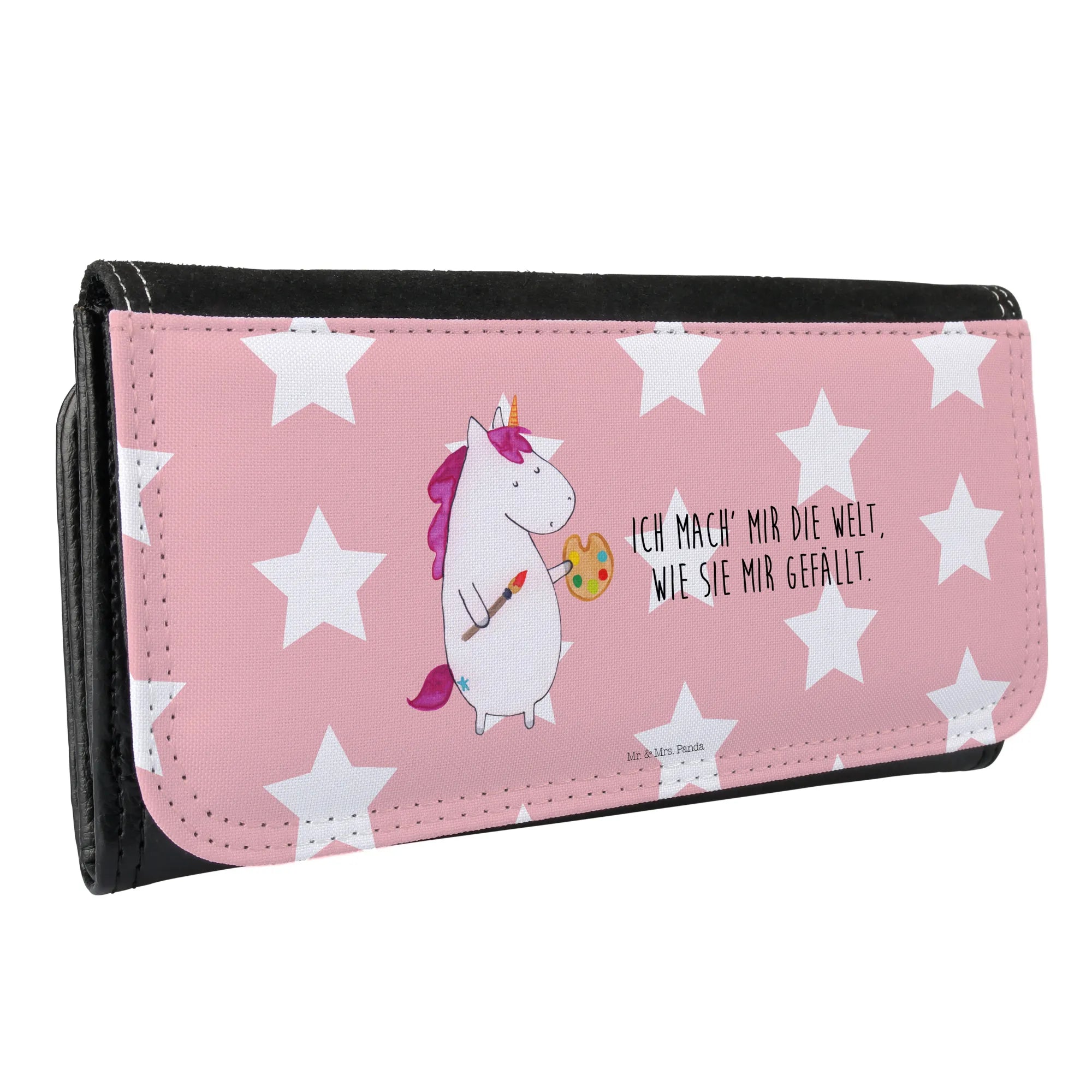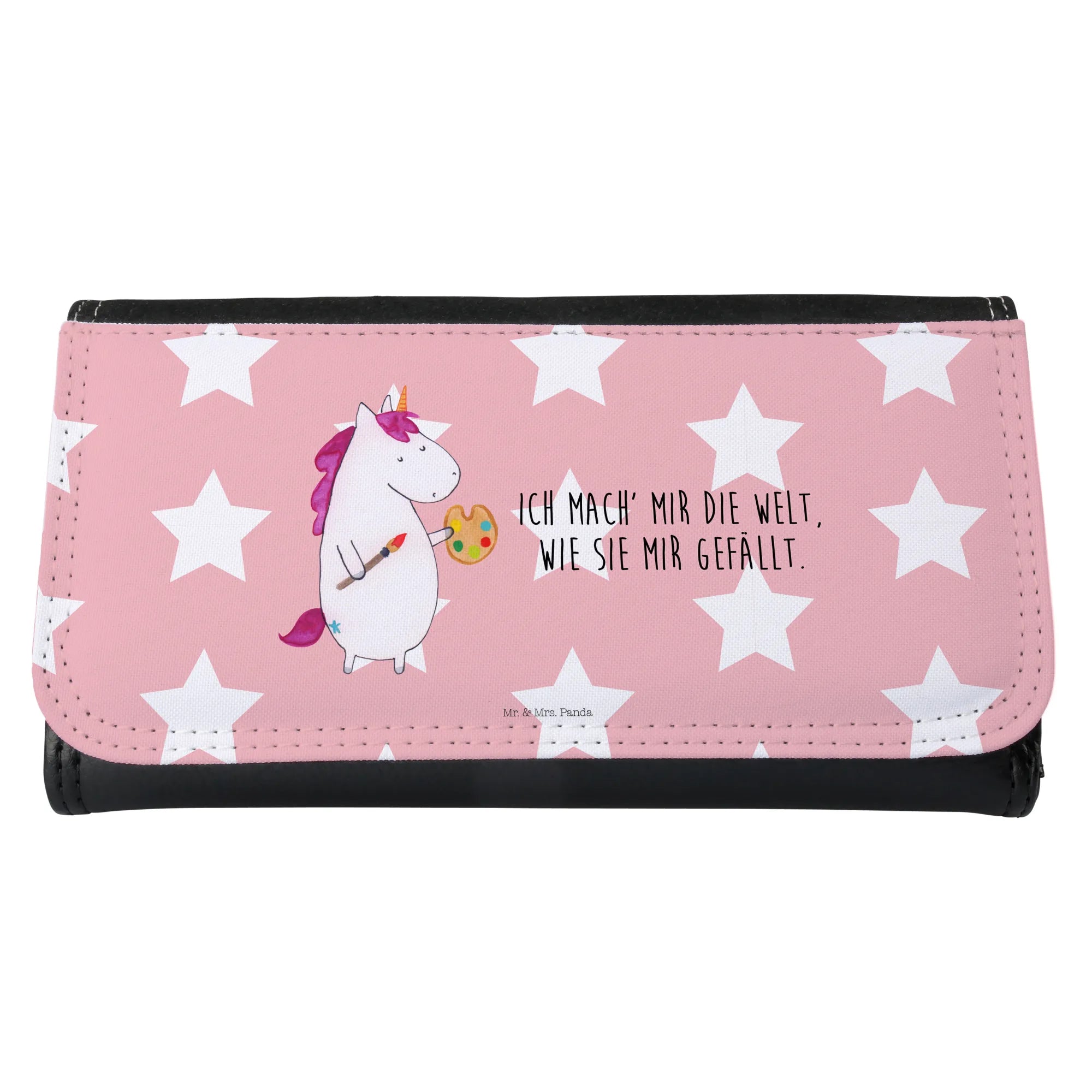 Portfel damski Jednorożec Artysta - z napisem - Różowy Czerwony