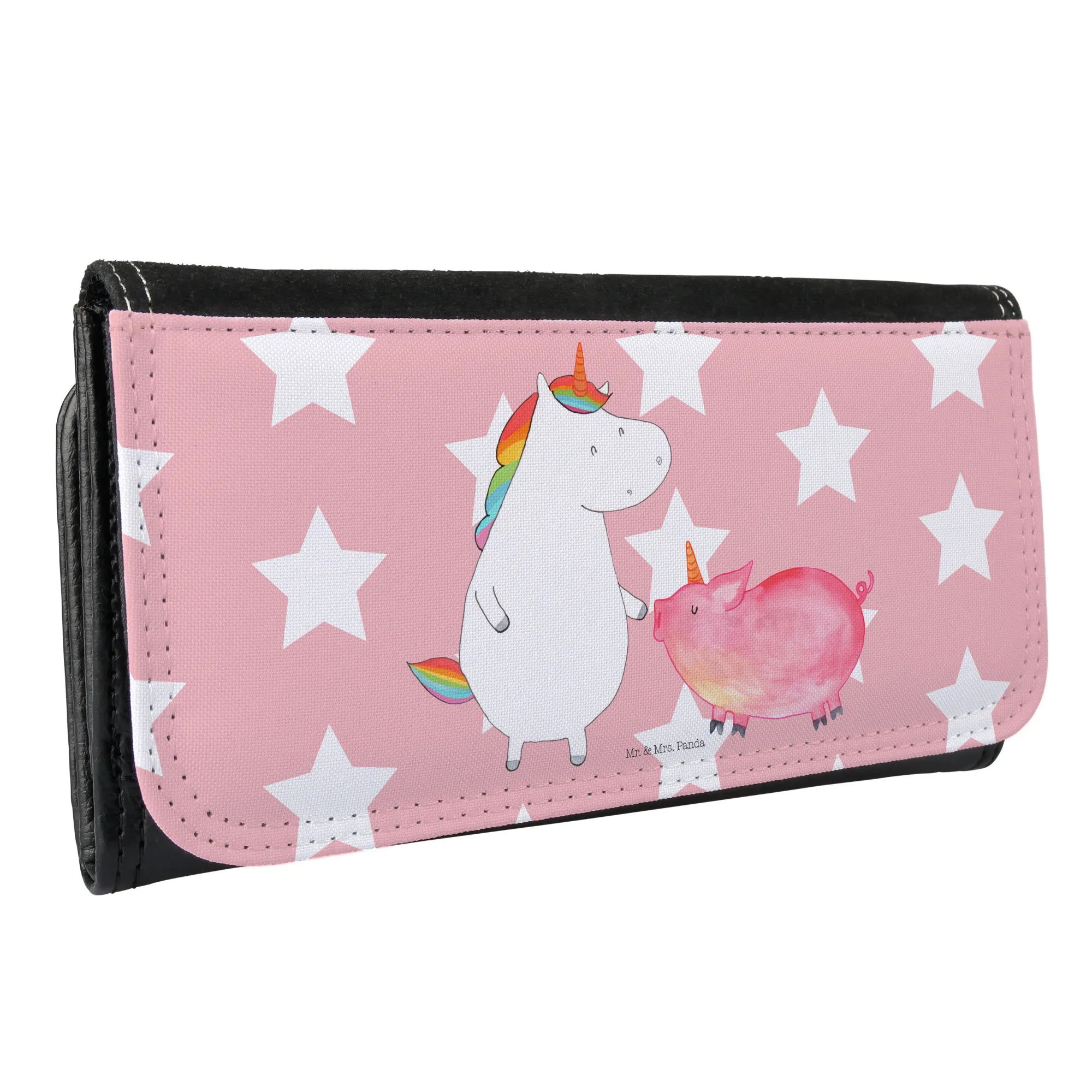 Portfel damski jednorożec świnia - z napisem - Pastelowy czerwony