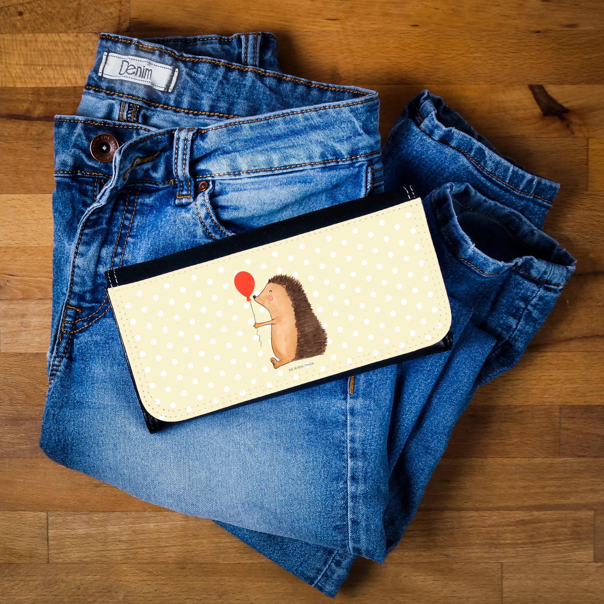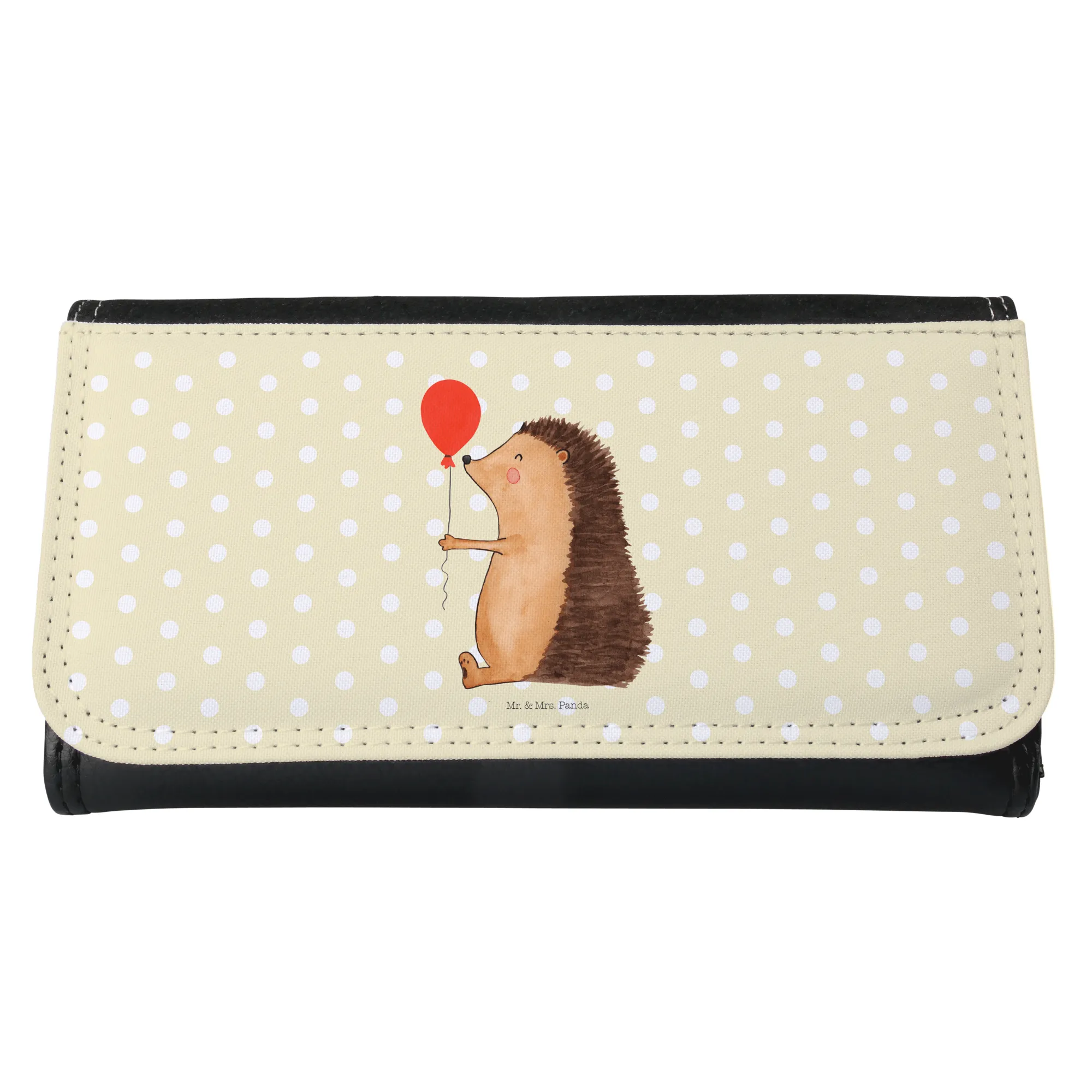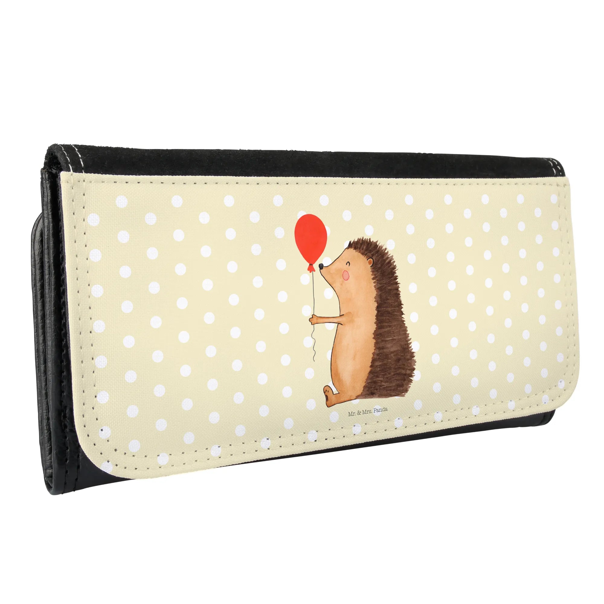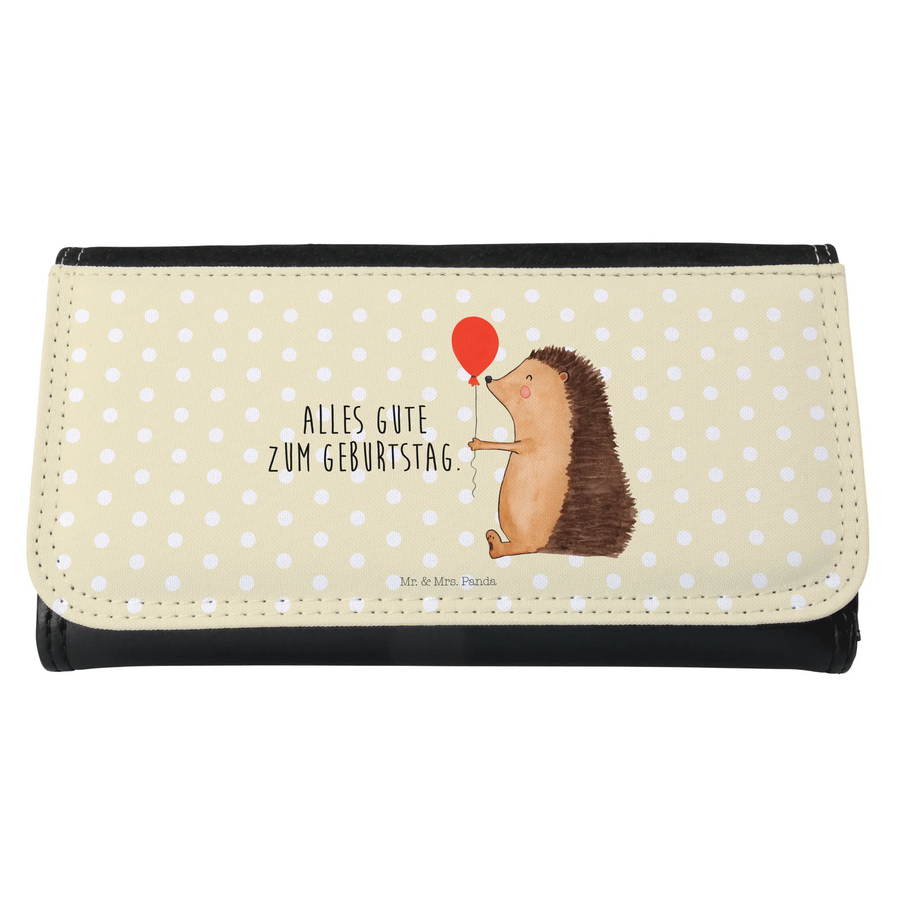 Portfel damski jeż balon - z napisem - Żółty Pastel