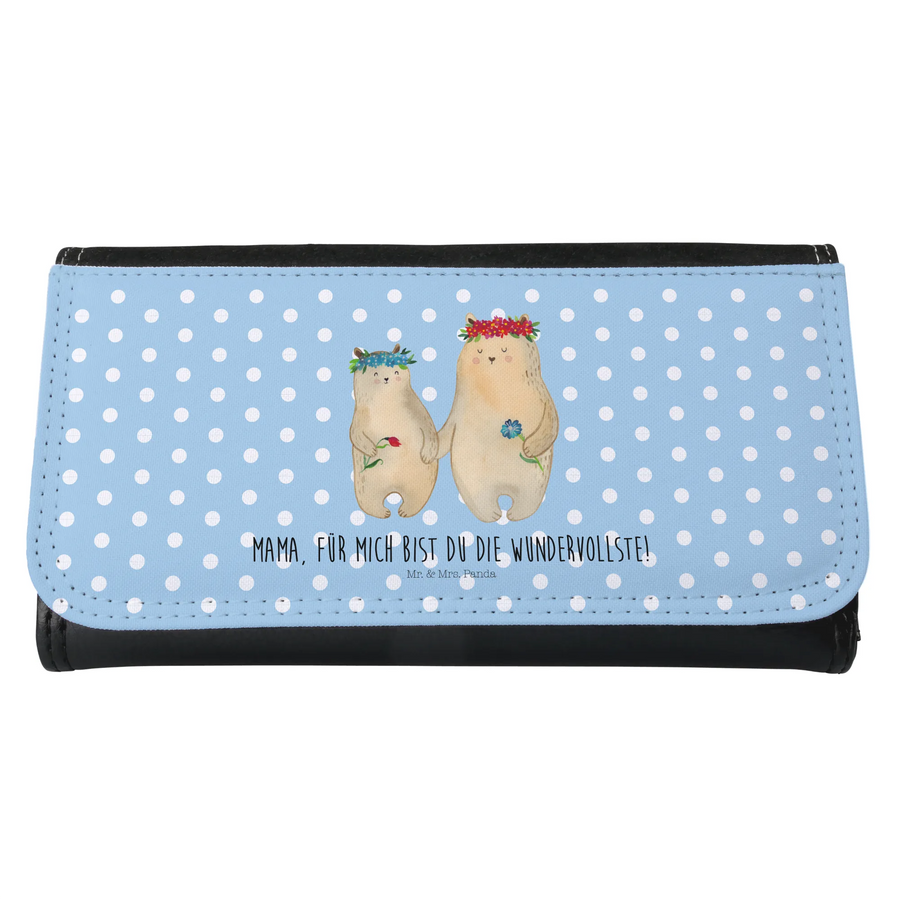 Portfel damski Niedźwiedzie z wianuszkiem - z napisem - Niebieski Pastel