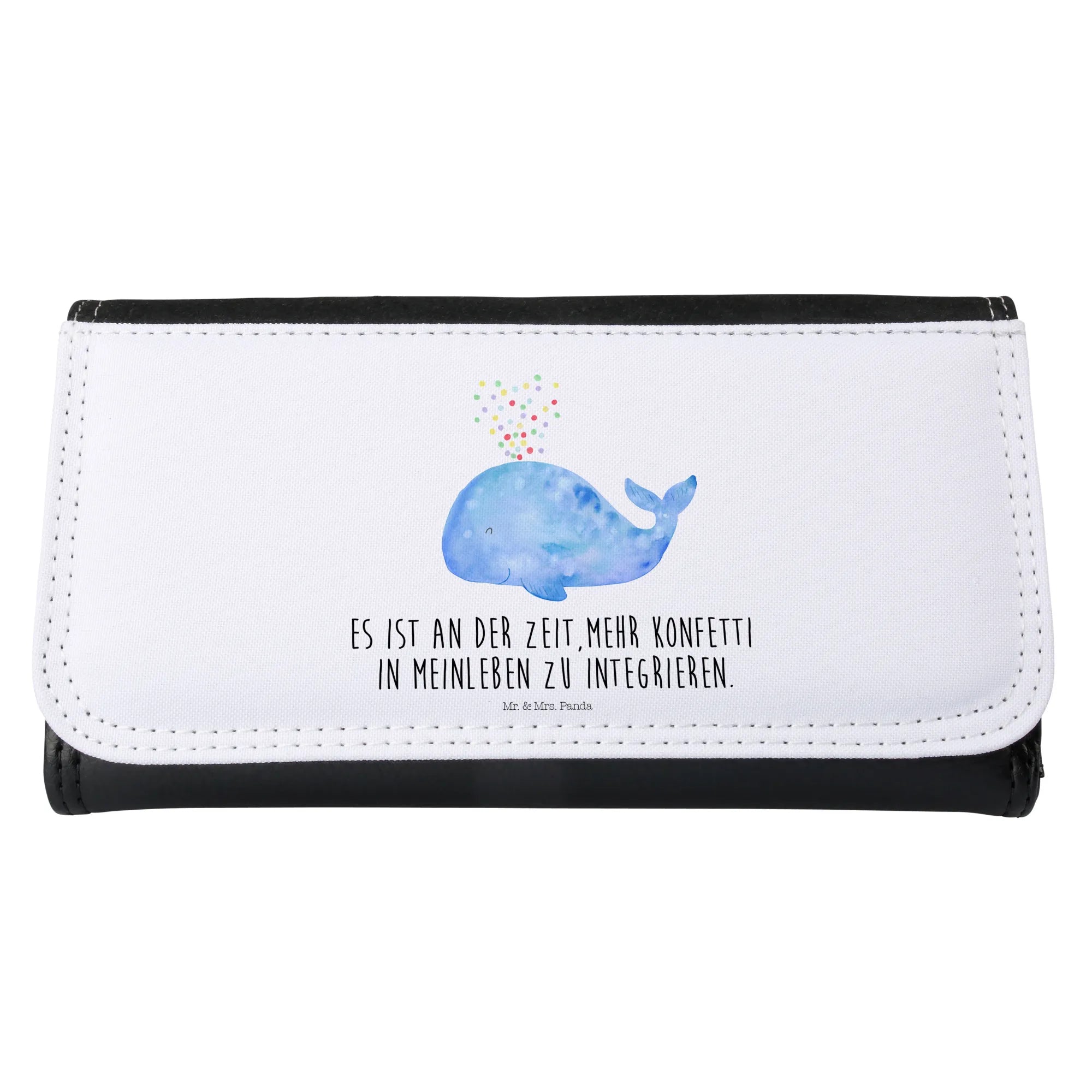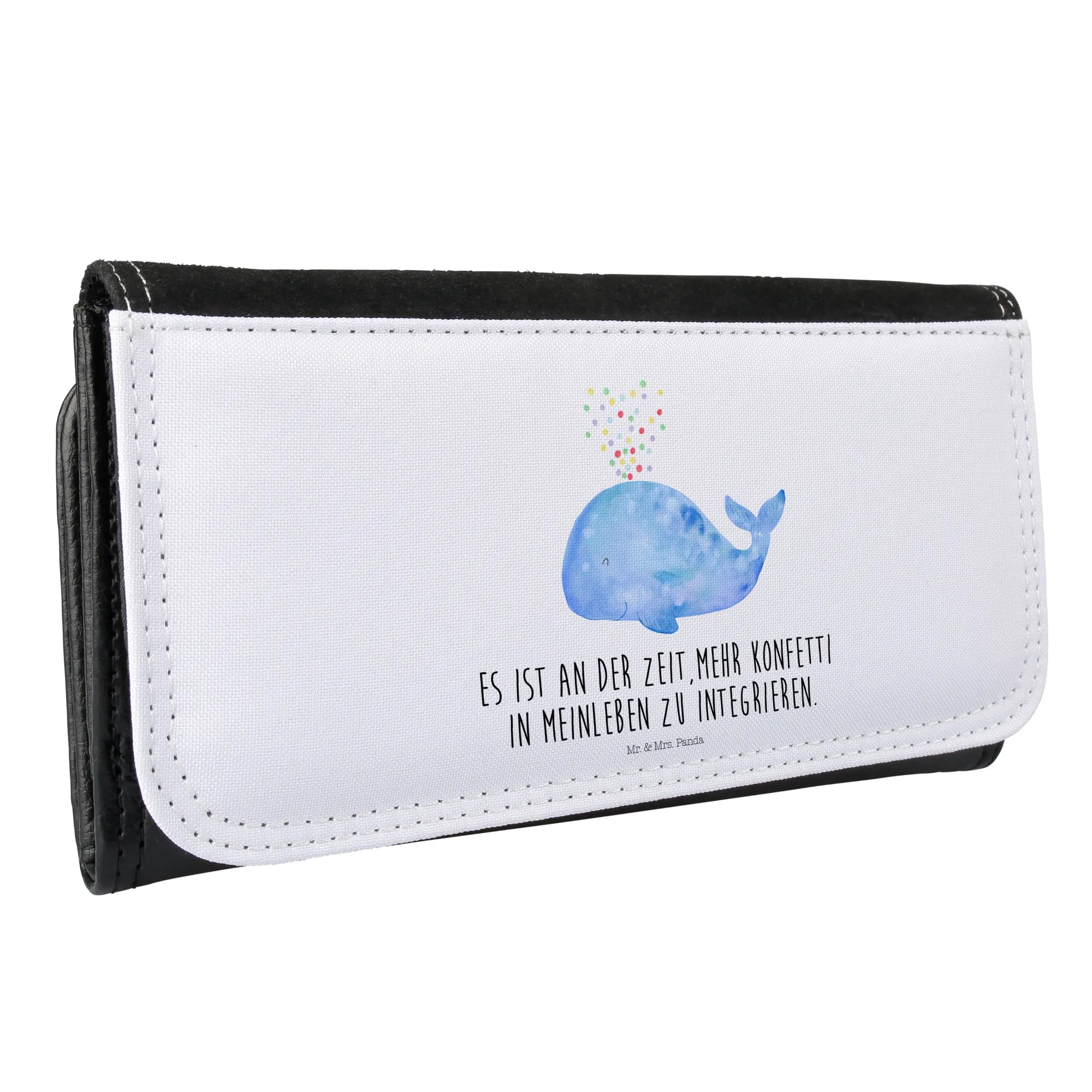 Ein wunderschönes Damen Portemonnaie von Mr. & Mrs. Panda – liebevoll illustriert mit dem bezaubernden Motiv „Wal Konfetti“ aus unserer Meerestiere Kollektion. Der freundliche, blaue Wal mit seiner Konfetti-Wolke und dem Spruch „Es ist an der Zeit, mehr Konfetti in mein Leben zu integrieren.“ bringt ein Lächeln in deinen Alltag und macht dieses Portemonnaie zur perfekten Geschenkidee.
