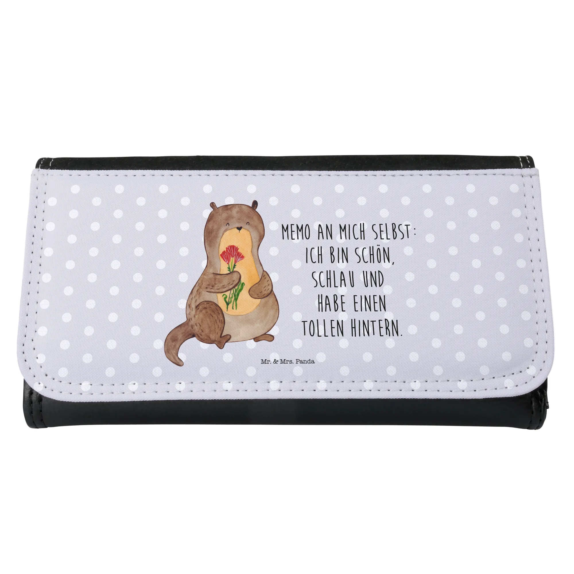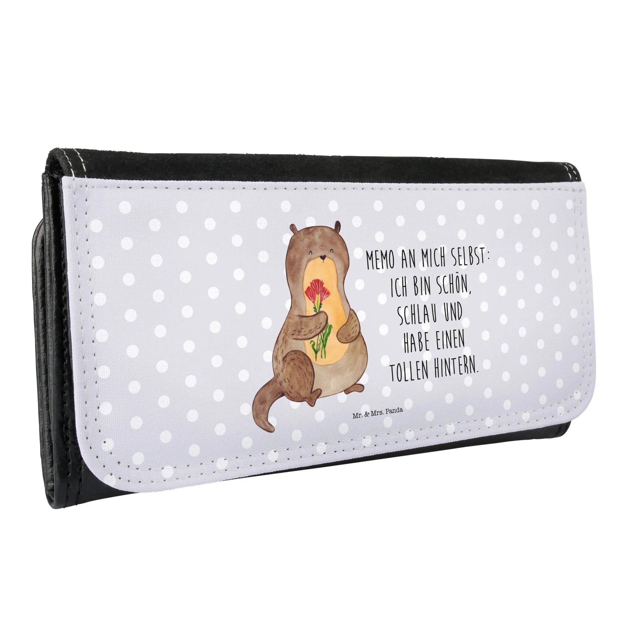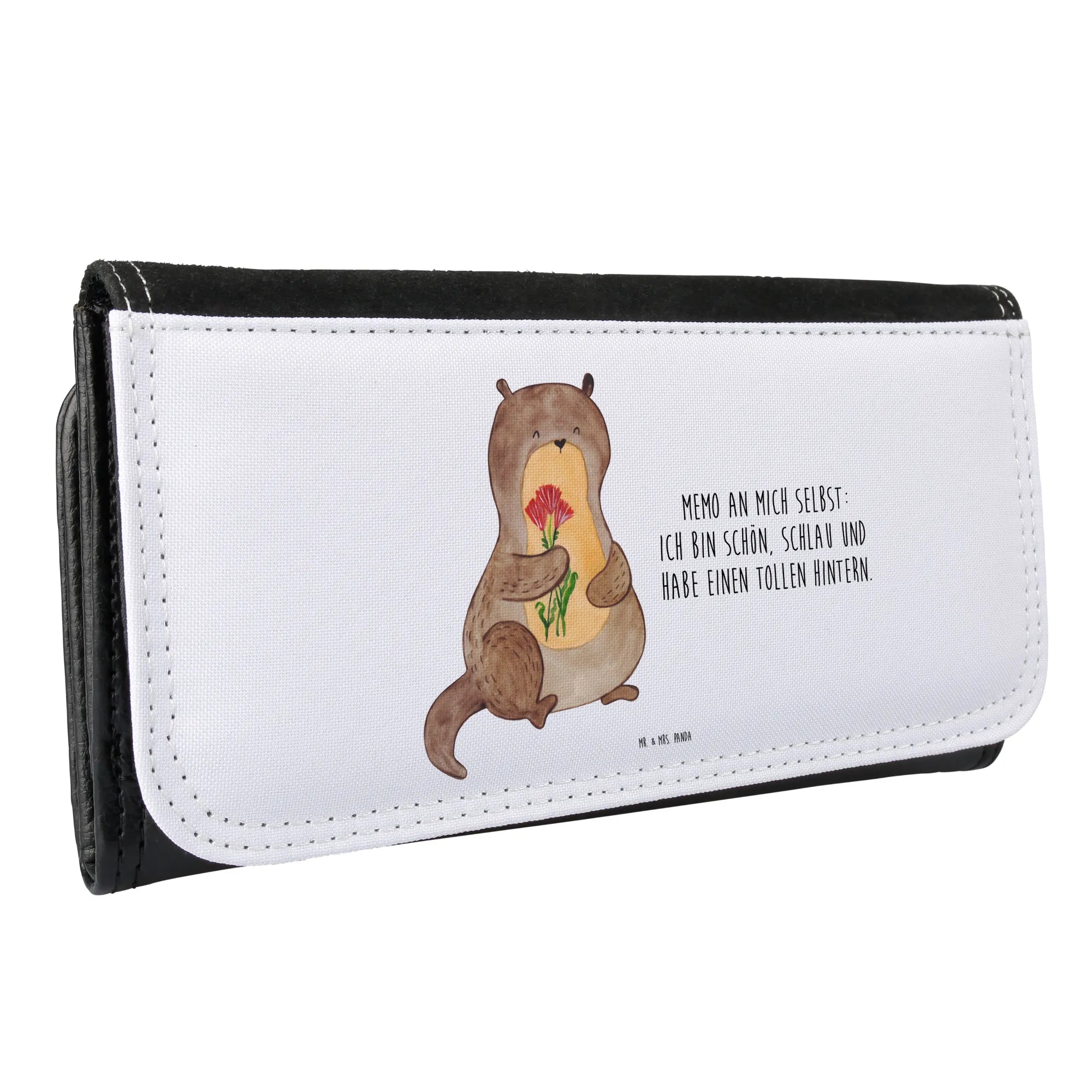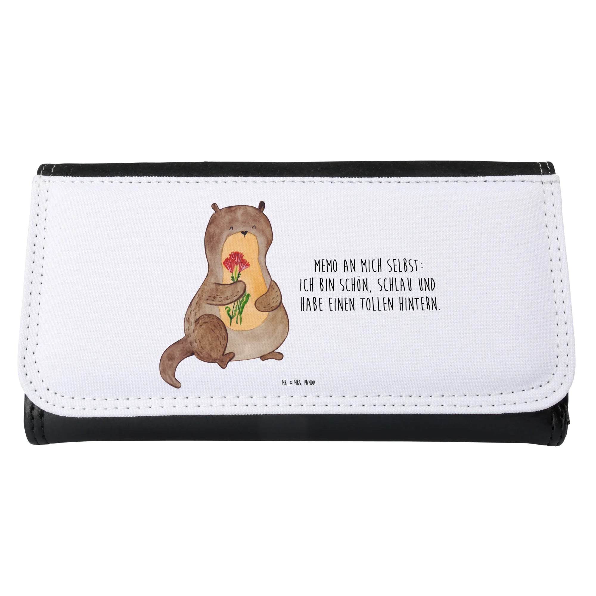 Portfel damski wydra bukiet kwiatów - z napisem - biały