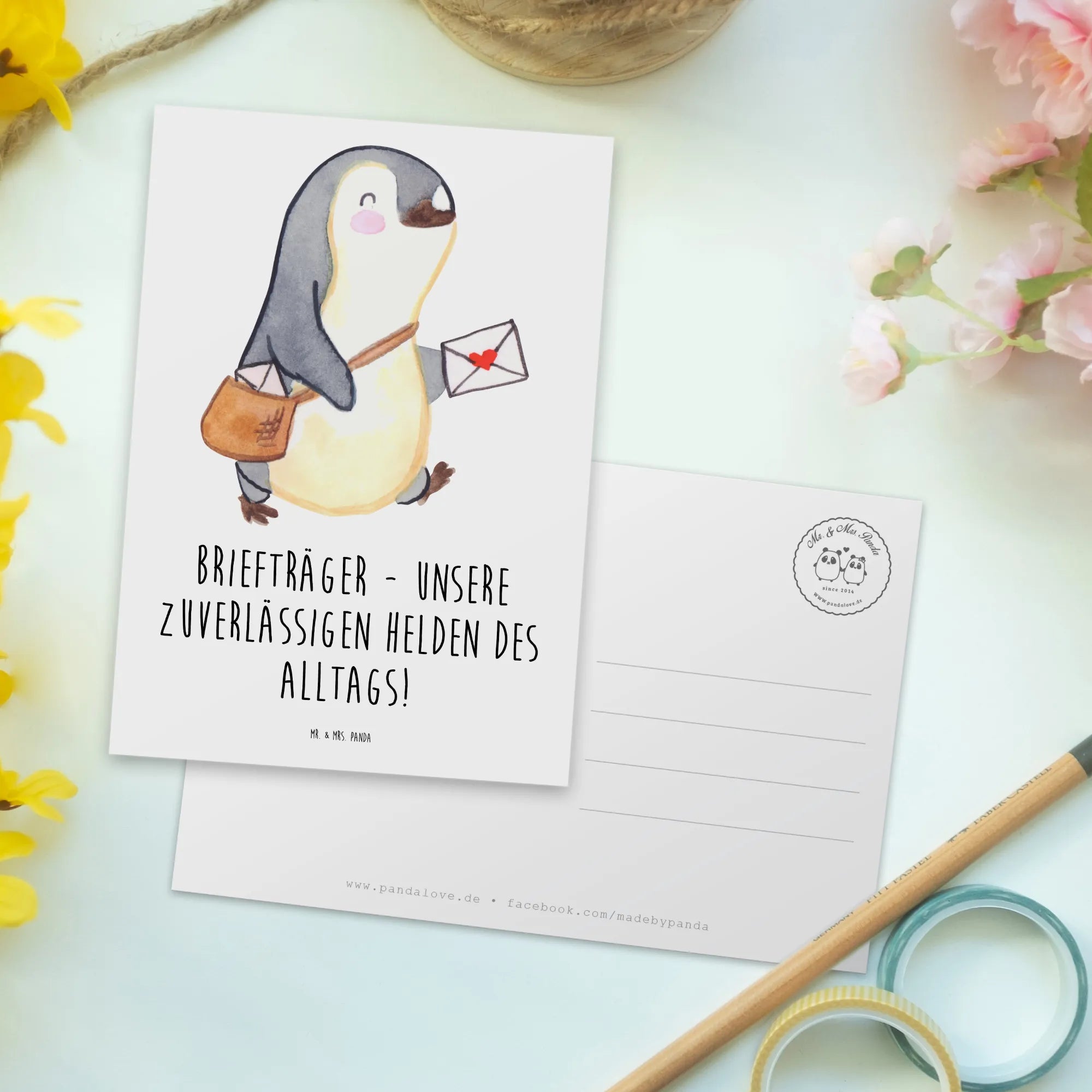 Du suchst nach der perfekten Möglichkeit, Danke zu sagen? Dann ist die Postkarte "Briefträger" aus der bezaubernden Danke-Kollektion von Mr. & Mrs. Panda genau das Richtige für dich! Diese einzigartige Postkarte strahlt mit ihrem liebevollen Design und dem witzigen Spruch "Briefträger - unsere zuverlässigen Helden des Alltags!" eine herzliche Botschaft aus, die perfekt für jeden Anlass ist.
