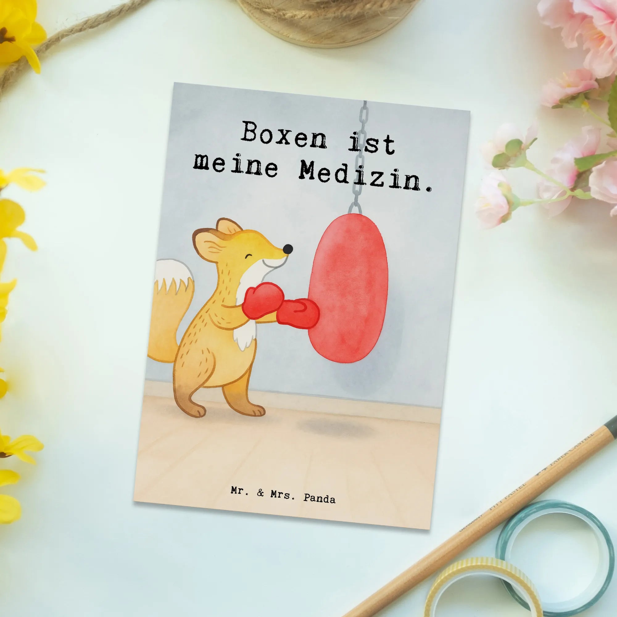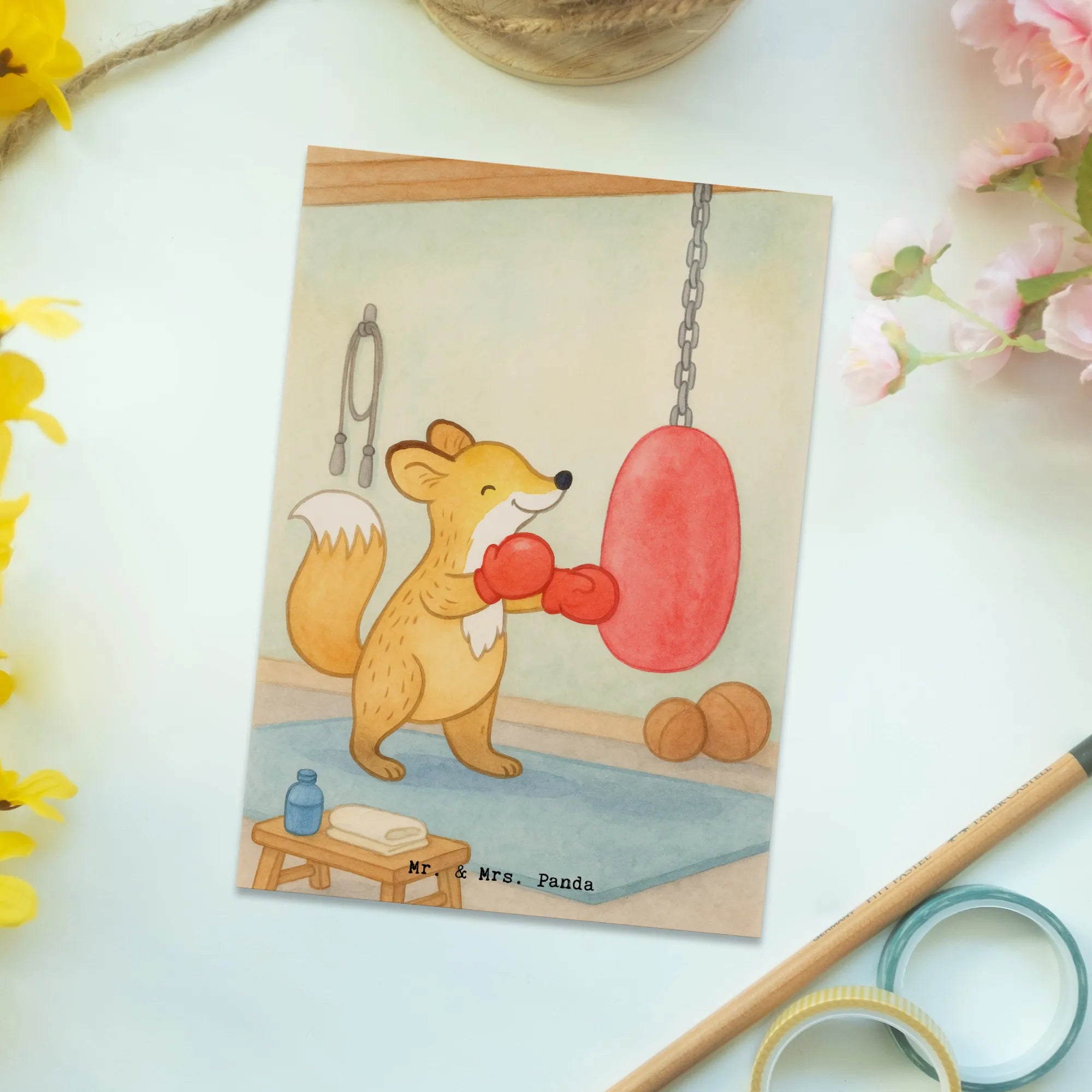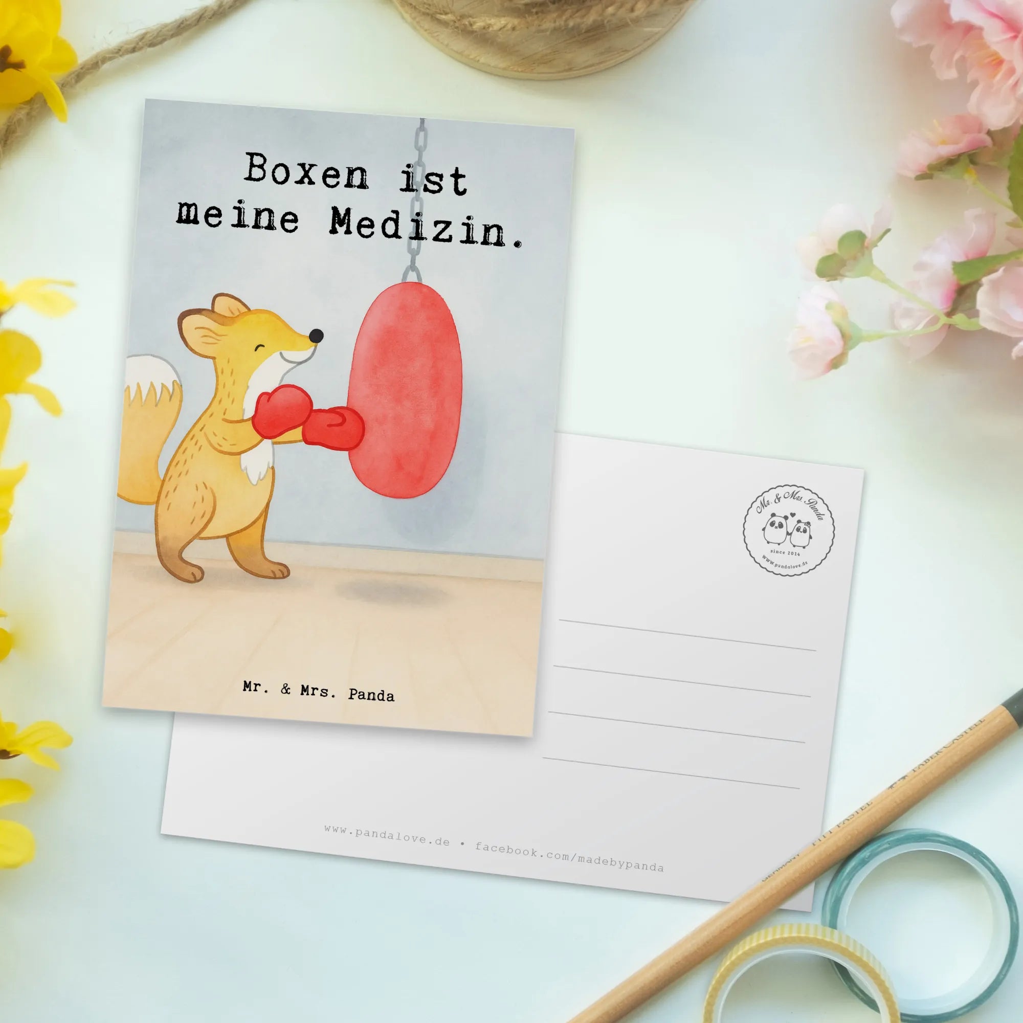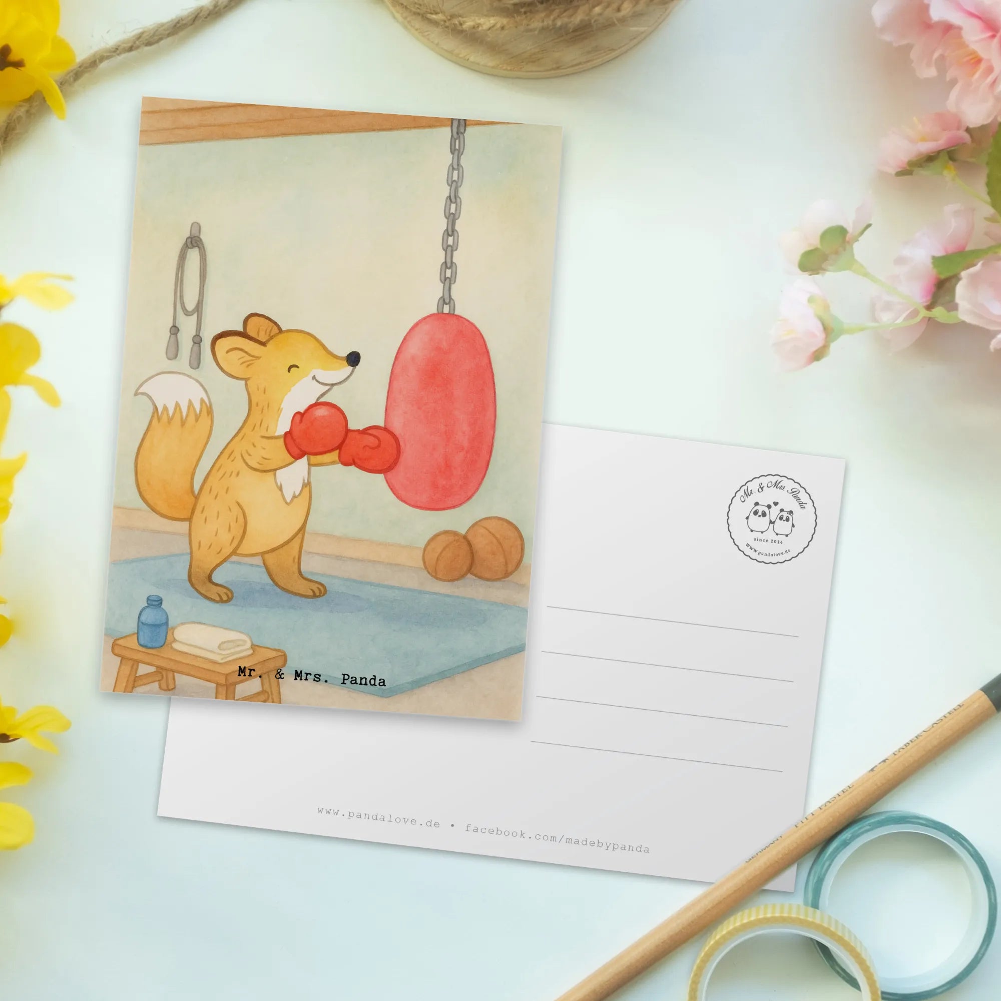 Postkarte Fuchs Boxen Design – Mr. & Mrs. Panda