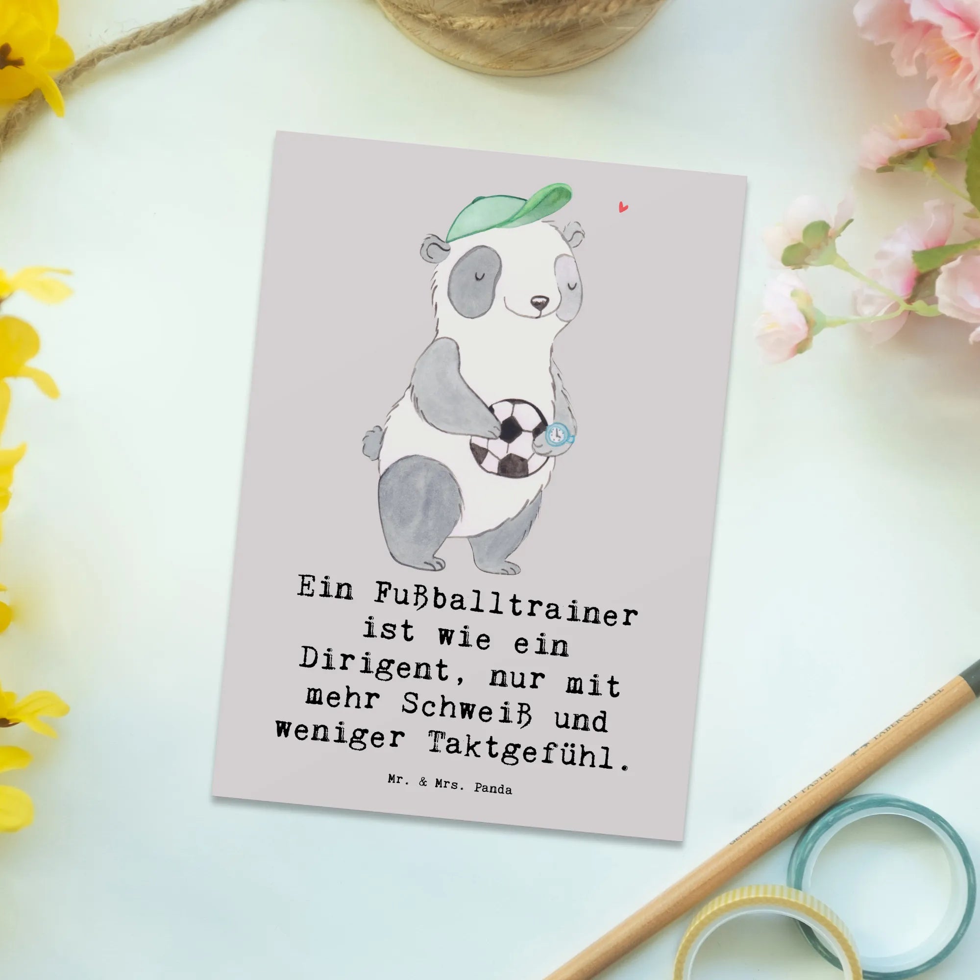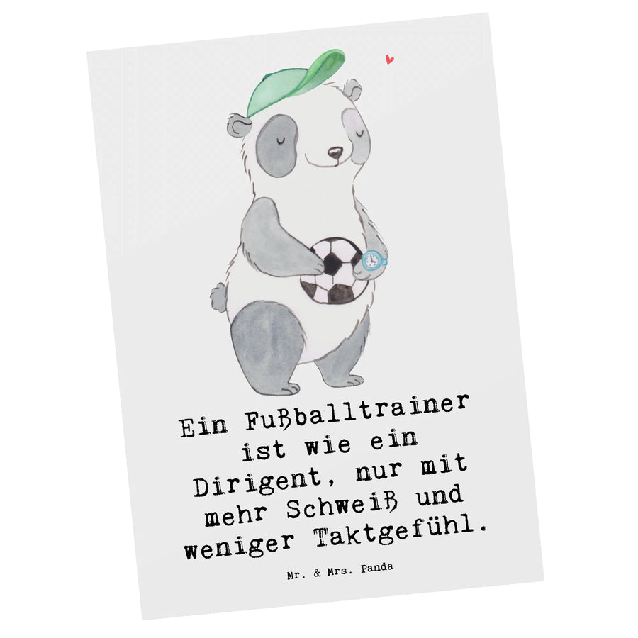Entdecke unsere einzigartige Postkarte zum Thema Fußballtrainer aus der liebevollen Berufe-Kollektion von Mr. & Mrs. Panda! Diese Karte ist der perfekte Begleiter für alle Anlässe, sei es ein Geburtstag, ein Berufsjubiläum oder einfach als herzliche Geste für den Fußballtrainer in Deinem Leben. Der witzige Spruch „Ein Fußballtrainer ist wie ein Dirigent, nur mit mehr Schweiß und weniger Taktgefühl“ bringt jedem ein Lächeln ins Gesicht und zeigt gleichzeitig, wie sehr Du die Leistung und den Einsatz Deines Trainers schätzt!