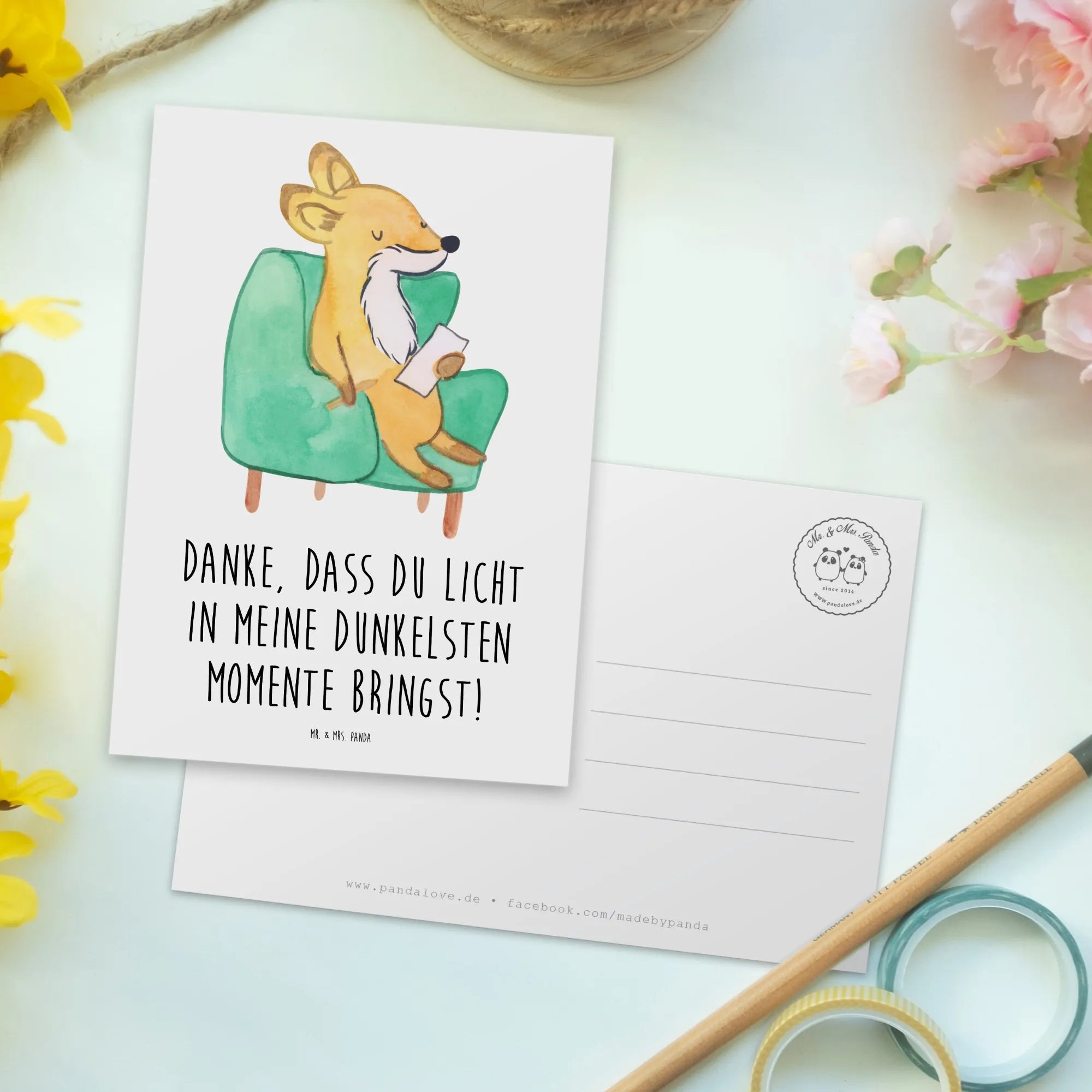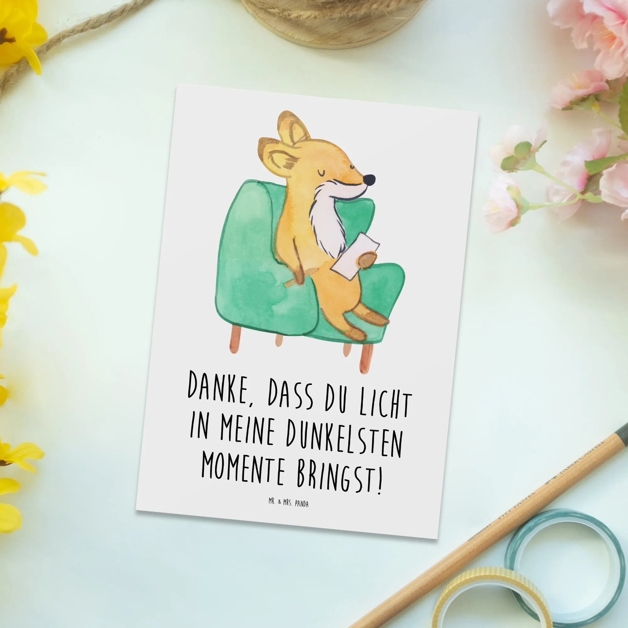 Die Postkarte "Therapeut" aus der wunderbaren 'Danke'-Kollektion von Mr. & Mrs. Panda ist das perfekte Dankeschön für all die besonderen Menschen in deinem Leben. Hast du jemandem ein Licht in schweren Zeiten gegeben oder wurde dir selbst geholfen? Diese Karte ist mehr als nur ein Stück Papier; sie ist ein liebevolles Dankeschön, das die Herzen berührt. Mit dem herzlichen Spruch "Danke, dass du Licht in meine dunkelsten Momente bringst!" fängst du den echten Wert von Dankbarkeit ein.